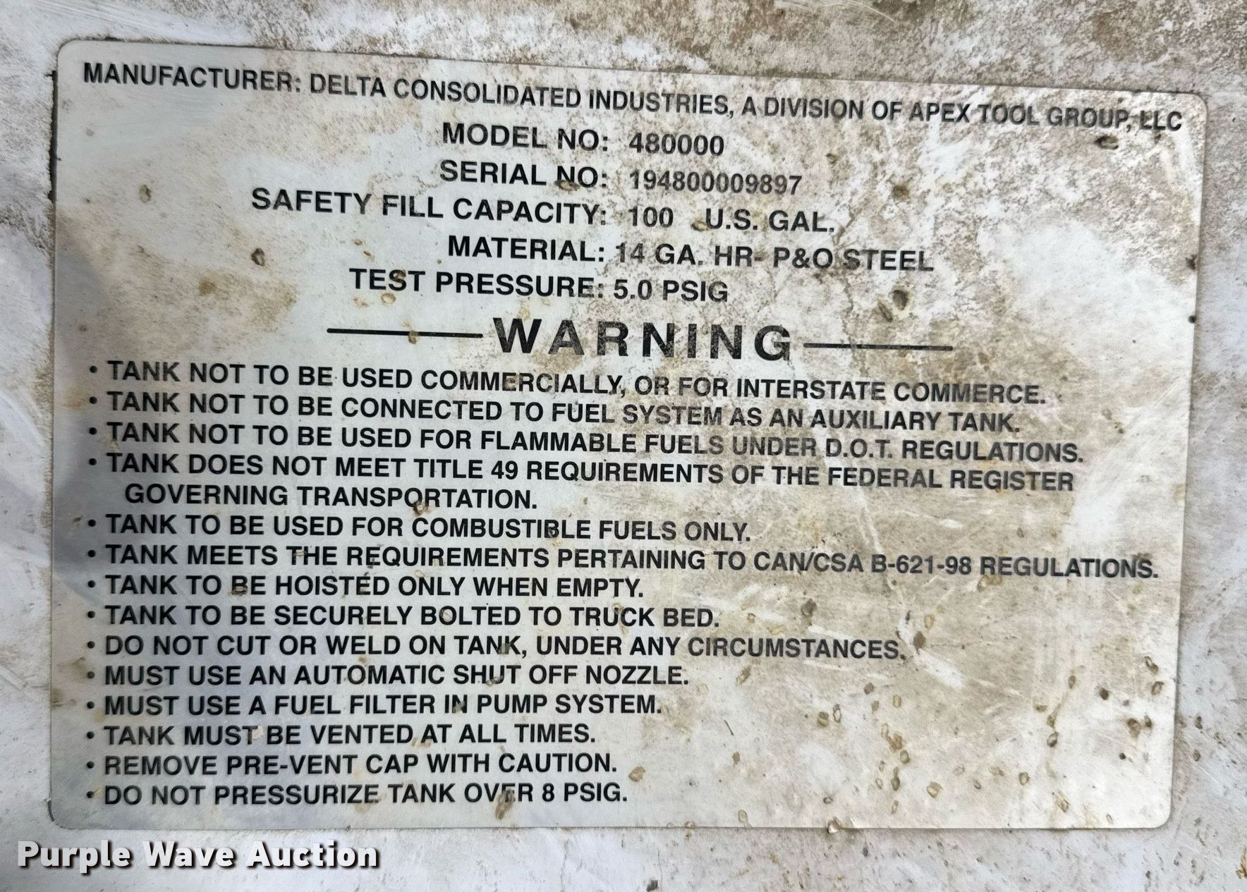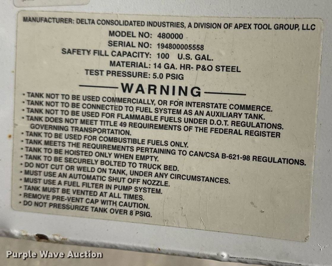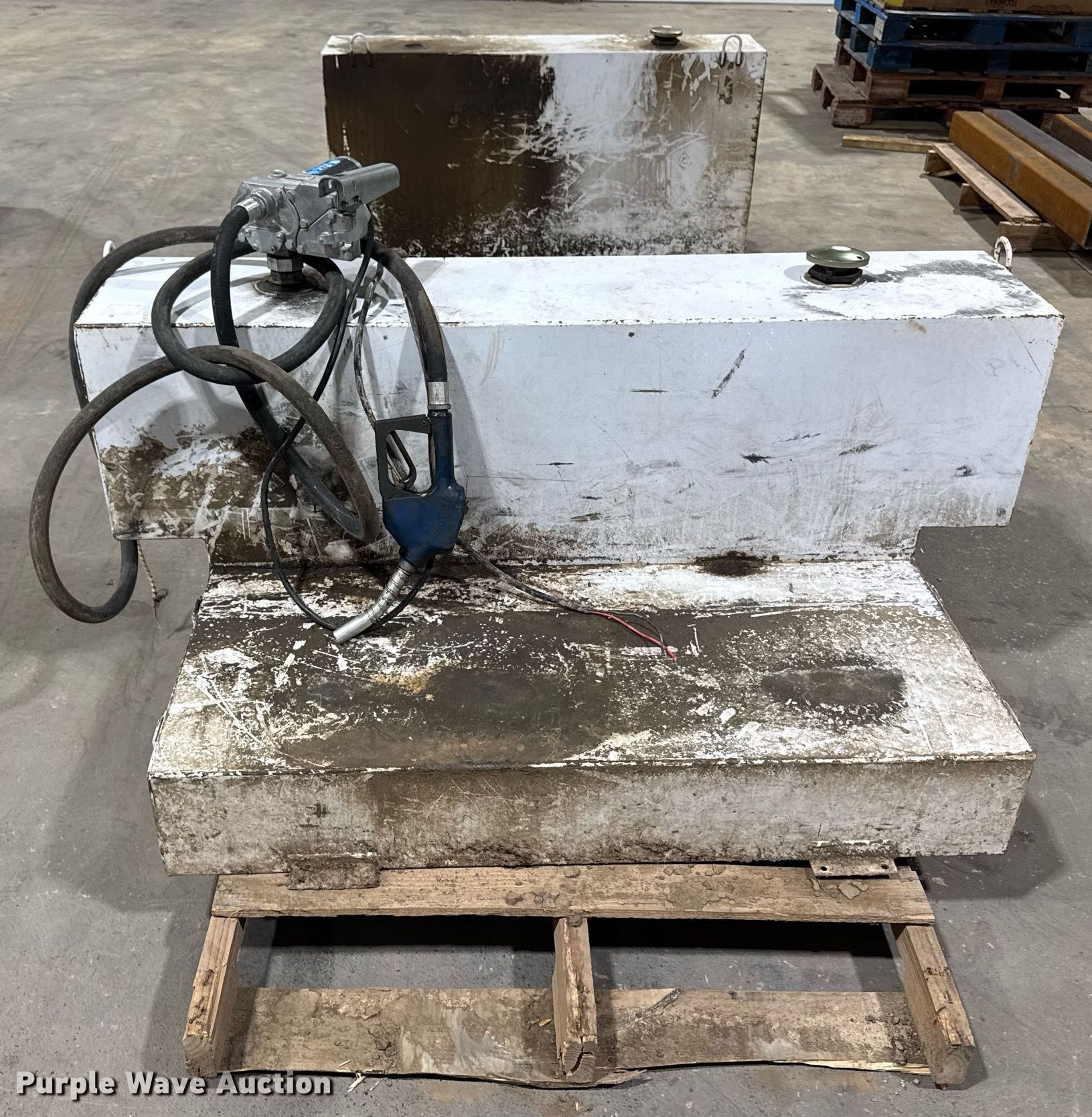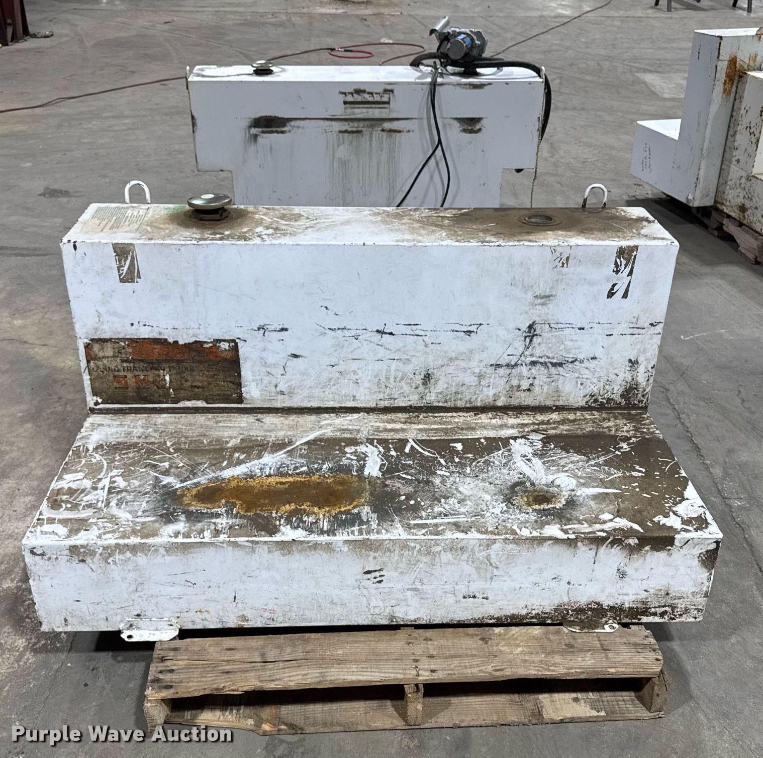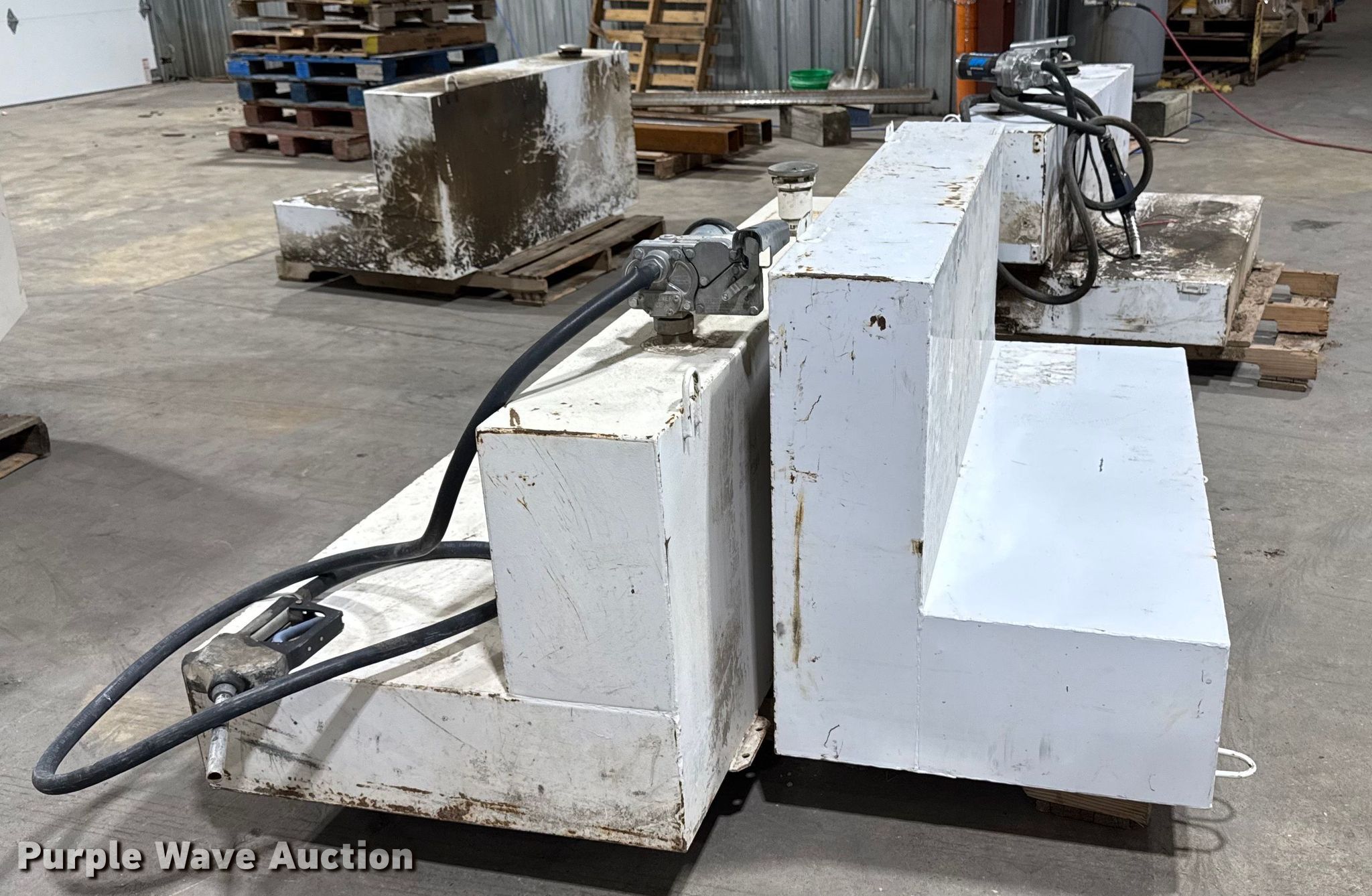 Purple Wave is selling a used Fuel and Lube in Iowa. This item is a (4) Fuel tanks with the following: (2) Fuel tanks, Capacity: 100 gallons, (2) Fuel tanks, Capacity unknown, (2) Pumps