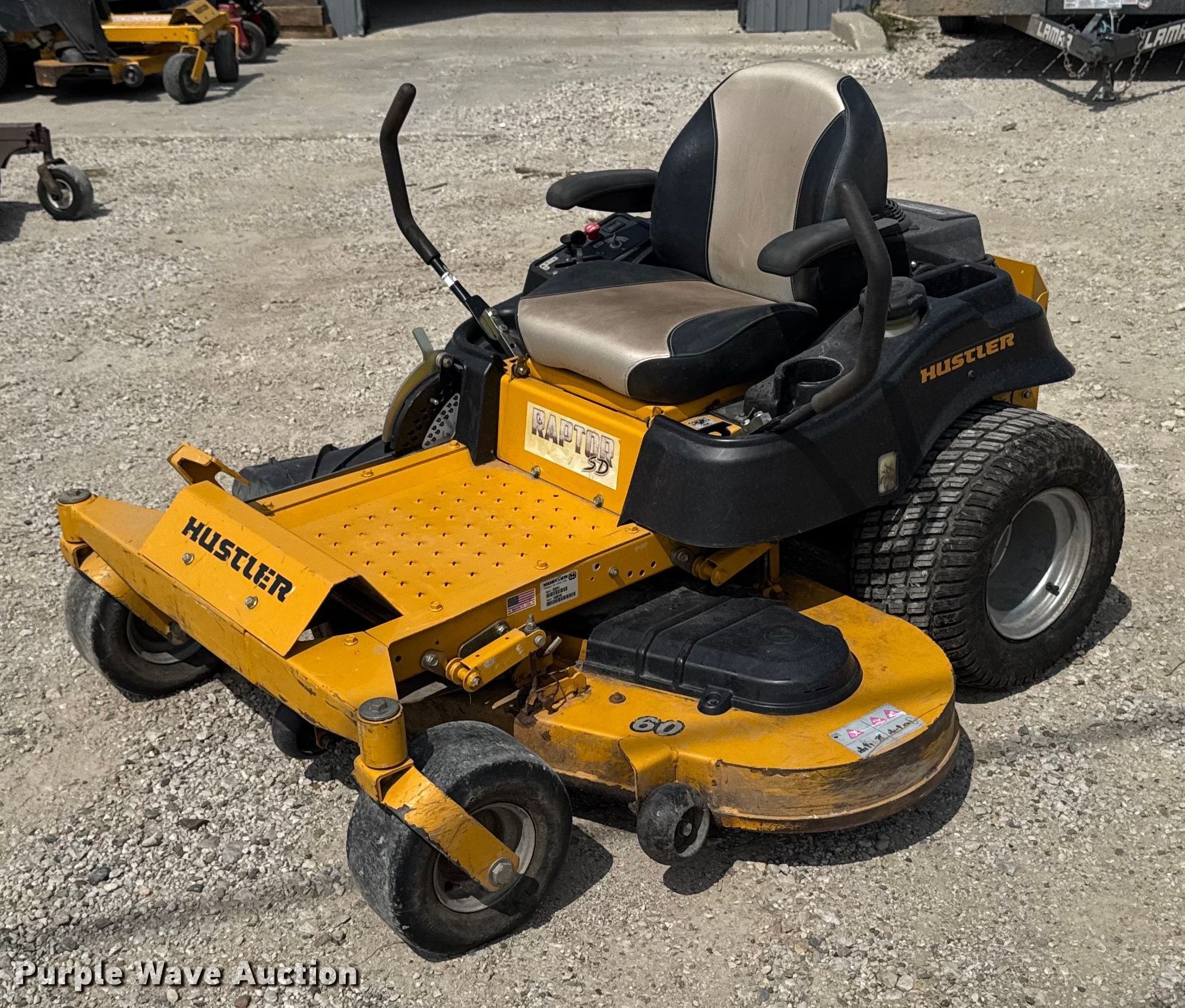 Purple Wave is selling a used Commercial Turf Mower in Iowa. This item is a Hustler 932541 Raptor SD ZTR lawn mower with the following: Hours: 628 on meter, Cutting width: 60", Serial: 14080185