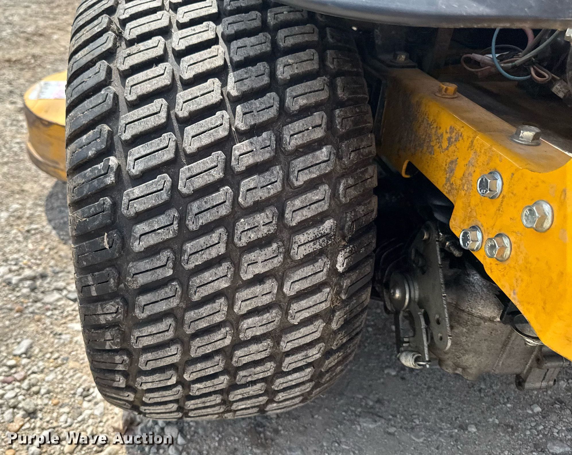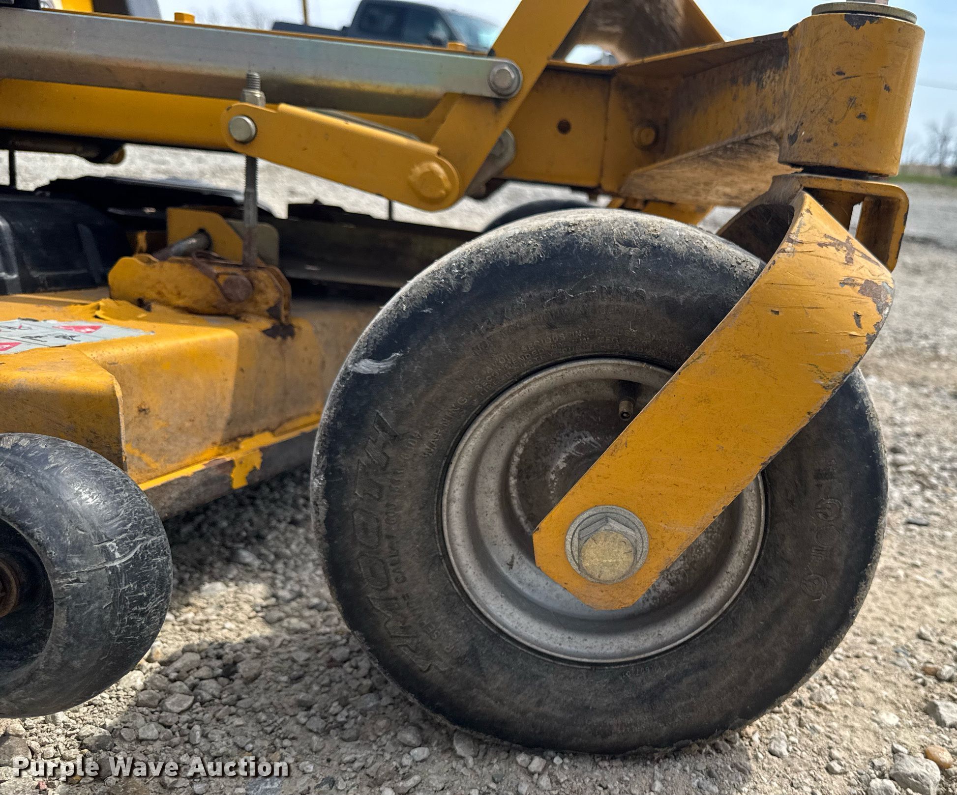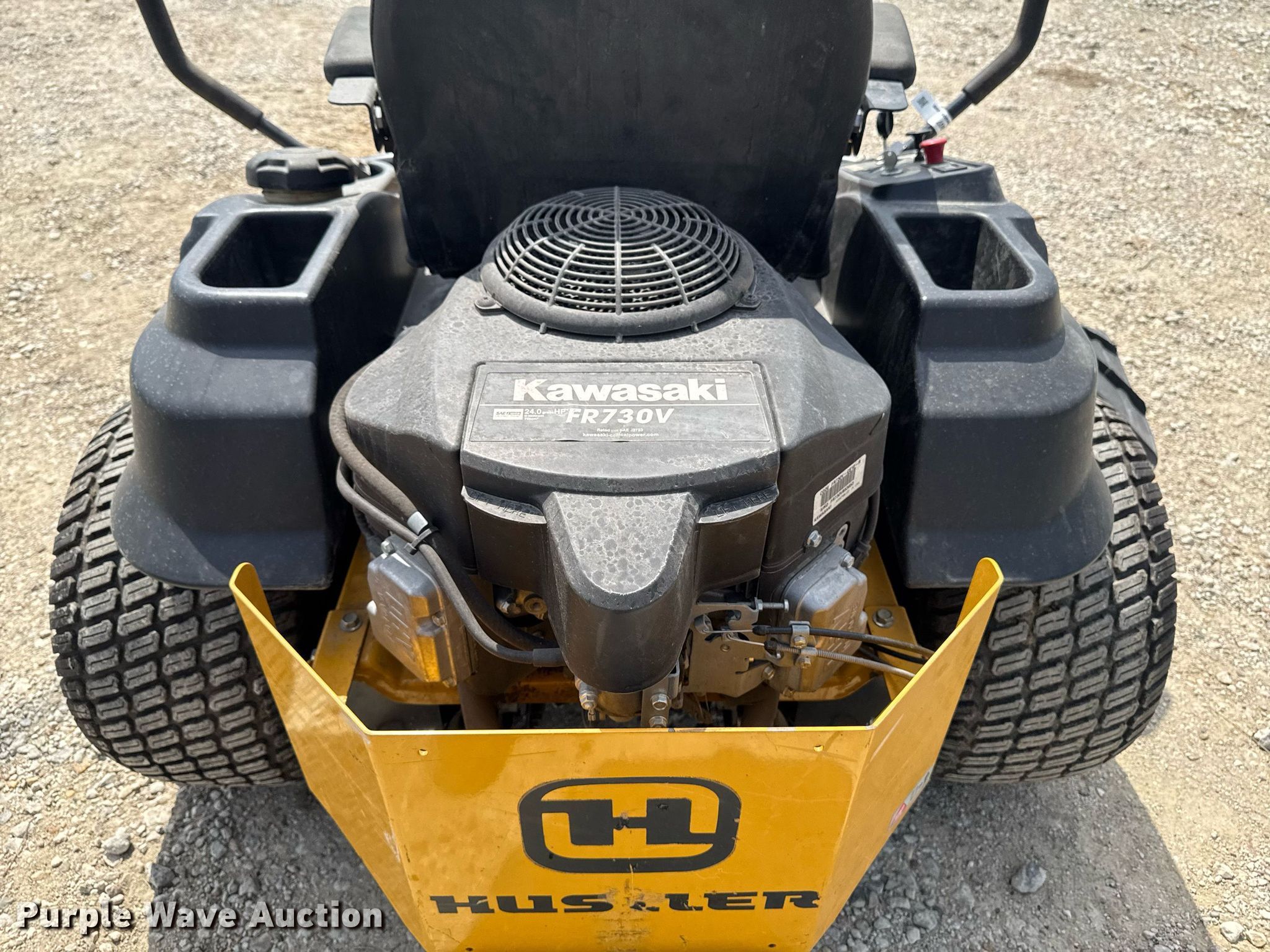 Hustler 932541 Raptor SD ZTR lawn mower. Hours: 628 on meter, Cutting width: 60", Serial: 14080185. Engine Kawasaki FR730V, Cylinders: 2, Fuel type: Gas, HP: 24. Transmission Hydrostatic. Features Rear drawbar. Tires Front: 13x6.5-6, Rear: 20x12-10. Notes Non-operational rear draw bar. Cannon Sales & Service. Mount Ayr, IA 50854