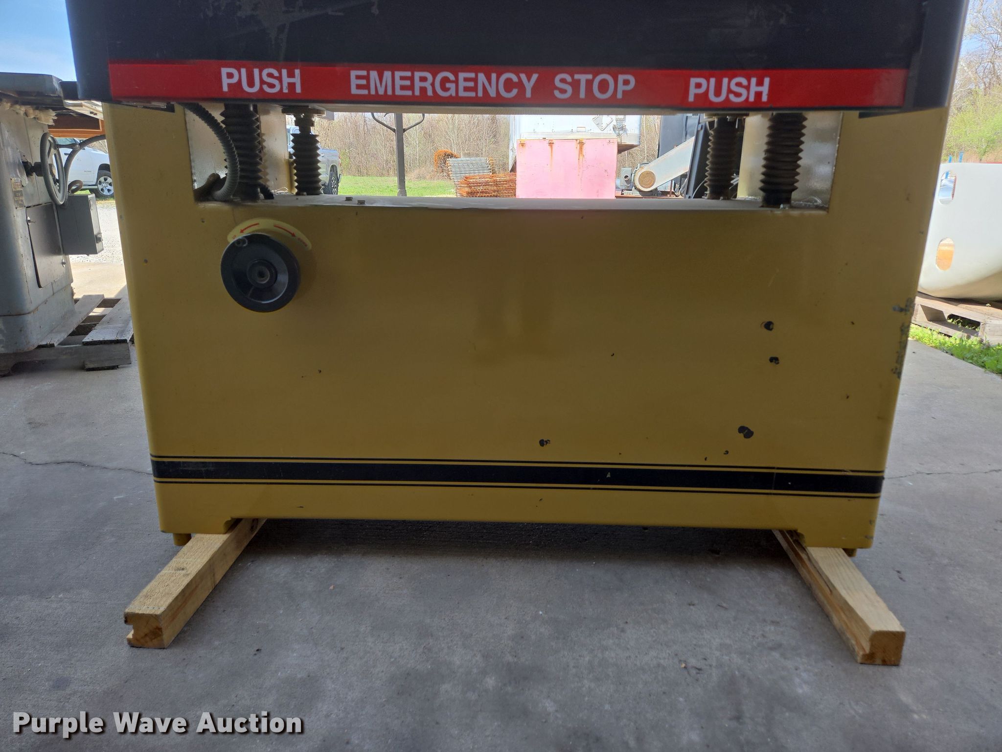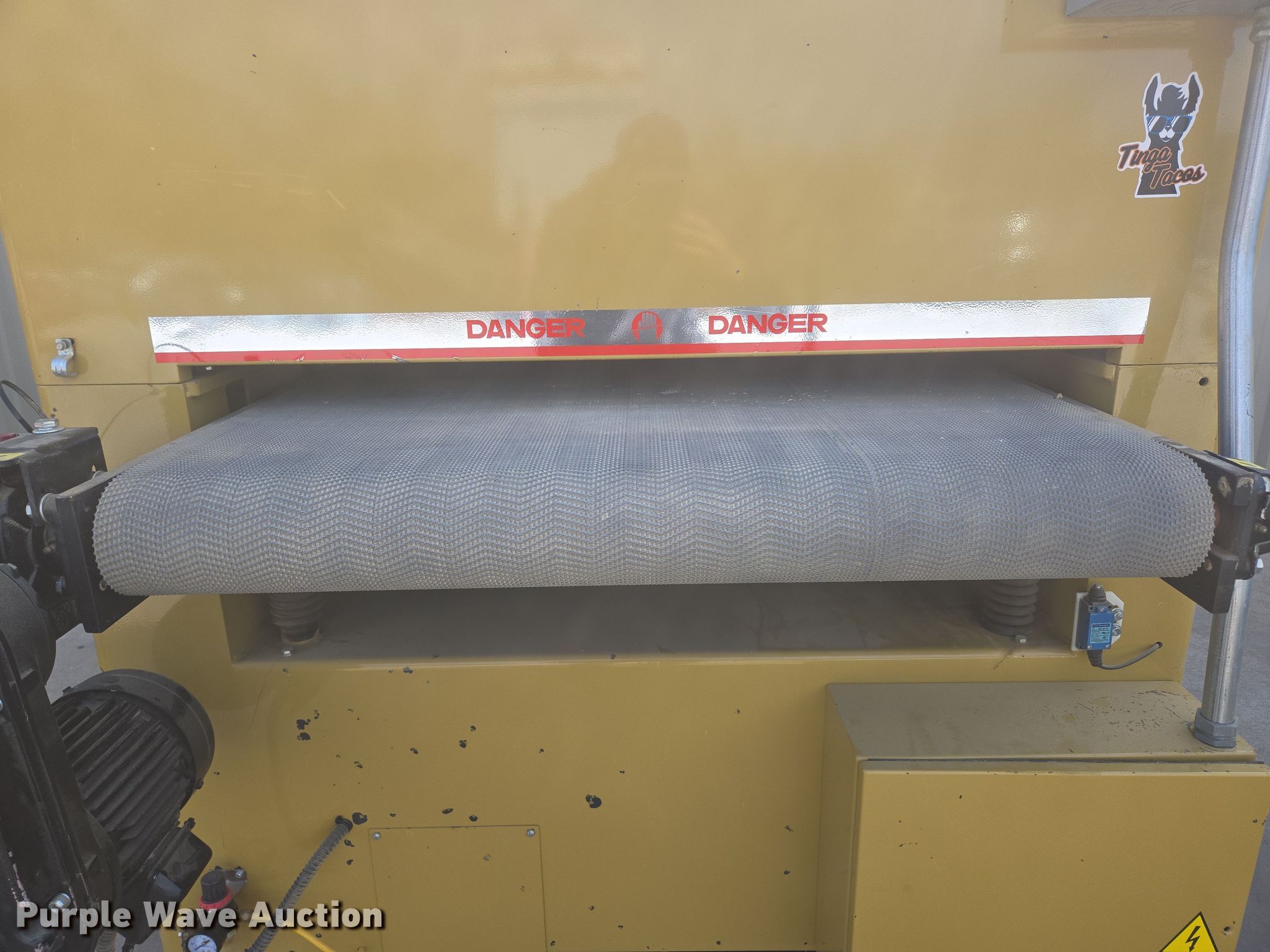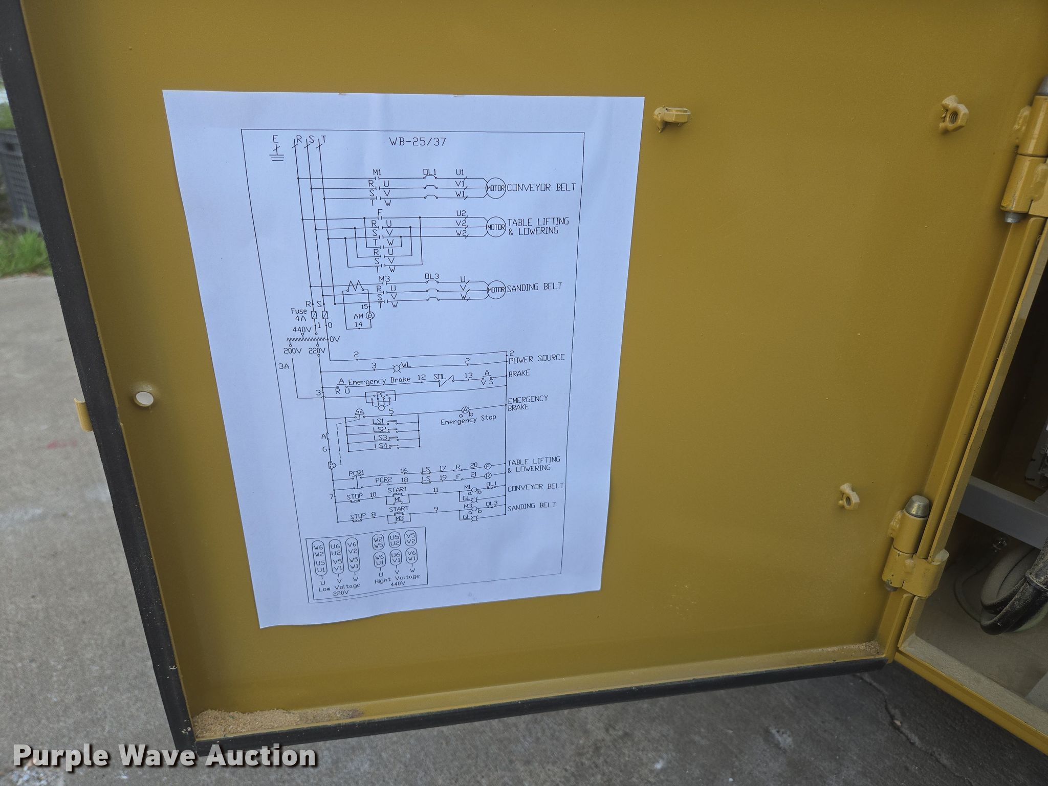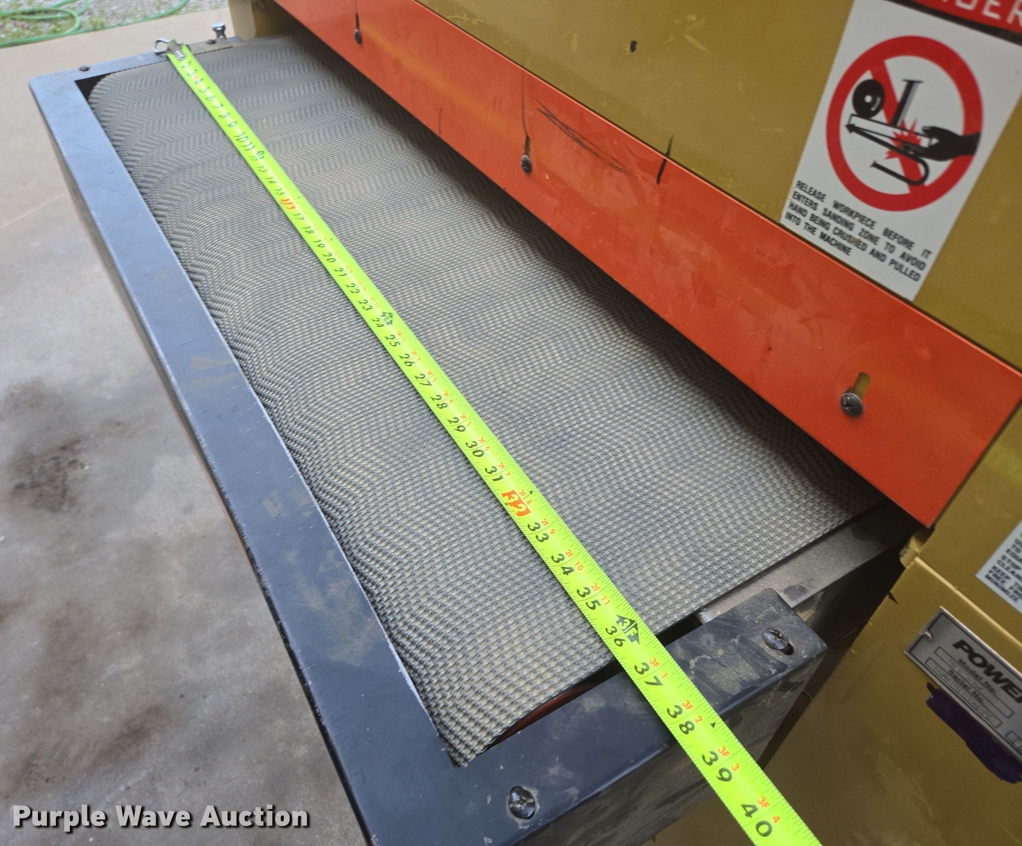 Powermatic WB-37 belt sander. Serial: 2010WB37010. Electric Motors Fukuta AEEF Serial: A1207046305, HP: 20, Volts: 220/440, Phase: Three, Fukuta AEVF Serial: A1205052203, HP: 1, Volts: 220/440, Phase: Three, Fukuta AEEF Serial: A1207046402, HP: 1/4, Volts: 220/440, Phase: Three. Features Sanding belts 37" x 75", Max sanding width: 37", Max working heigh: 6", (3) 5" dust collection ports. Notes Power cable not included. Southwest Machine. Joplin, MO 64801
