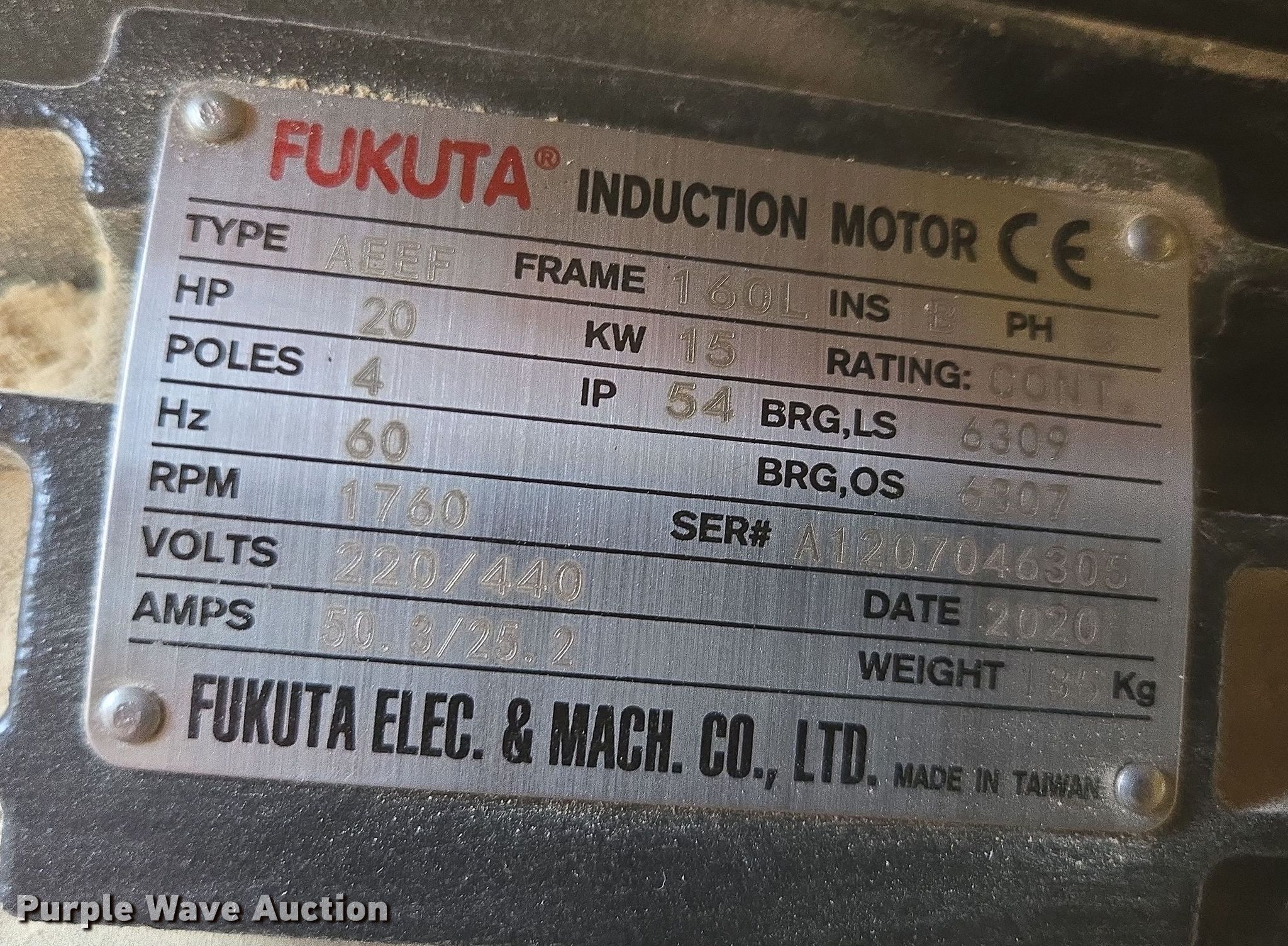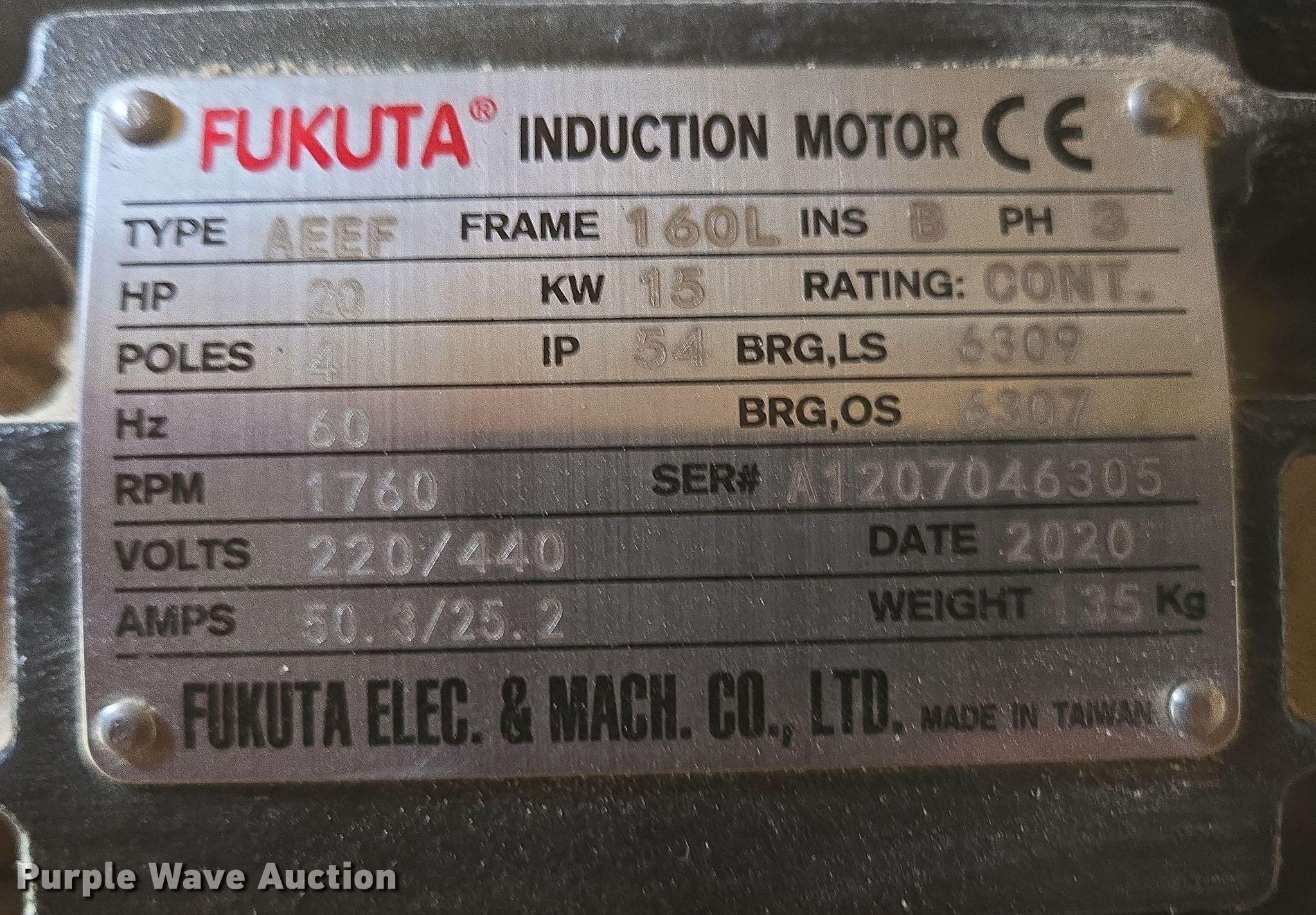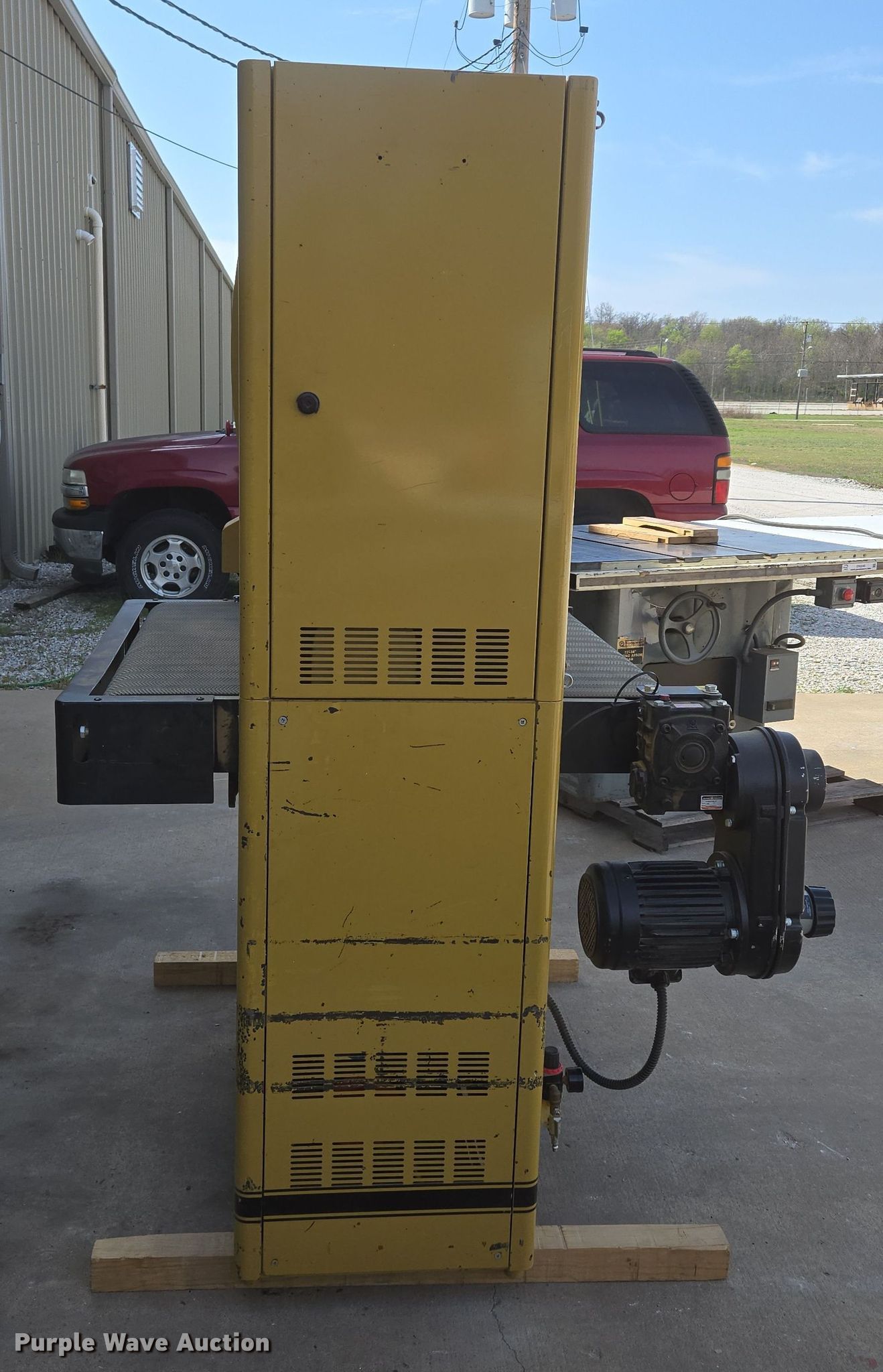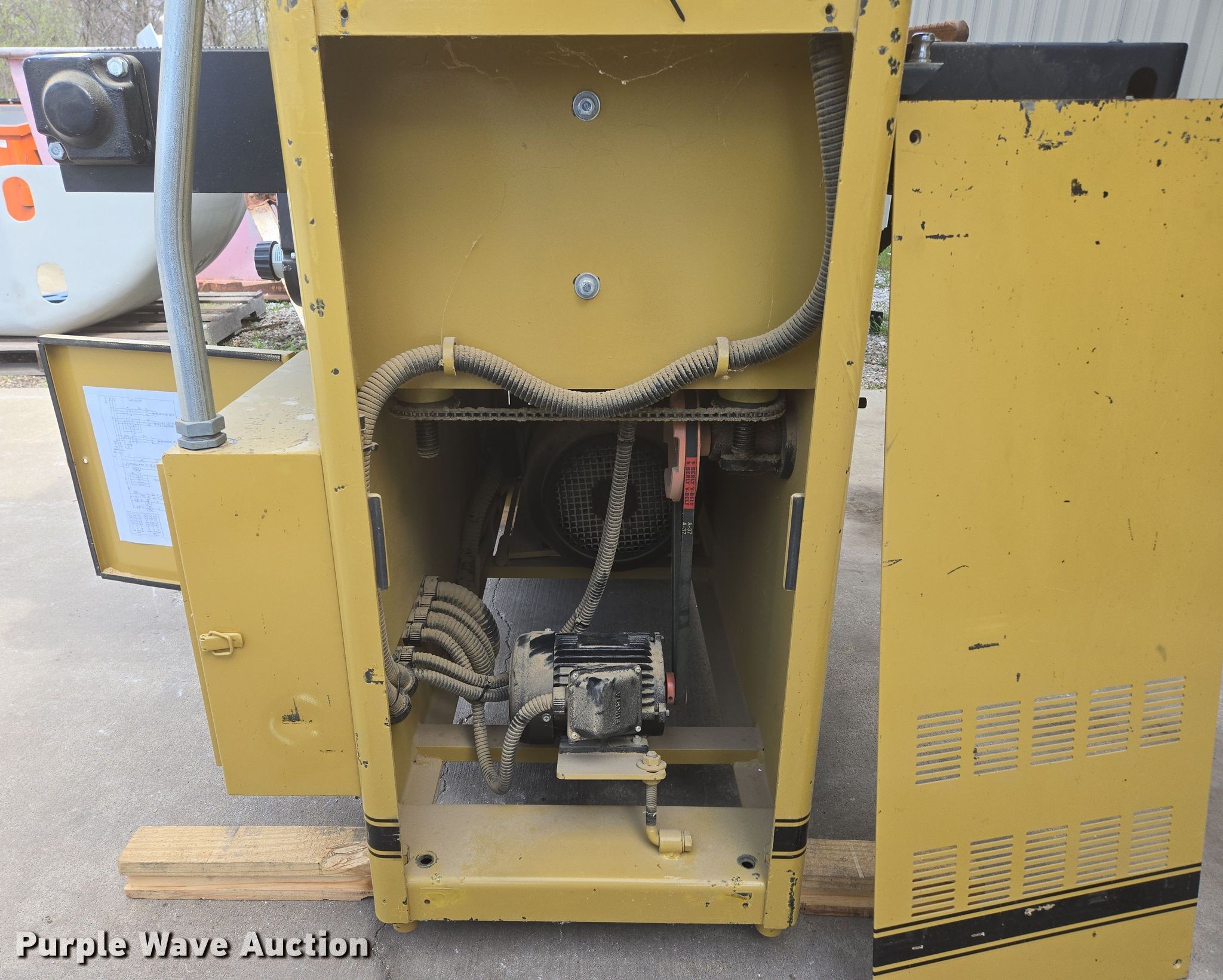 Powermatic WB-37 belt sander. Serial: 2010WB37010. Electric Motors Fukuta AEEF Serial: A1207046305, HP: 20, Volts: 220/440, Phase: Three, Fukuta AEVF Serial: A1205052203, HP: 1, Volts: 220/440, Phase: Three, Fukuta AEEF Serial: A1207046402, HP: 1/4, Volts: 220/440, Phase: Three. Features Sanding belts 37" x 75", Max sanding width: 37", Max working heigh: 6", (3) 5" dust collection ports. Notes Power cable not included. Southwest Machine. Joplin, MO 64801