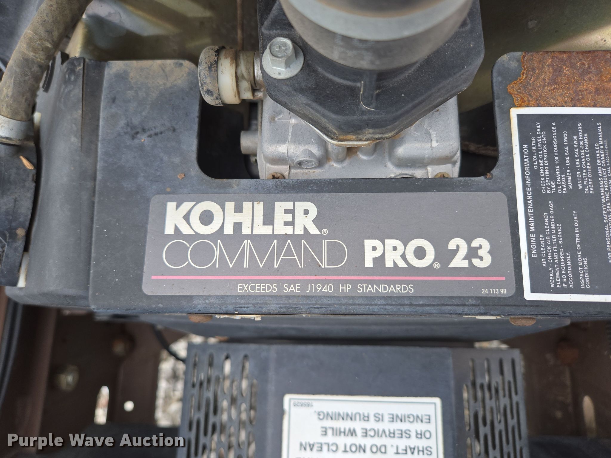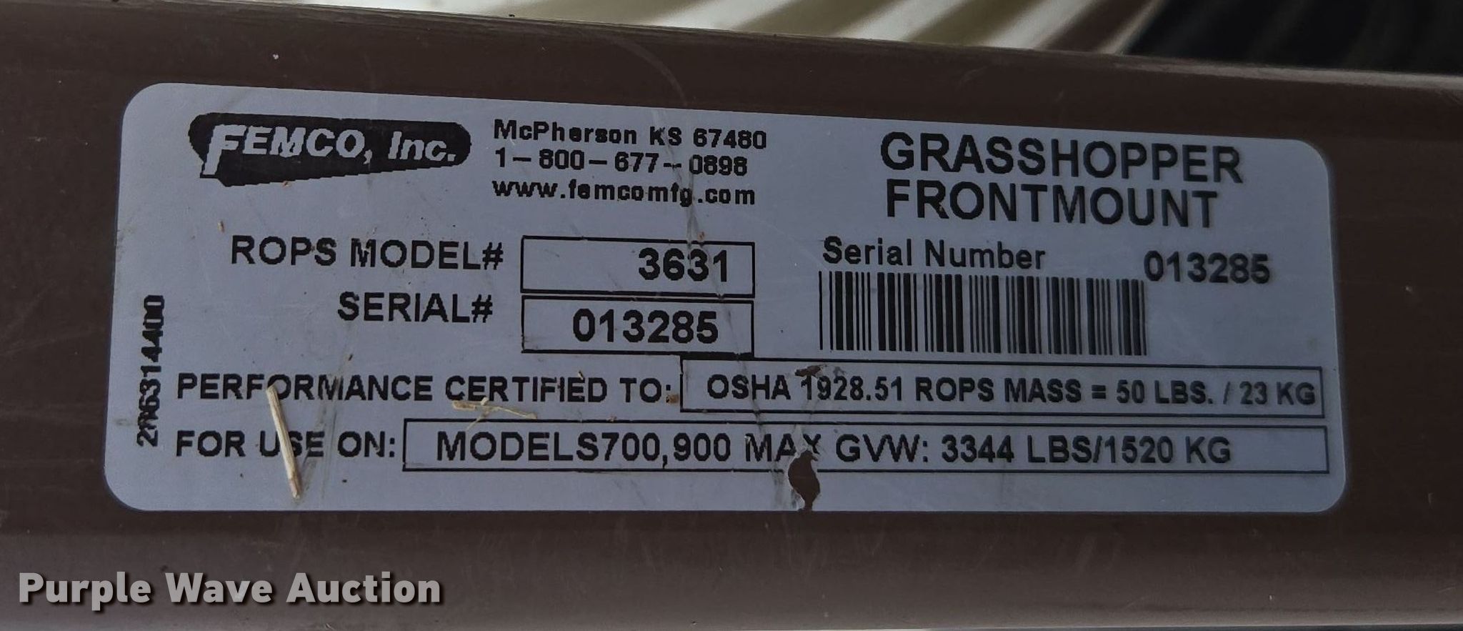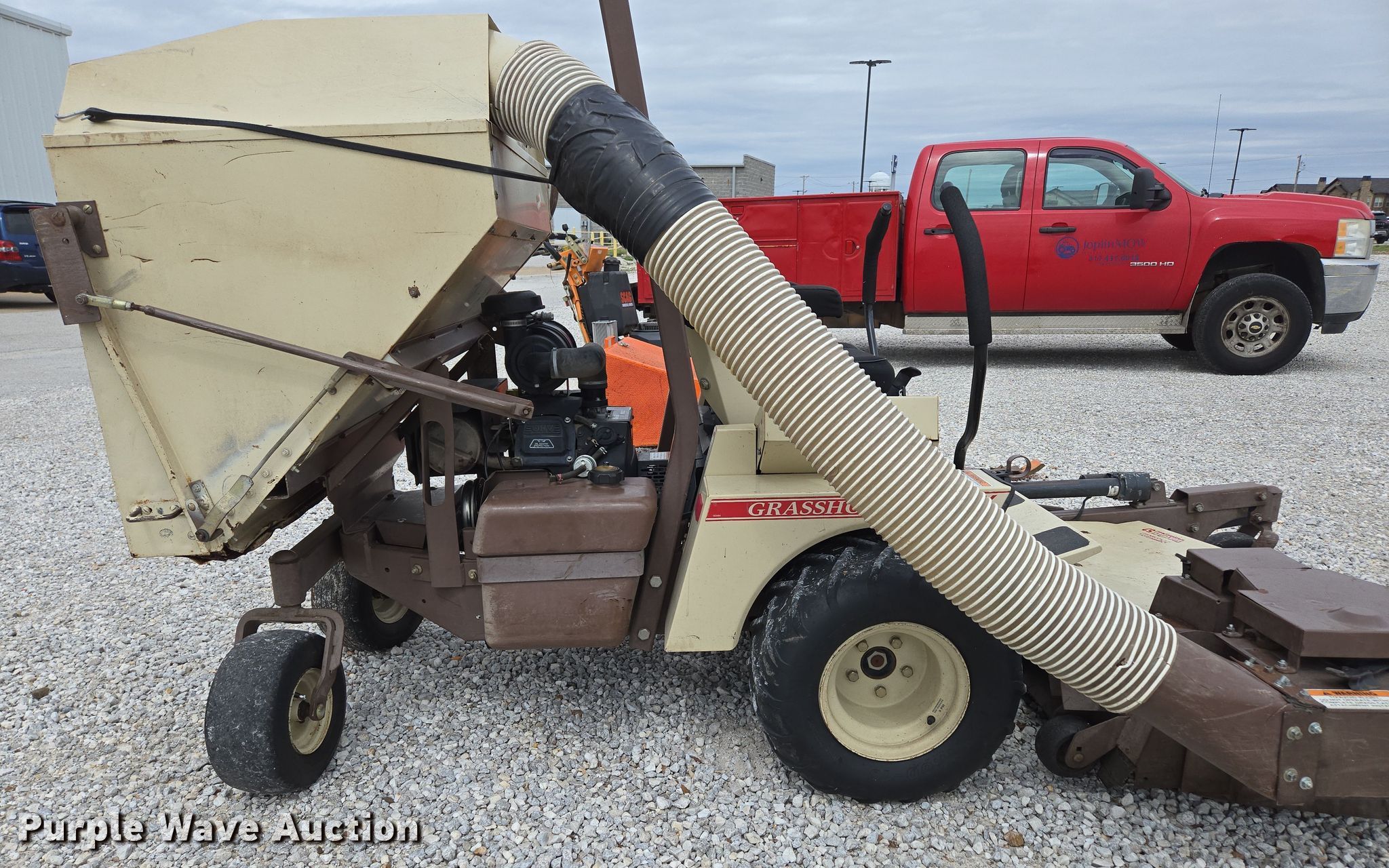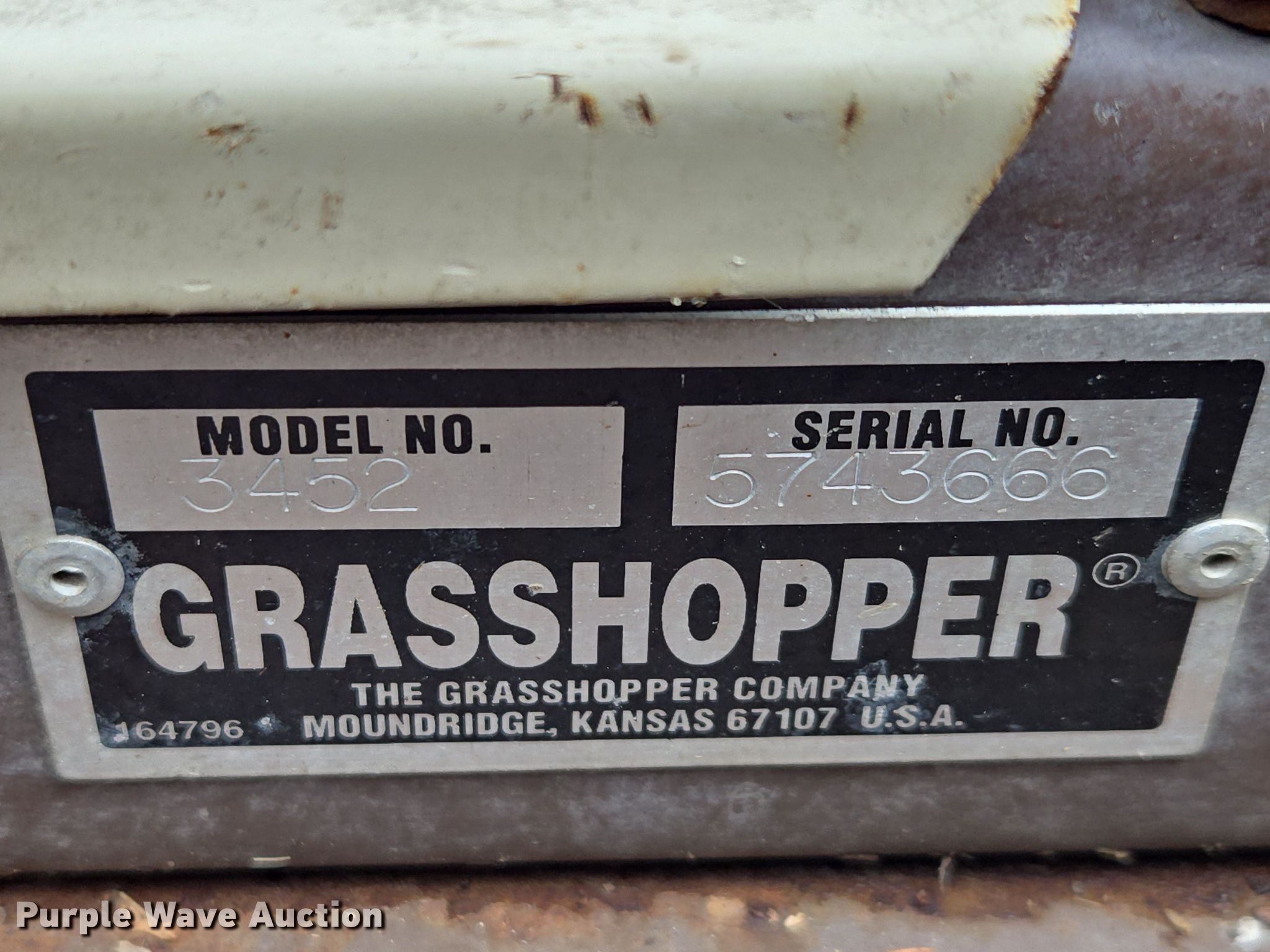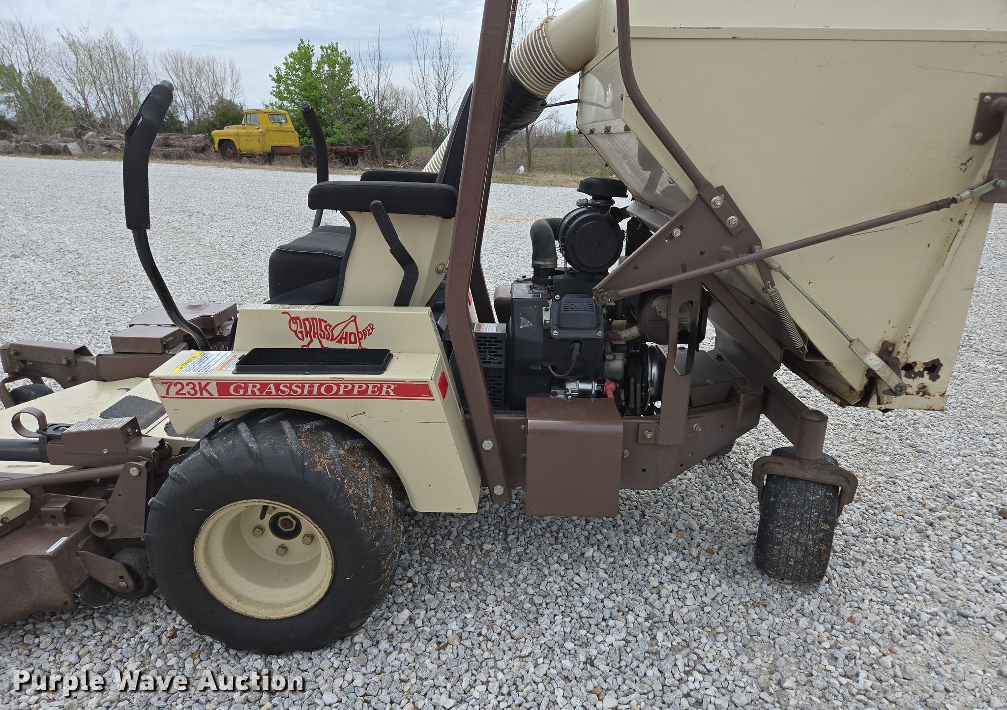 2007 Grasshopper 723K H2 ZTR lawn mower. Hours: 1,095 on meter, Cutting width: 52", Serial: 5715441. Engine Kohler Command Pro 23, Displacement: 725 cc, Cylinders: 2, Fuel type: Gas. Transmission Hydrostatic. Operators station OROPS. Features Grass bagger, Mower deck Width: 52", Grasshopper 3452, Serial: 5743666, Flip up front deck. Tires Front: 22x11.00-10, Rear: 13x6.50-6. Notes Rear bagger hopper latch rust damage, Bagger hose issues. Joplin, MO 64804