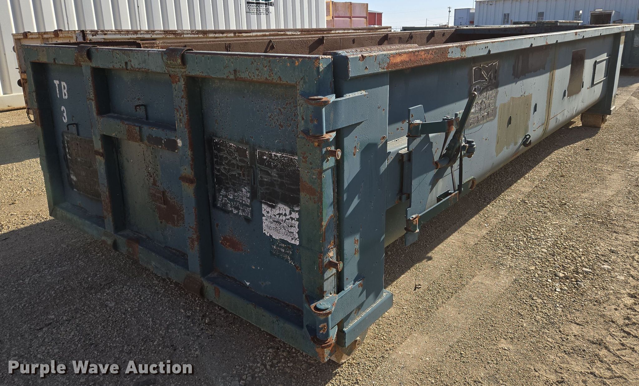 Purple Wave is selling a used Refuse or Compaction Equip. in Kansas. This item is a Roll off container with the following: 22'4" L x 97" W, Capacity: 20 cu. yd.