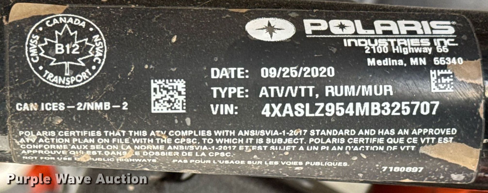 Purple Wave is selling a used ATV in Kansas. This item is a 2021 Polaris Sportsman XP1000S ATV with the following: Miles: 902 on odometer, Hours: 79 on meter, VIN: 4XASLZ954MB325707