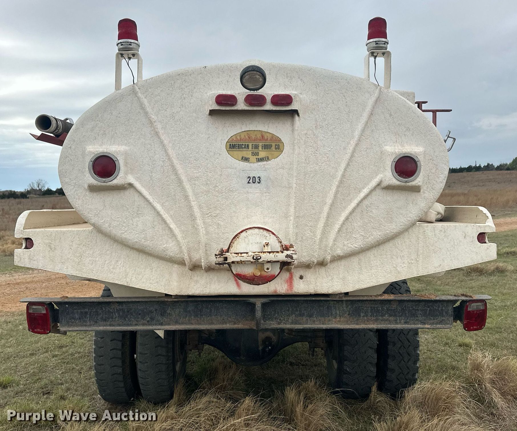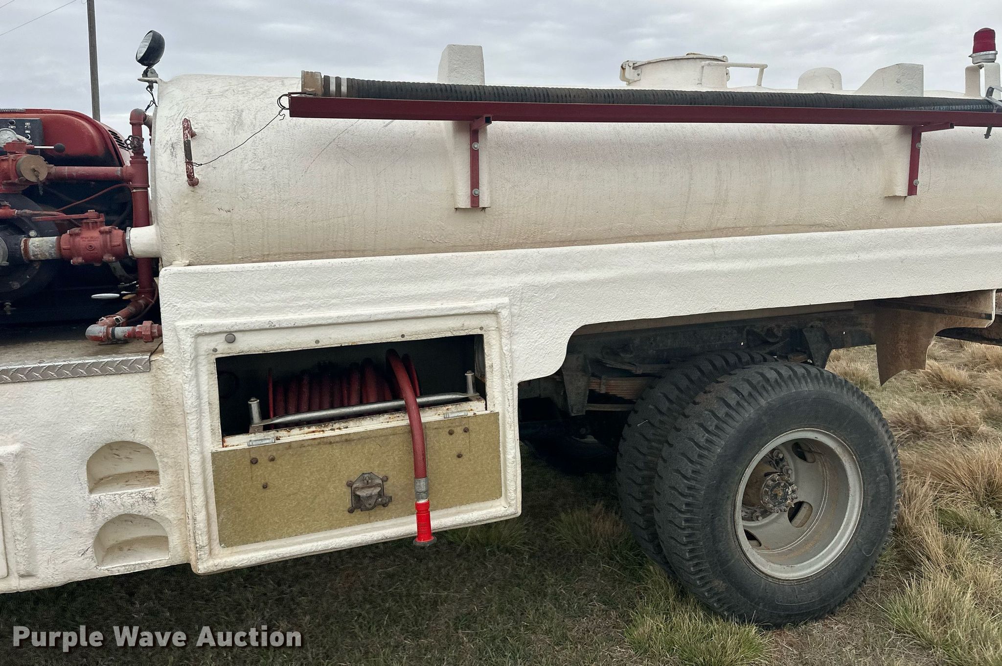 1981 GMC 7000 tank truck. Miles: 12,077 on odometer, VIN: 1GDL7D2E2BV584072. Engine Cylinders: 8, Fuel type: Gas. Transmission Manual, Speed: 5. Chassis Four wheel drive, Axles: Single, Suspension: Spring, Brakes: Hydraulic. Interior Heat. Features Bed / tank 16' 6" L x 96" W, Hose reel, Top fill, Rear drain: 8". Tires Size: 10.00-20. Oklahoma classic title. Title distribution may be delayed up to 14 days from verification of funds. James Sweet. Vici, OK 73859