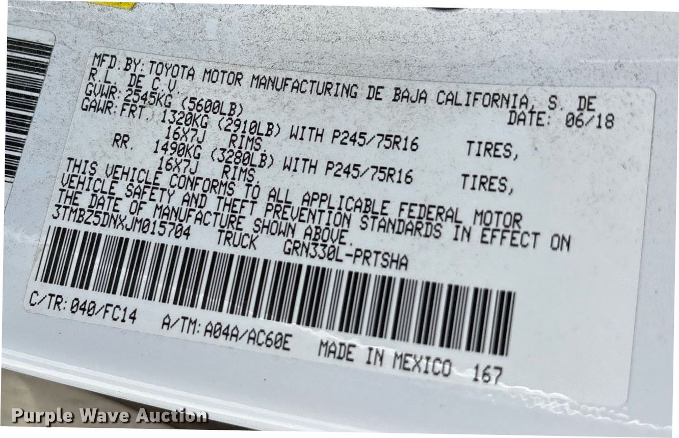 2018 Toyota Tacoma Double Cab pickup truck | SOLD! May 07 Vehicles and Equipment Auction