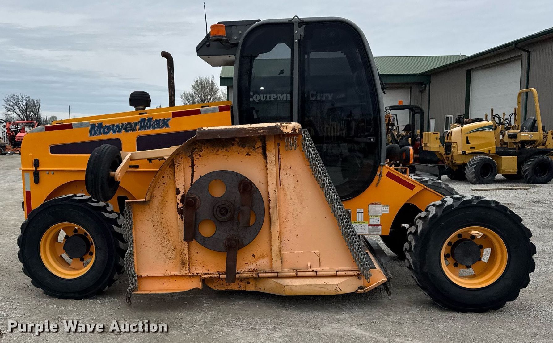 This 2017 ATMAX MowerMax Flexwing municipal tractor will sell to the highest bidder regardless of price.