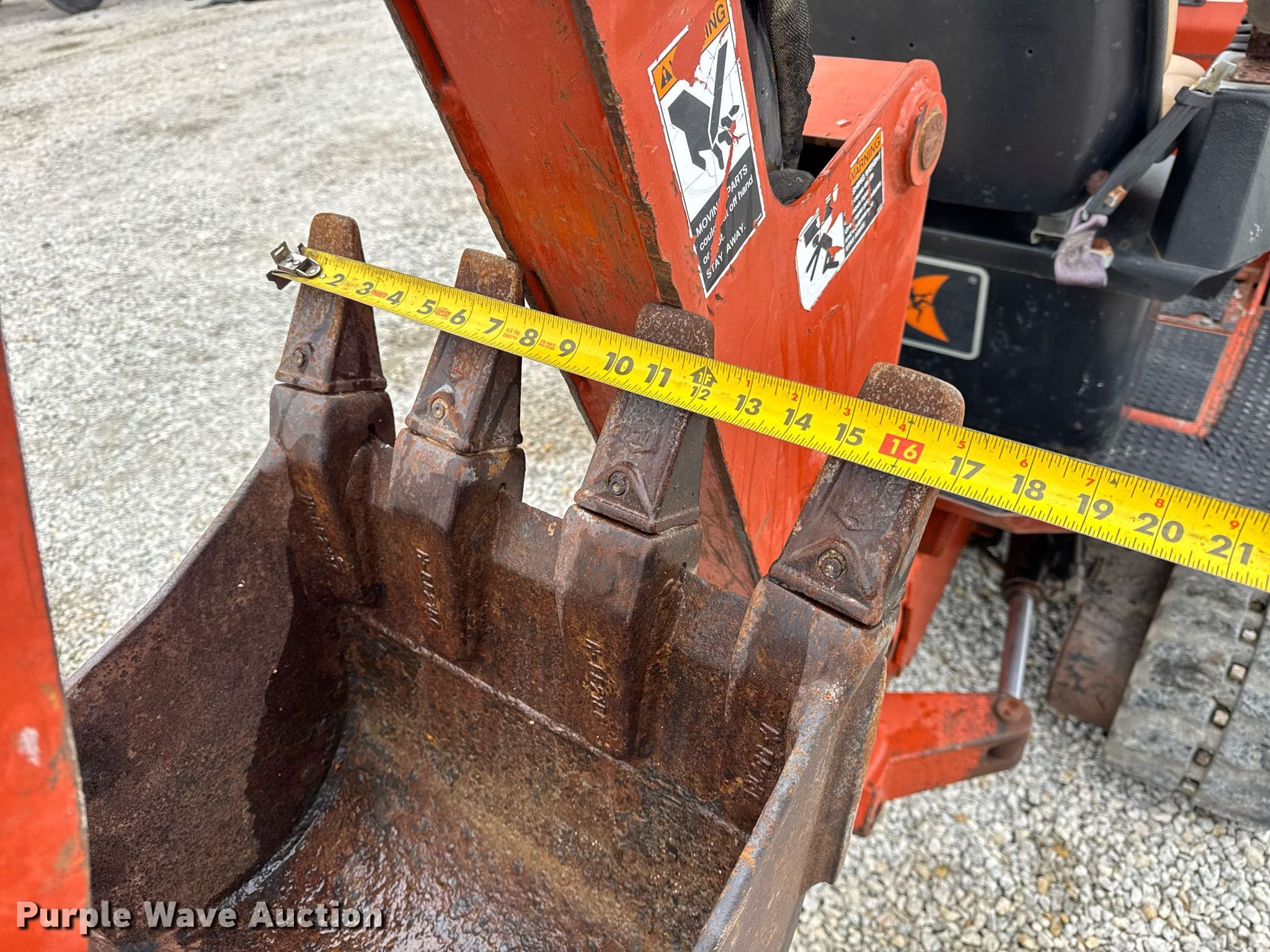 2009 Ditch Witch XT850 mini excavator / tool carrier. Hours: 2,023 on meter, Serial: CMWXT850T90000308. Engine Kubota D1105, Cylinders: 3, Fuel type: Diesel. Transmission Hydrostatic, Two speed travel. Operators station OROPS, Bucket control: Hand. Features Auxiliary hydraulics, Quick coupler: Manual, Bucket Width: 52", Backhoe Bucket Width: 17".. Tracks Width: 10". EquipmentCity LLC. Clinton, IL 61727