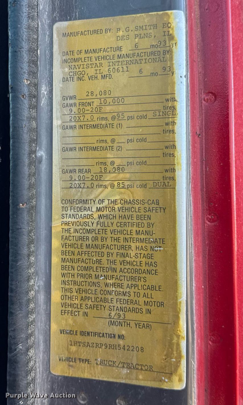 Purple Wave is selling a used Construction Dump Truck in Illinois. This item is a 1994 International 4600 dump truck with the following: Miles: 144,588 on odometer, VIN: 1HTSAZRP9RH542208