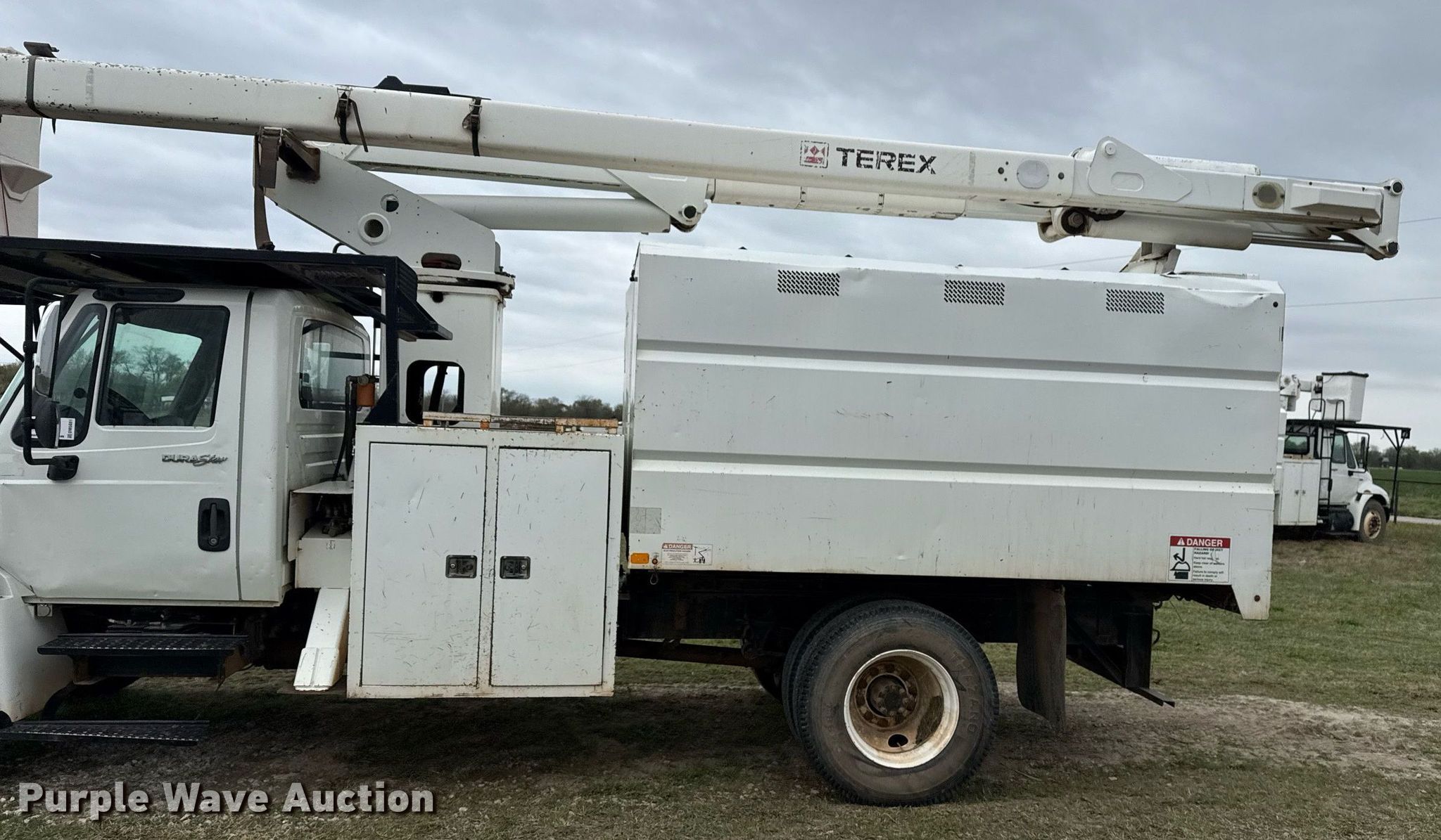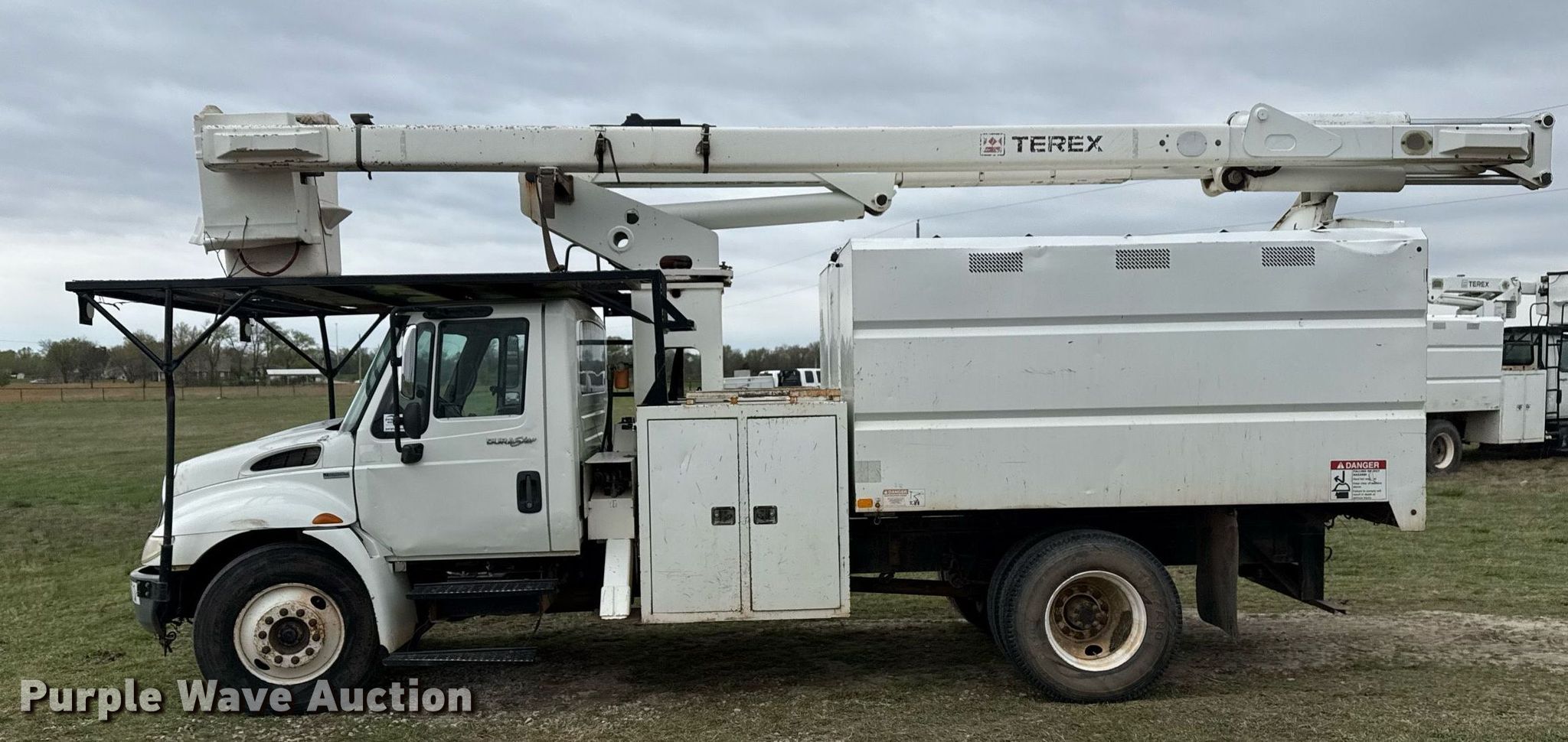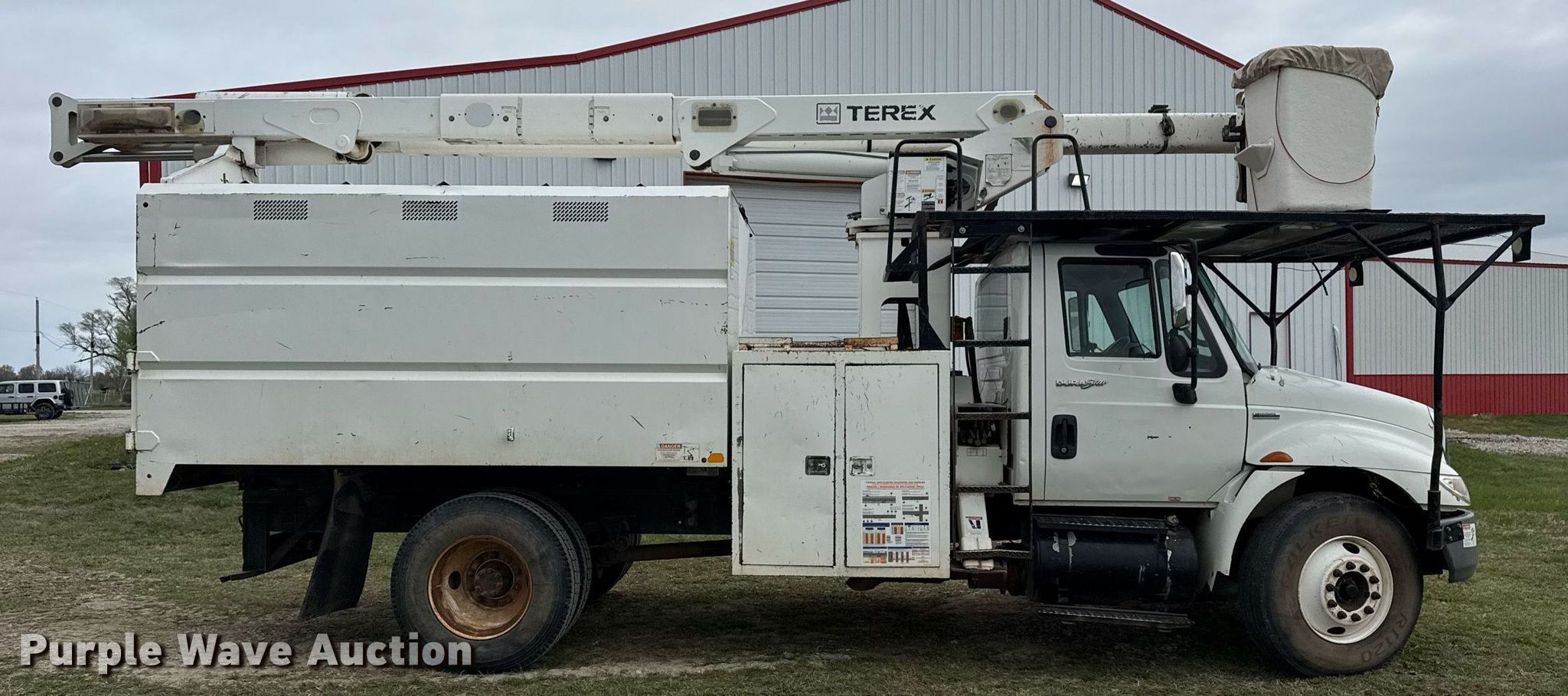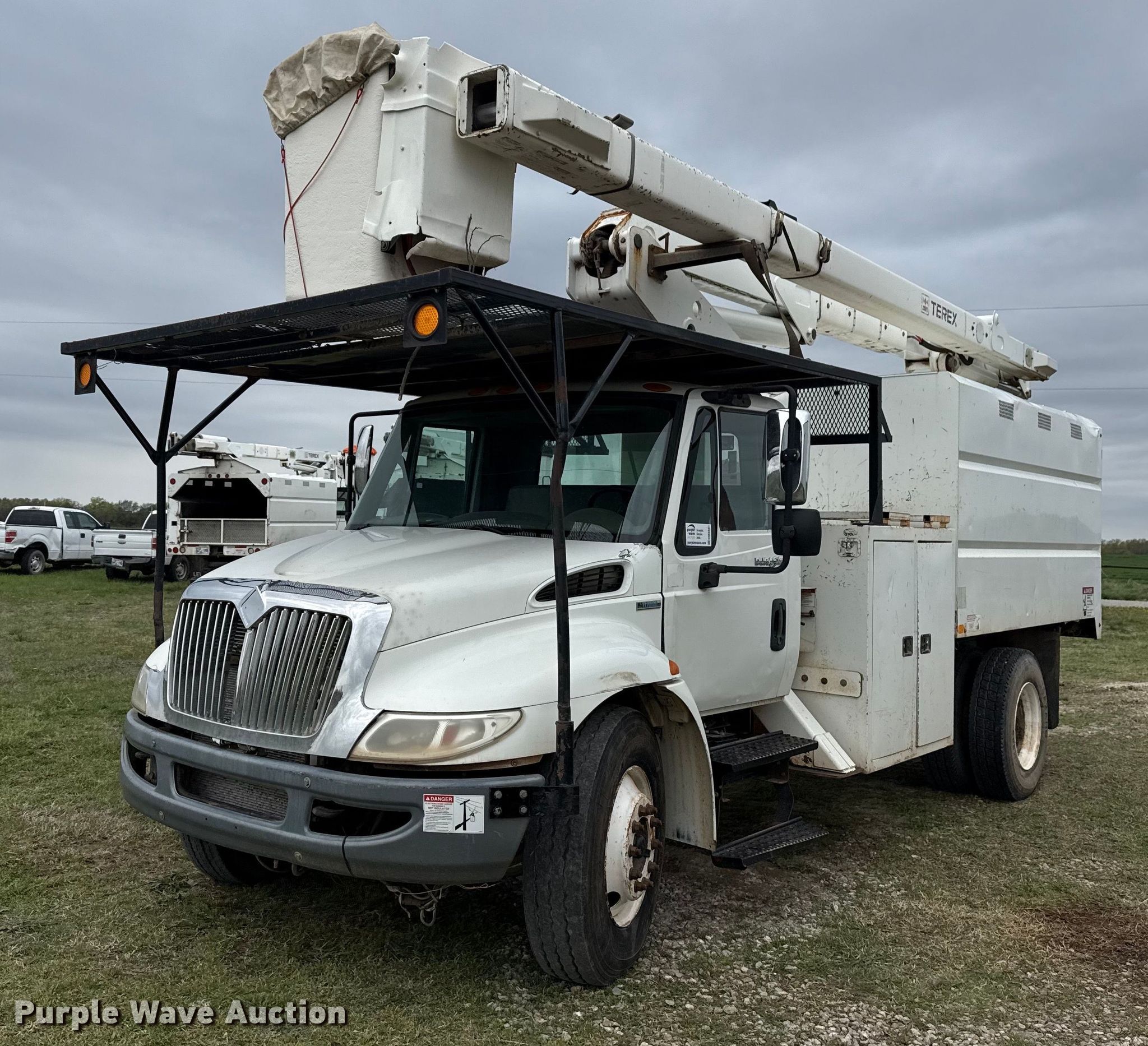 2009 International 4300 forestry bucket truck. Miles: Unknown, VIN: 1HTMMAAM99H136531. Engine International DT466, Displacement: 7.6L, Cylinders: 6, Fuel type: Diesel. Transmission Automatic. Chassis Axles: Single, Suspension: Spring, Brakes: Hydraulic, GVWR: 26,000 lbs. Interior AC, Heat, Cruise control, Brake controller. Features Chip bed 11' L x 96" W x 55" H, Boom 2008 Terex Hi-Ranger XT-55, Maximum lift capacity: 350 lbs, Maximum lift height: 55', Boom type: Articulating, Insulated, Man basket, Boom controls Platform/ basket.. Tires Size: 11R22.5. Notes Windshield chipped or cracked, Dead battery, Non-operational unit Unit must be towed or hauled. Oklahoma title. Mileage has not been verified. Exempt will be written in the odometer disclosure on the title. Title distribution may be delayed up to 14 days from verification of funds. Riggs Tree Service. Okmulgee, OK 74447