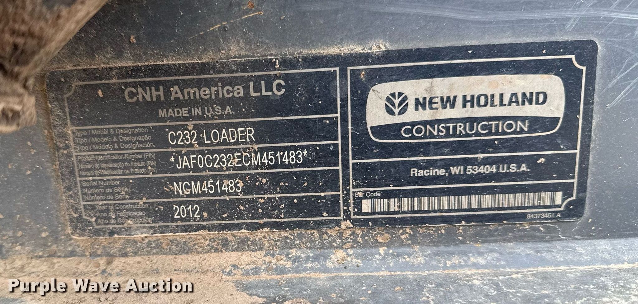 Purple Wave is selling a used Tracked Skid Steer Loader in Oklahoma. This item is a 2012 New Holland C232 tracked skid steer loader with the following: Hours: Unknown, Serial: NCM451483