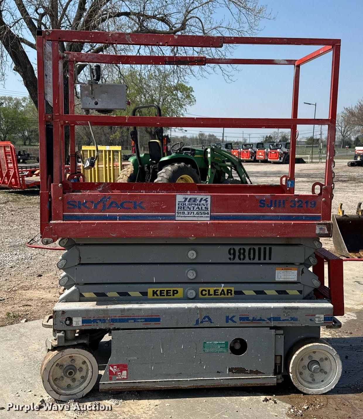 Purple Wave is selling a used Scissor or Vertical Lift in Oklahoma. This item is a 2007 Skyjack SJIII 3219 scissor lift with the following: Hours: 209 on meter, Serial: 22001216
