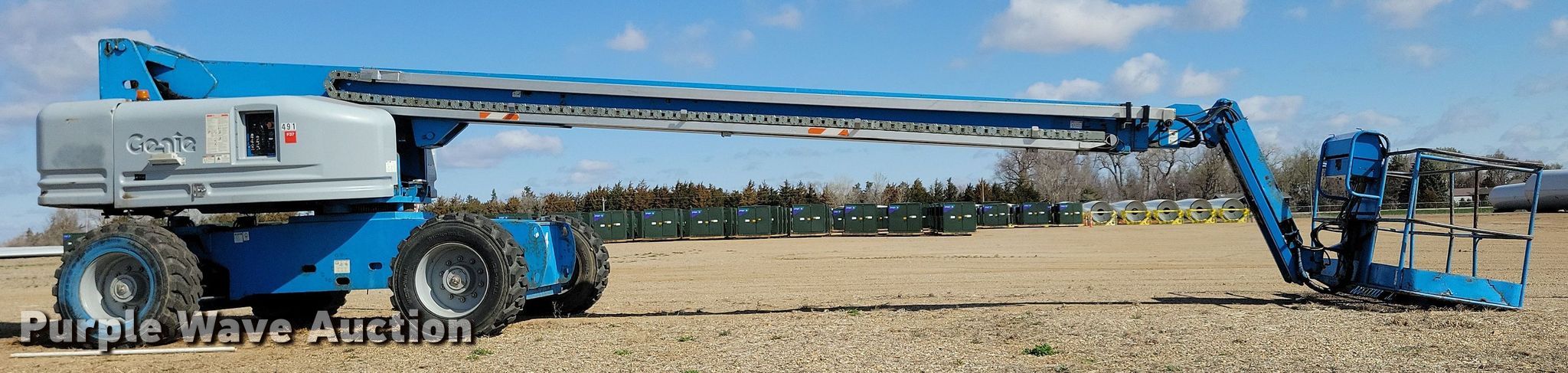 Purple Wave is selling a used Boom Lift in Nebraska. This item is a 2008 Genie S-85 boom lift with the following: Hours: 4,534 on meter, Serial: S8008-6744