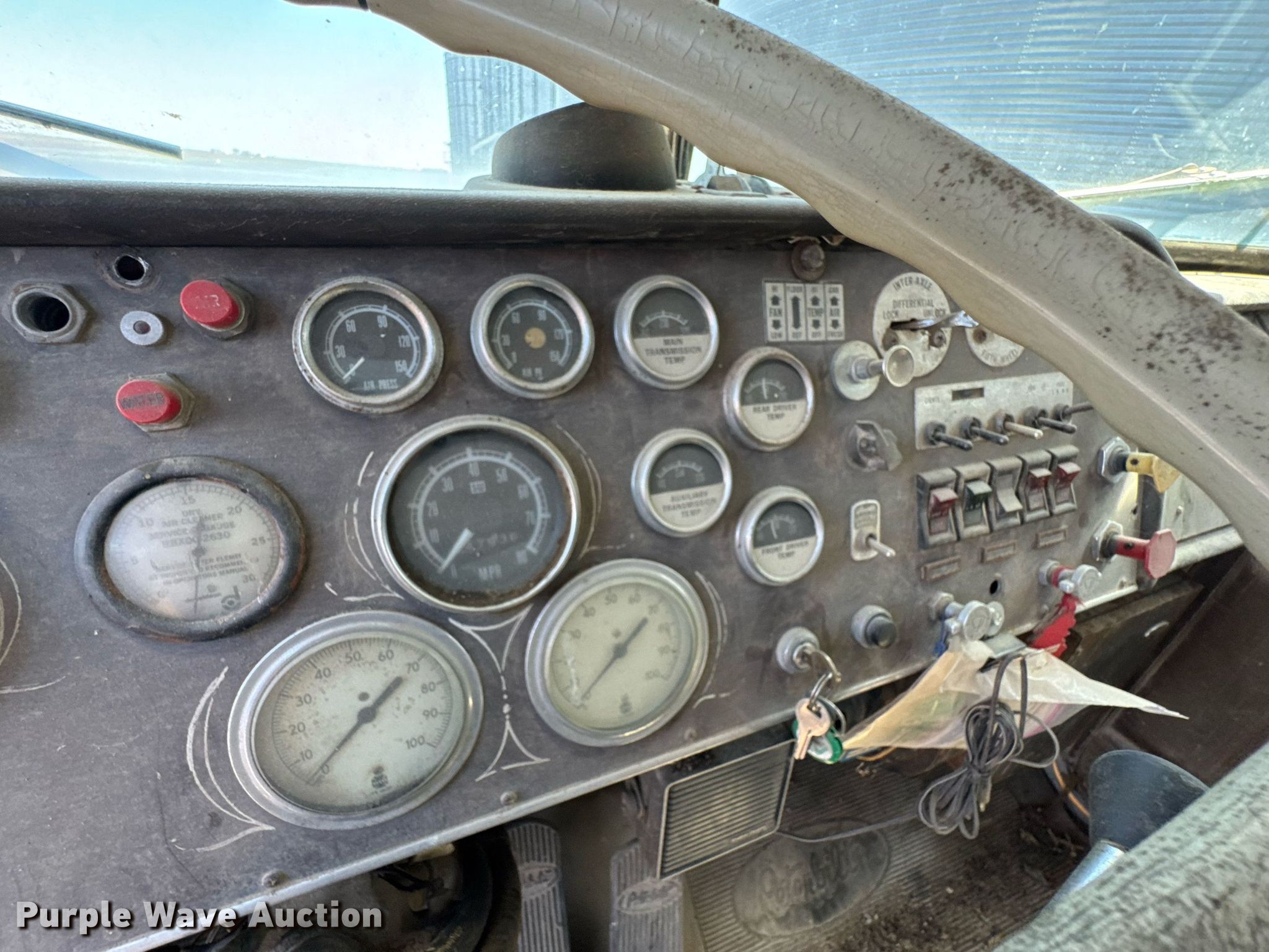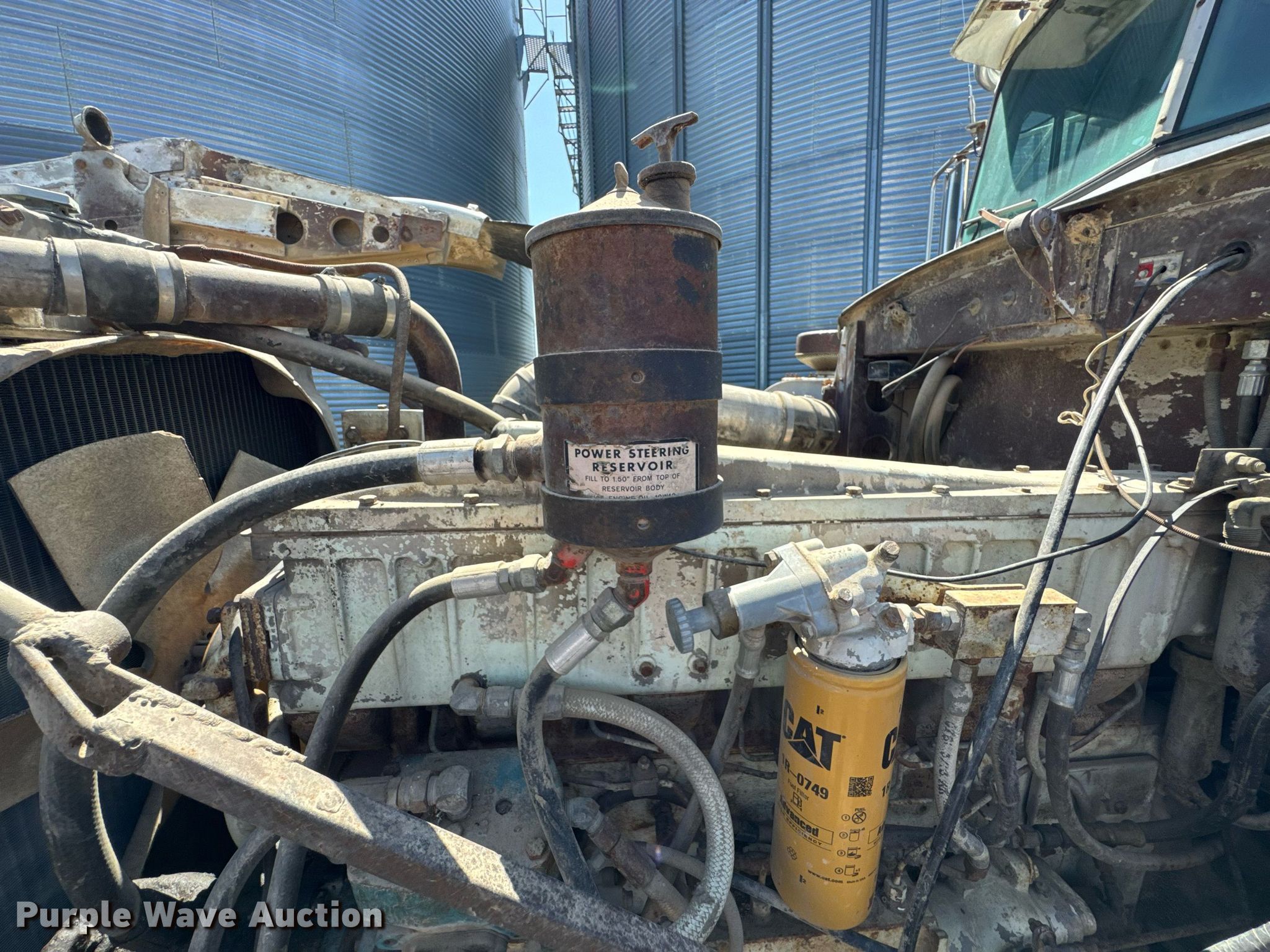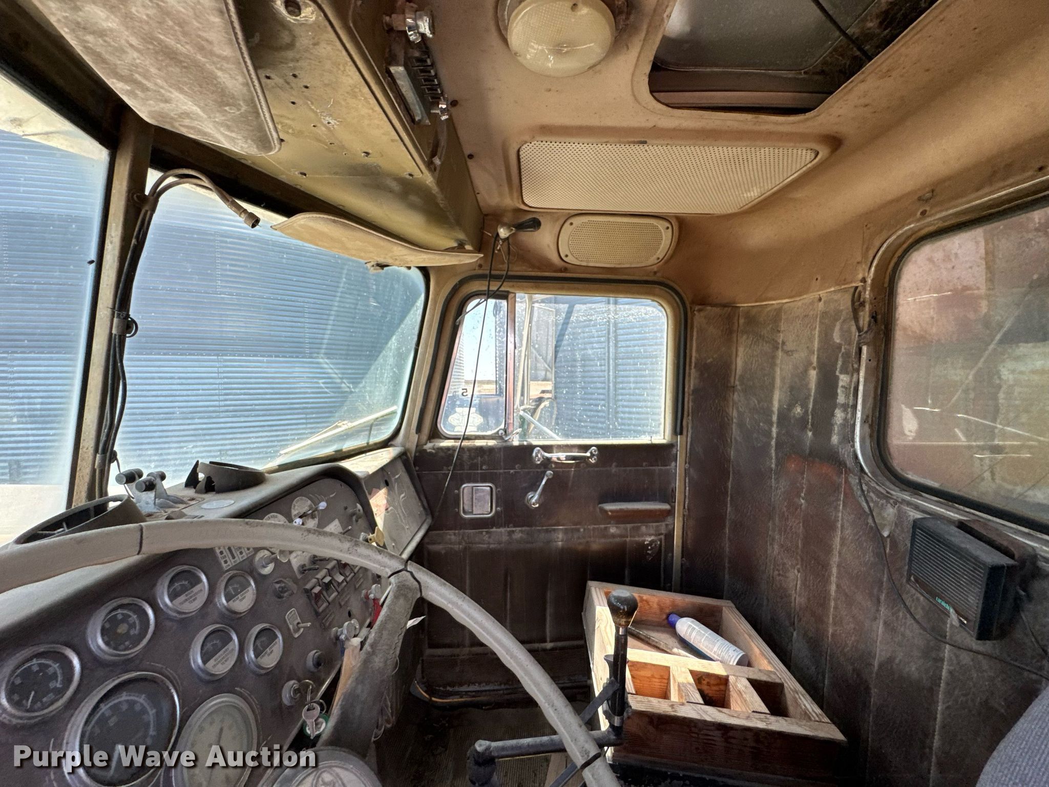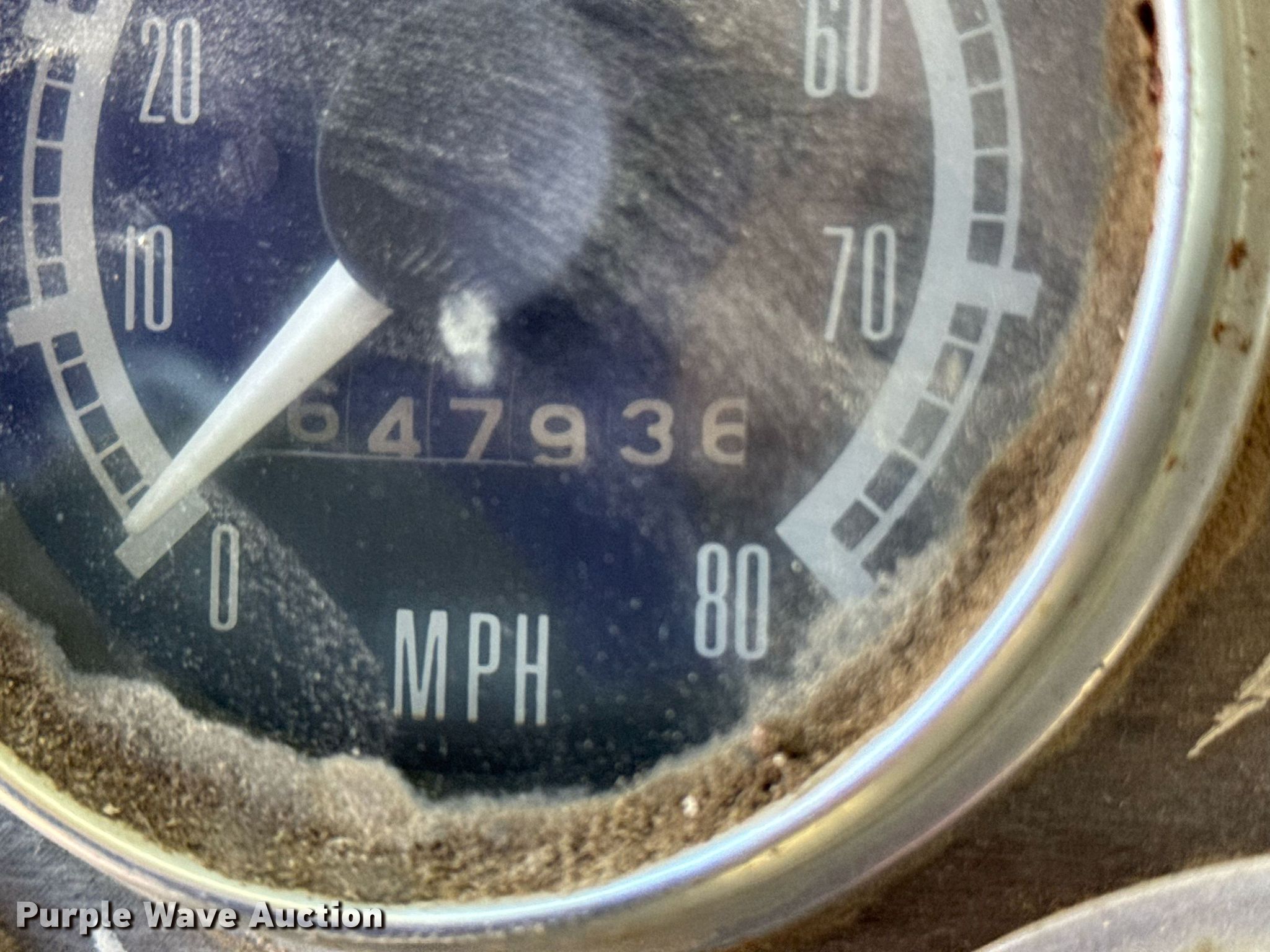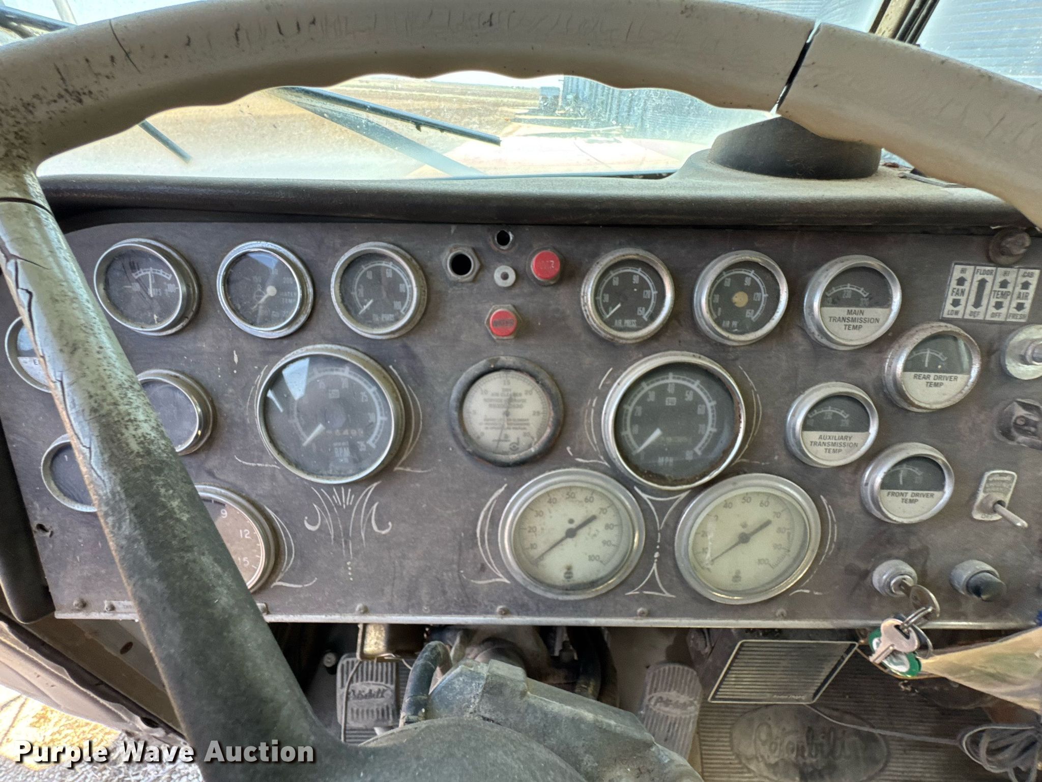 1975 Peterbilt 359A dump truck. Miles: 54,849 on odometer, Miles: 647, 936 on second odometer Actual mileage unknown, VIN: 69876P. Engine Caterpillar 3406, Cylinders: 6, Fuel type: Diesel, Engine brake. Transmission Manual, Speed: 9. Chassis Axles: Tandem, Differential lock: Inter-axle, Suspension: Spring over walking beam, Brakes: Air, PTO. Interior Heat. Features Dump bed 15' 6" L x 100" W, Side height: 42", Bed type: Steel, Barrel, Ram: Single, End gate: Air operated. Tires Front: 315/80R22.5, Rear: 11R22.5. Notes Unknown operating condition. Kansas antique title. Mileage has not been verified. Exempt will be written in the odometer disclosure on the title. Title distribution may be delayed up to 30 days from verification of funds. Chanute, KS 66720