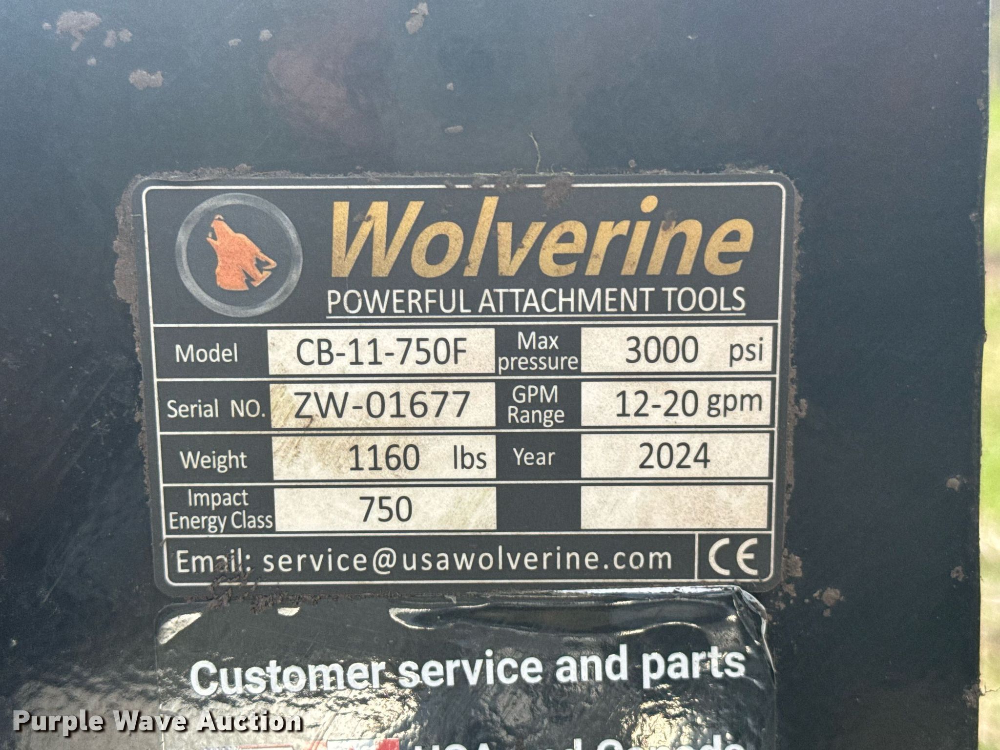 Purple Wave is selling a used Skid Steer Attach. in Kansas. This item is a 2024 Wolverine CB-11-750F skid steer breaker with the following: Serial: ZW-01677, (2) bits