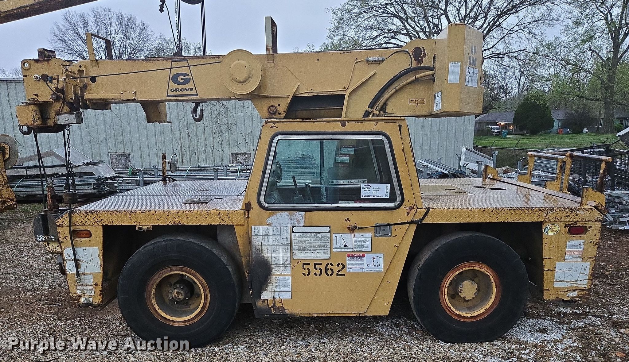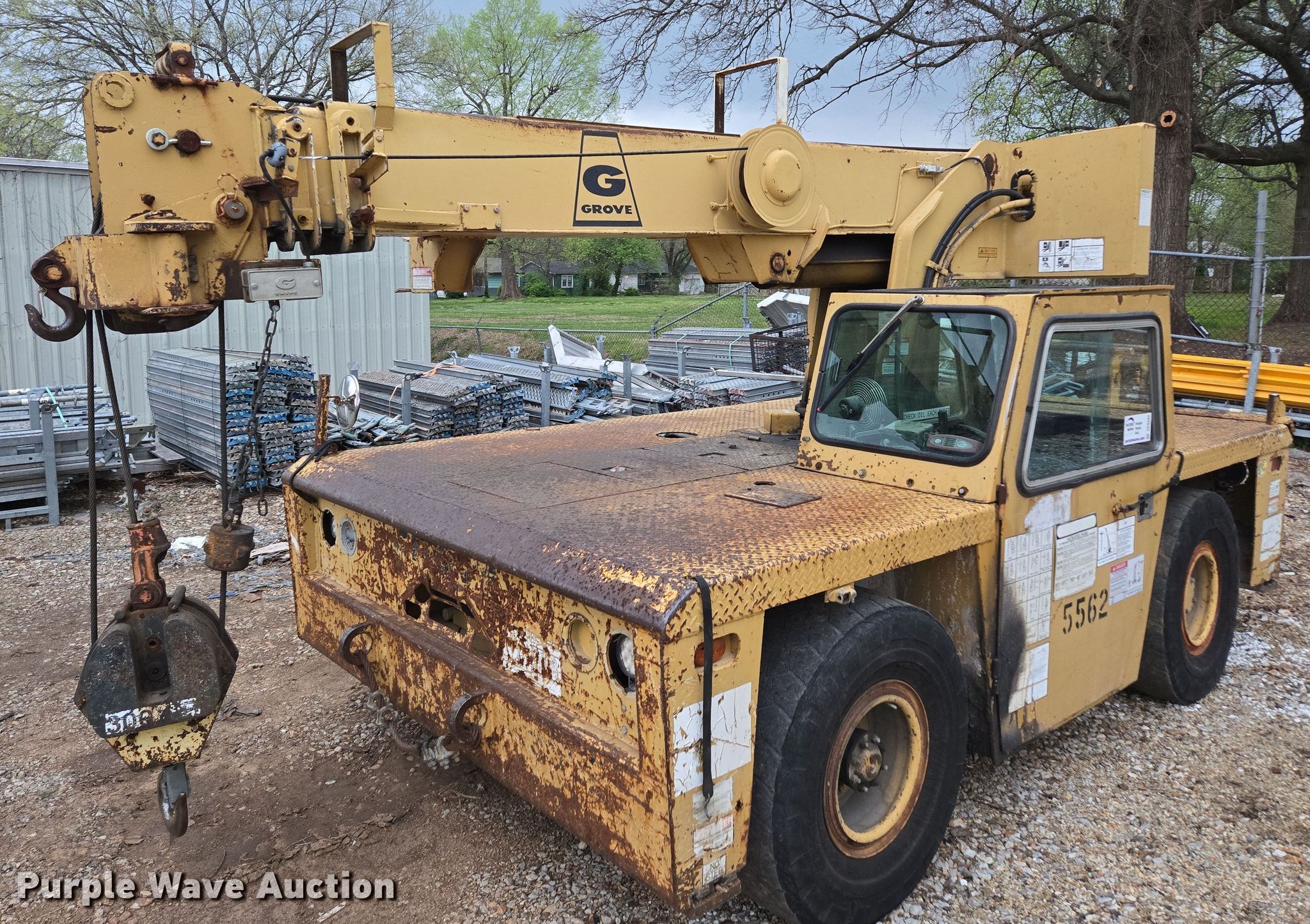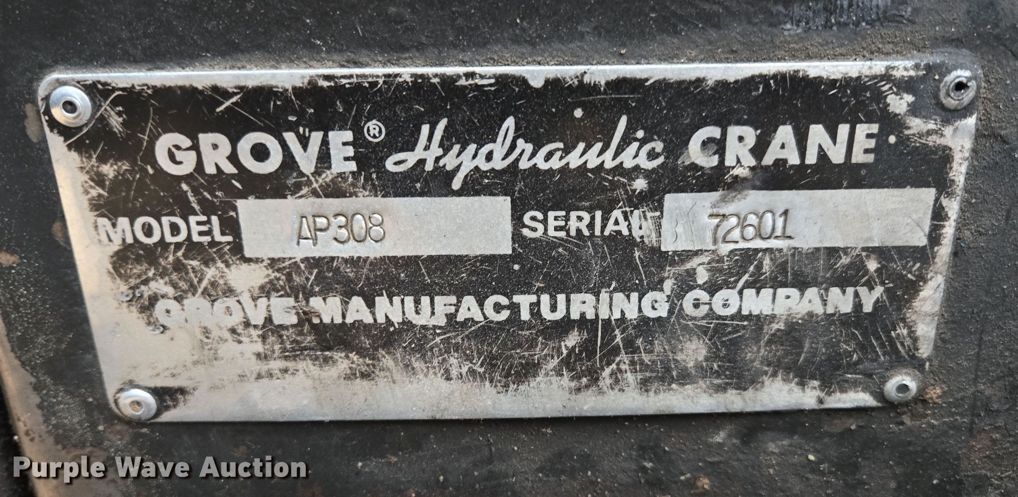 Purple Wave is selling a used Carry Deck Crane in Missouri. This item is a 1990 Grove AP308 crane with the following: Miles: Unknown, Serial: 72601, Unit #: 5562