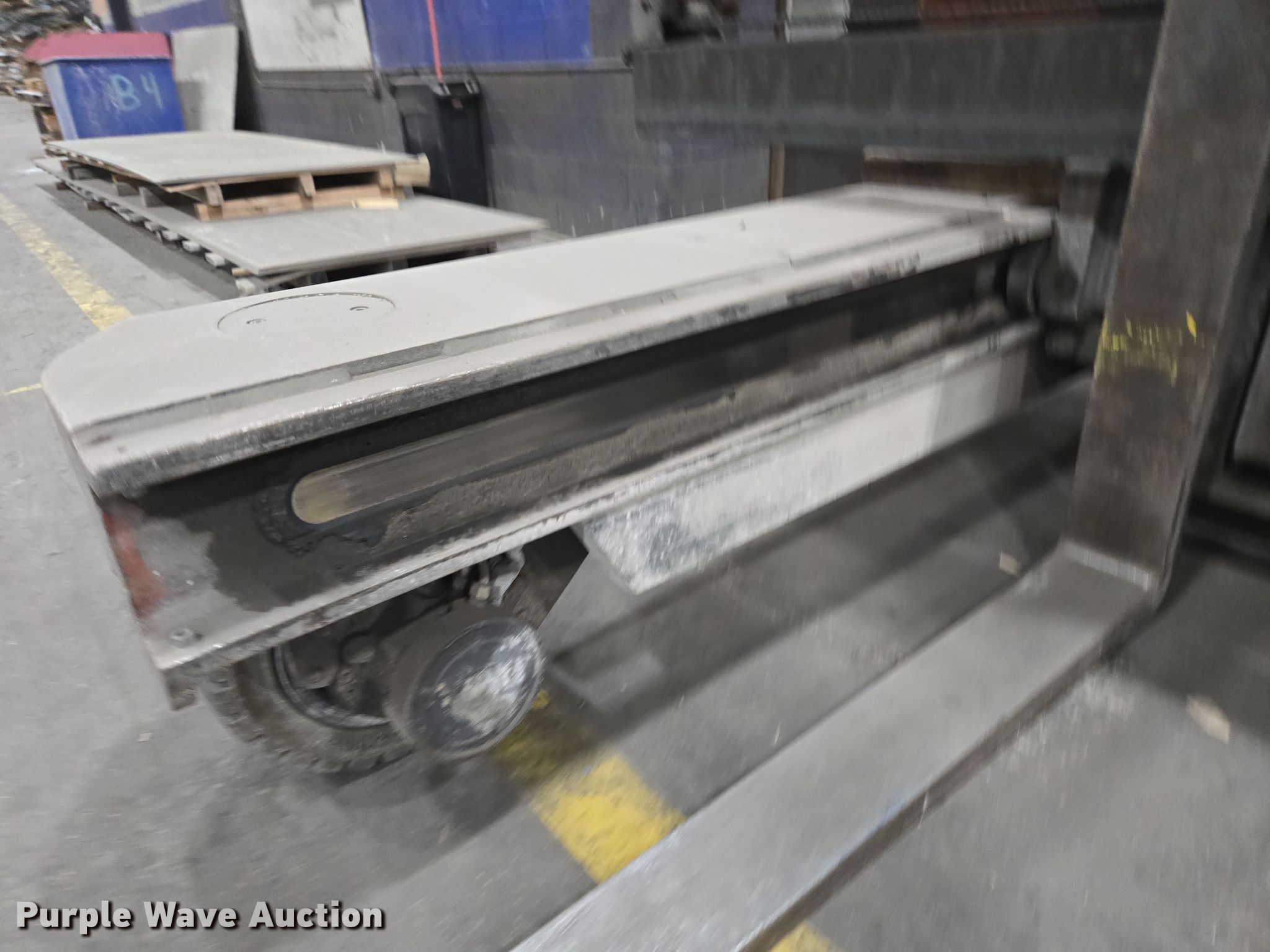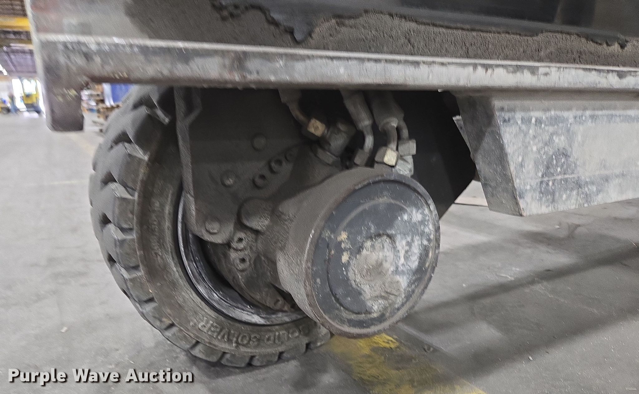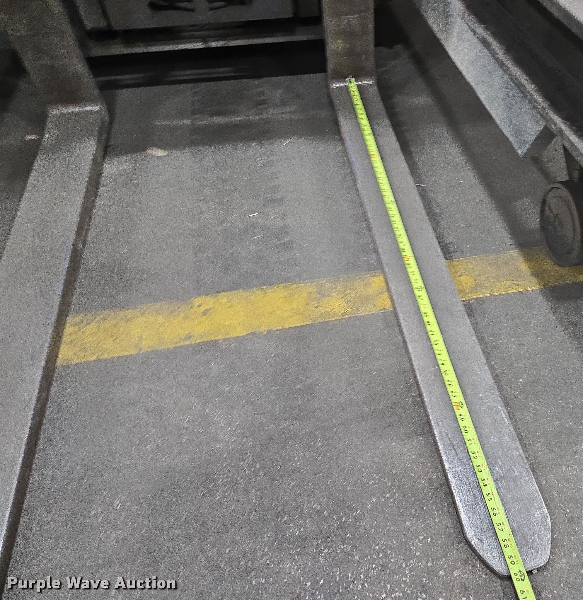 2013 Hubtex 3050-EL/T forklift. Hours: 7,359 on meter, Serial: 63.835, Unit #: 8181. Engine GM, Cylinders: 4, Fuel type: LPG LP bottle: Not included. Transmission Hydrostatic. Operators station Enclosed cab. Features Mast stages: 2, Side shift, Mast tilt, Fork length: 60". Tires Front: 200/50-10, Rear: 2.50-15, Solid. Notes Warning indicator: Battery, Possible electrical issue, Catalytic converter issues, plugged, Hydraulic fluid leak, Back glass missing. Paul Mueller Company. Springfield, MO 65802