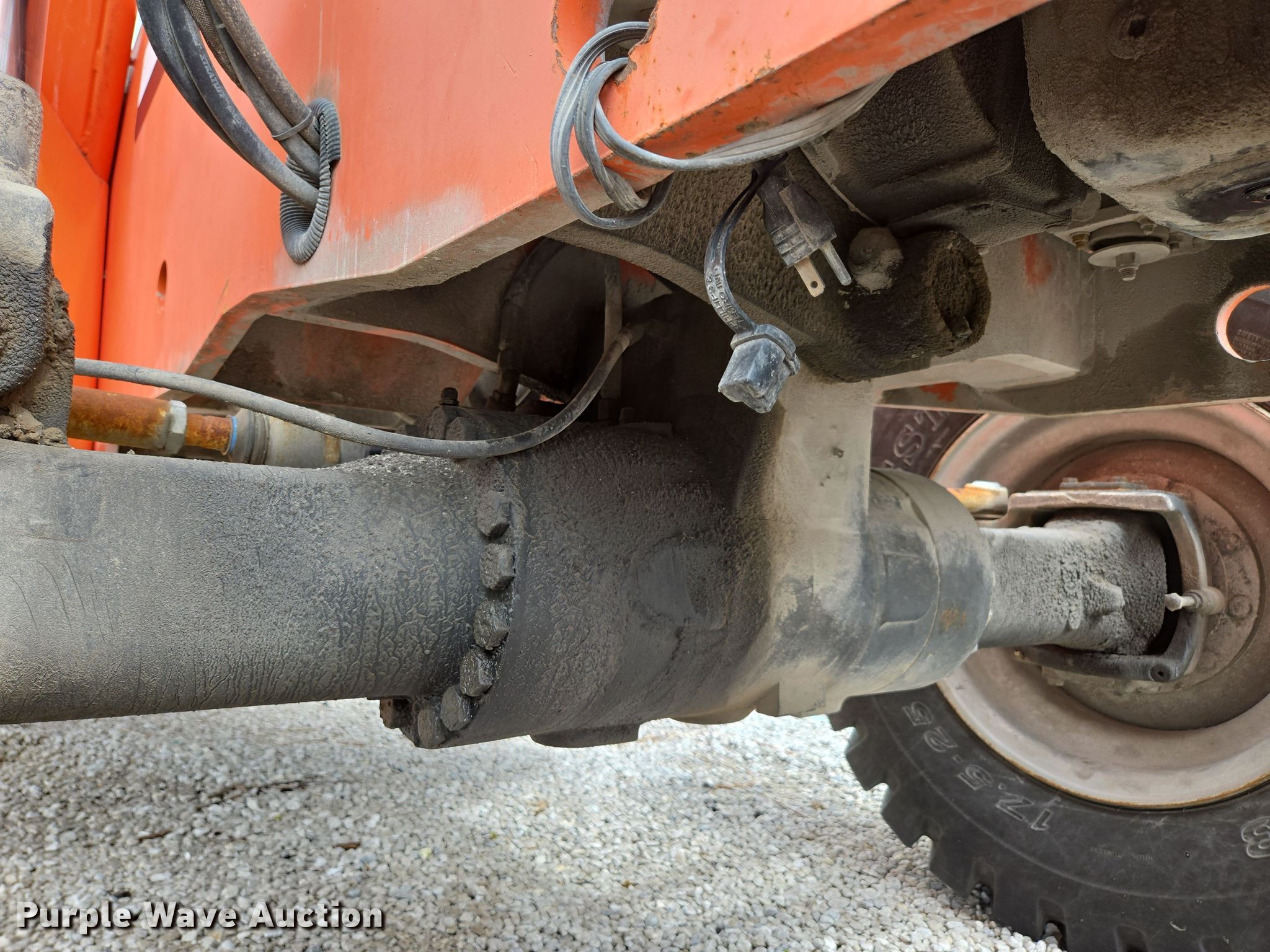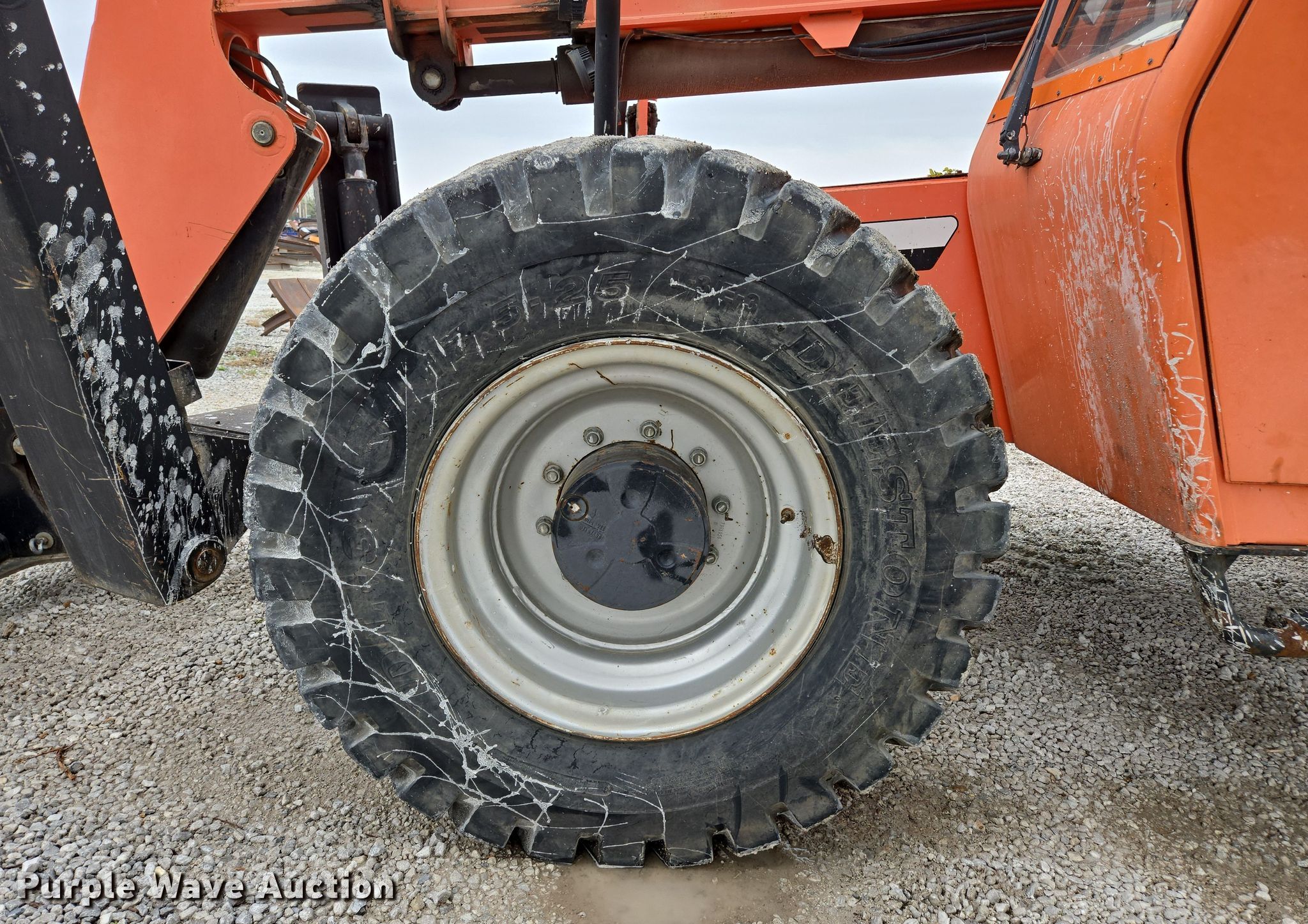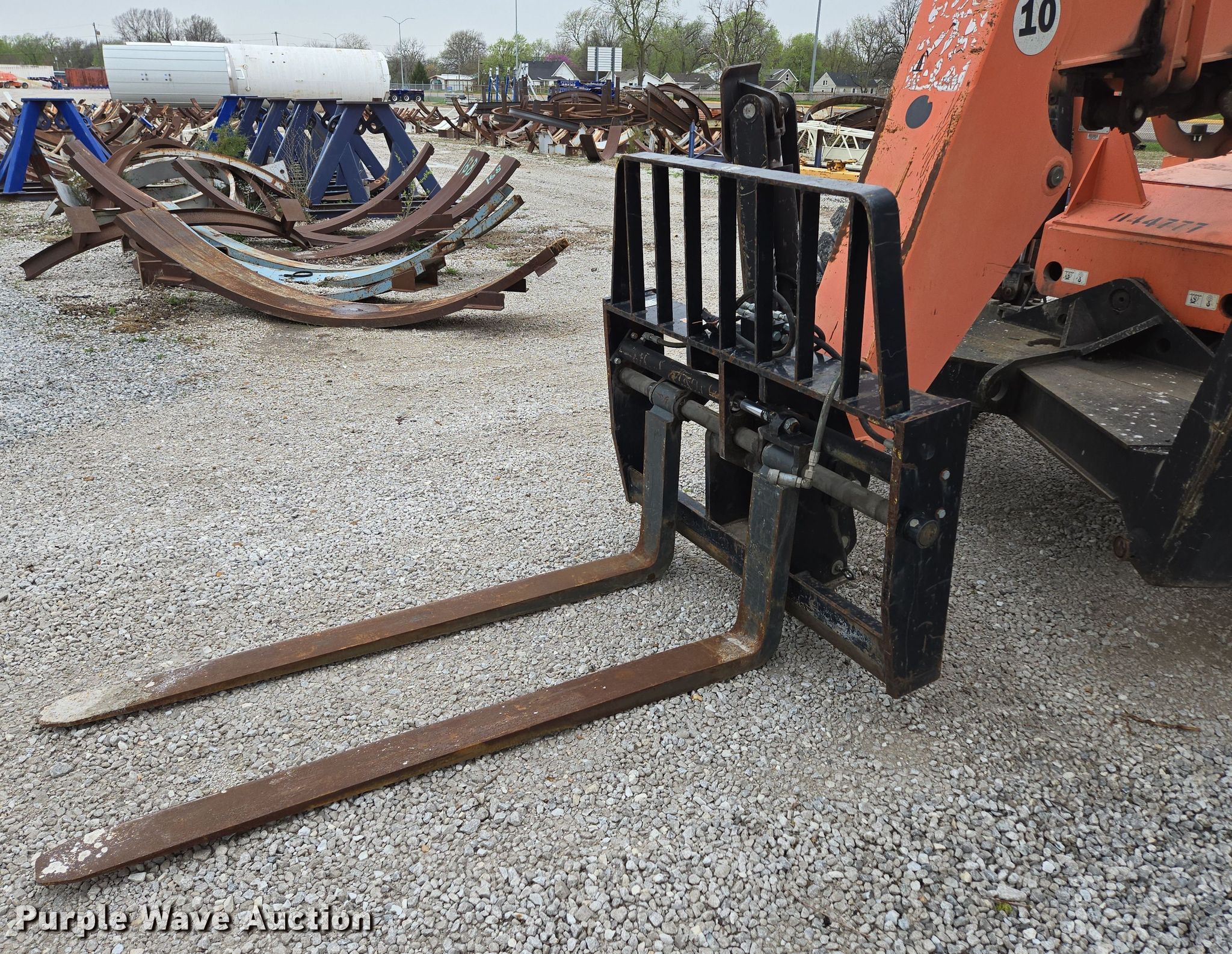 2009 Skytrak 10042 telehandler. Hours: 5,541 on meter, Serial: 0160038270, Unit #: 8261. Engine Cylinders: 4, Fuel type: Diesel. Transmission Powershift, Four wheel drive. Operators station Enclosed cab, Heat, Steering: Crab, Four wheel. Features Maximum lift capacity: 10,000 lbs, Maximum lift height: 42', Boom stages: 3, Side shift, Fork length: 72", Auxiliary hydraulics, Hydraulic outriggers, Hydraulic leveling, Quick attach: Manual. Tires Front: 17.5-25. Notes Dead battery, Windshield wiper issues, Hood latch issues, Oil leak, Left outrigger issues, raises slow. Paul Mueller Company. Springfield, MO 65802