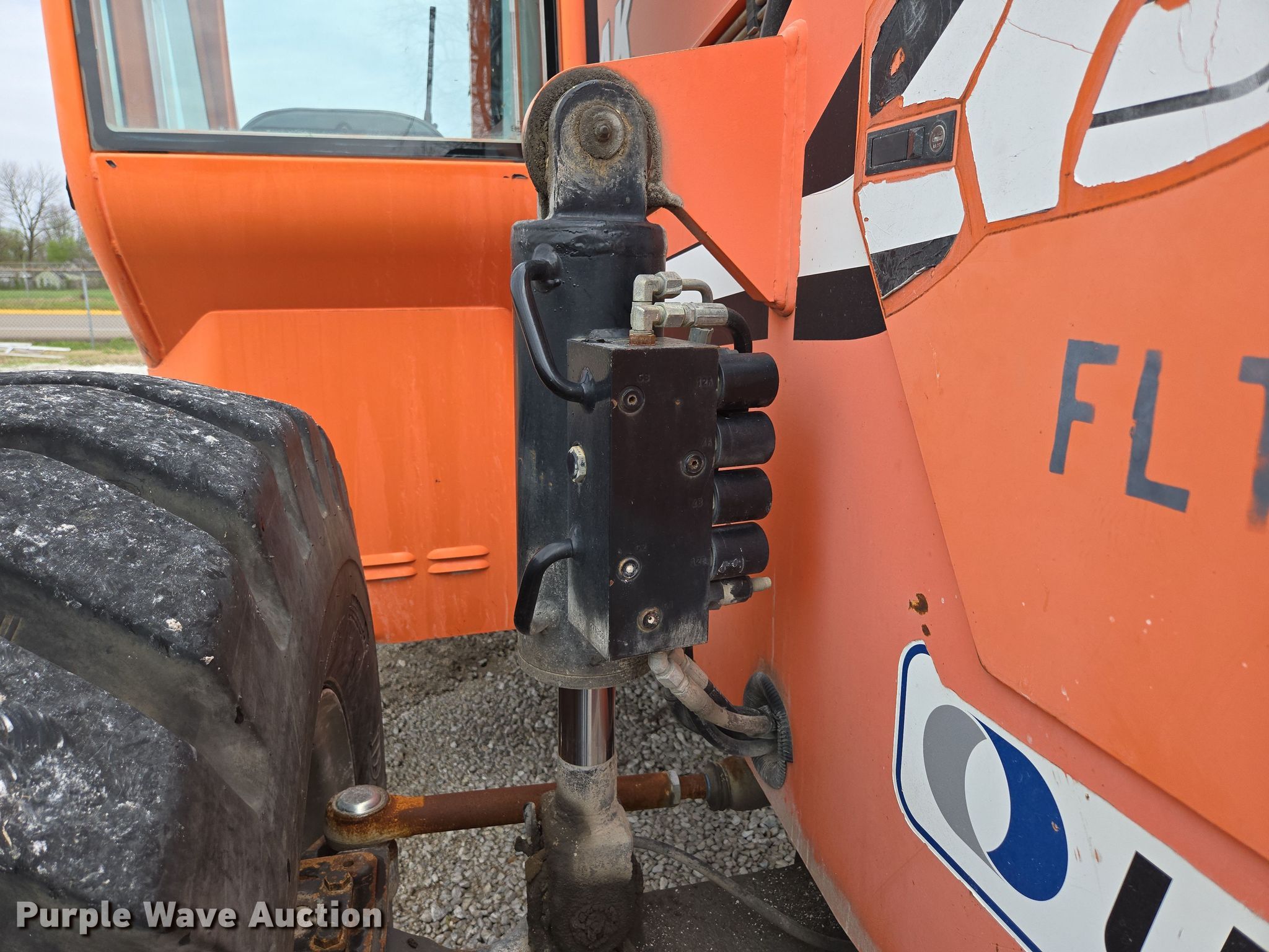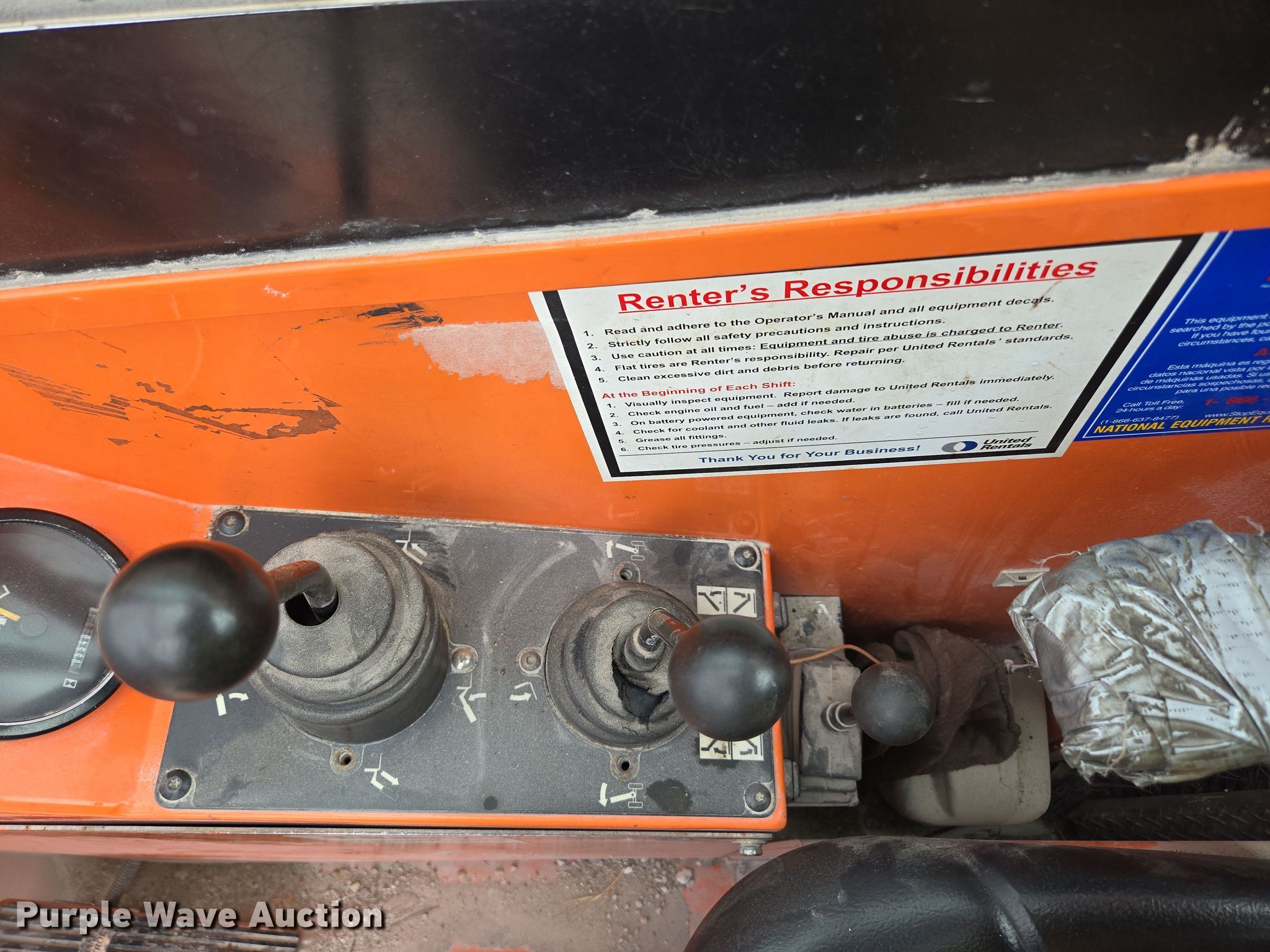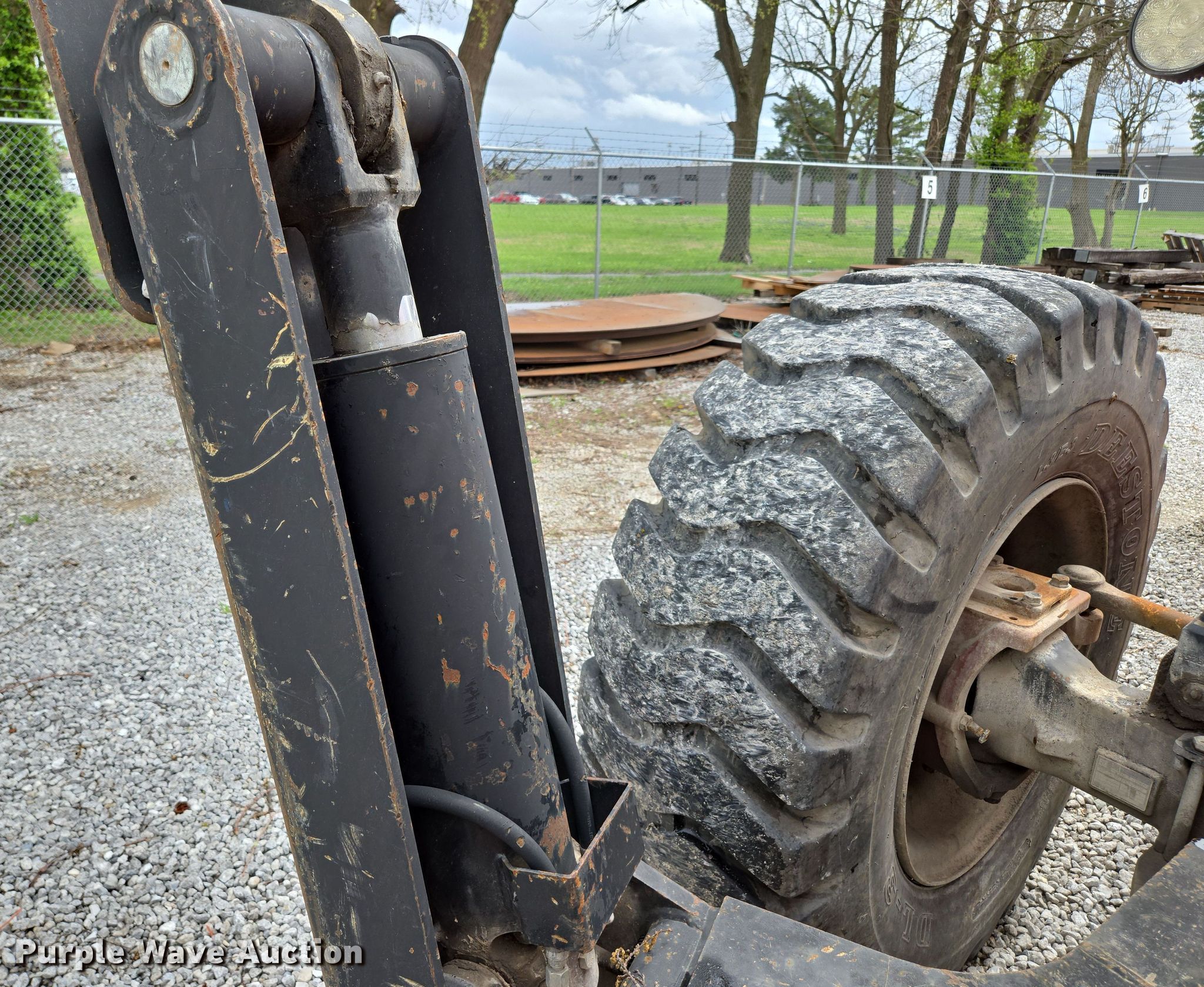 2009 Skytrak 10042 telehandler. Hours: 5,541 on meter, Serial: 0160038270, Unit #: 8261. Engine Cylinders: 4, Fuel type: Diesel. Transmission Powershift, Four wheel drive. Operators station Enclosed cab, Heat, Steering: Crab, Four wheel. Features Maximum lift capacity: 10,000 lbs, Maximum lift height: 42', Boom stages: 3, Side shift, Fork length: 72", Auxiliary hydraulics, Hydraulic outriggers, Hydraulic leveling, Quick attach: Manual. Tires Front: 17.5-25. Notes Dead battery, Windshield wiper issues, Hood latch issues, Oil leak, Left outrigger issues, raises slow. Paul Mueller Company. Springfield, MO 65802