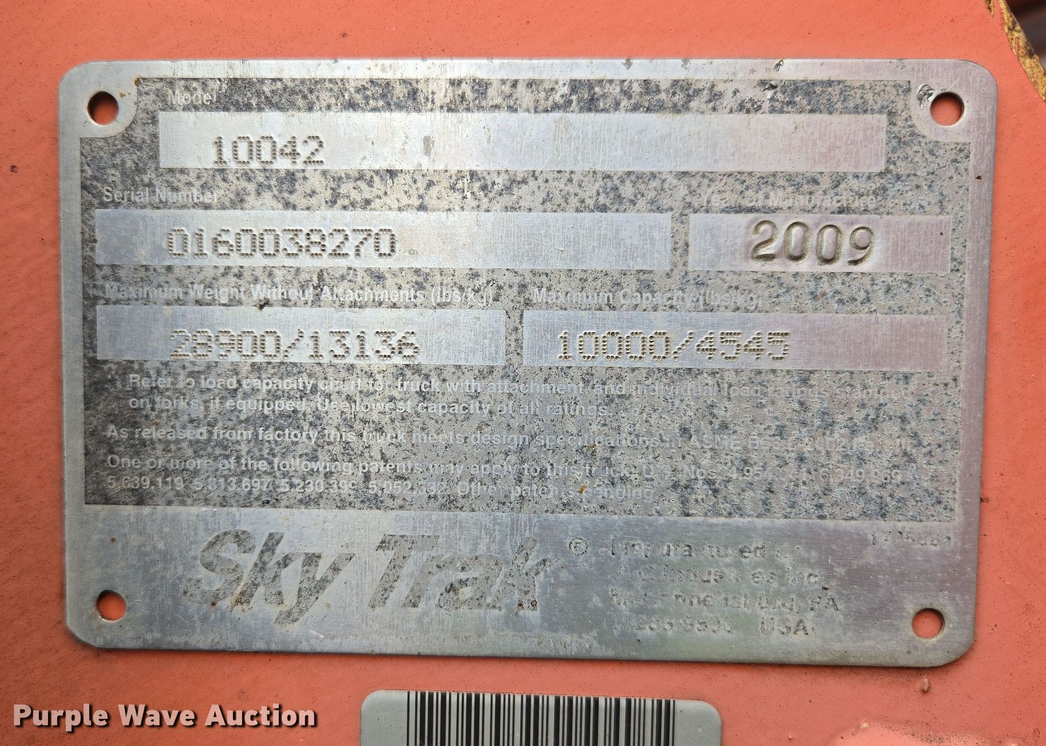 Purple Wave is selling a used Telehandler in Missouri. This item is a 2009 Skytrak 10042 telehandler with the following: Hours: 5,541 on meter, Serial: 0160038270, Unit #: 8261