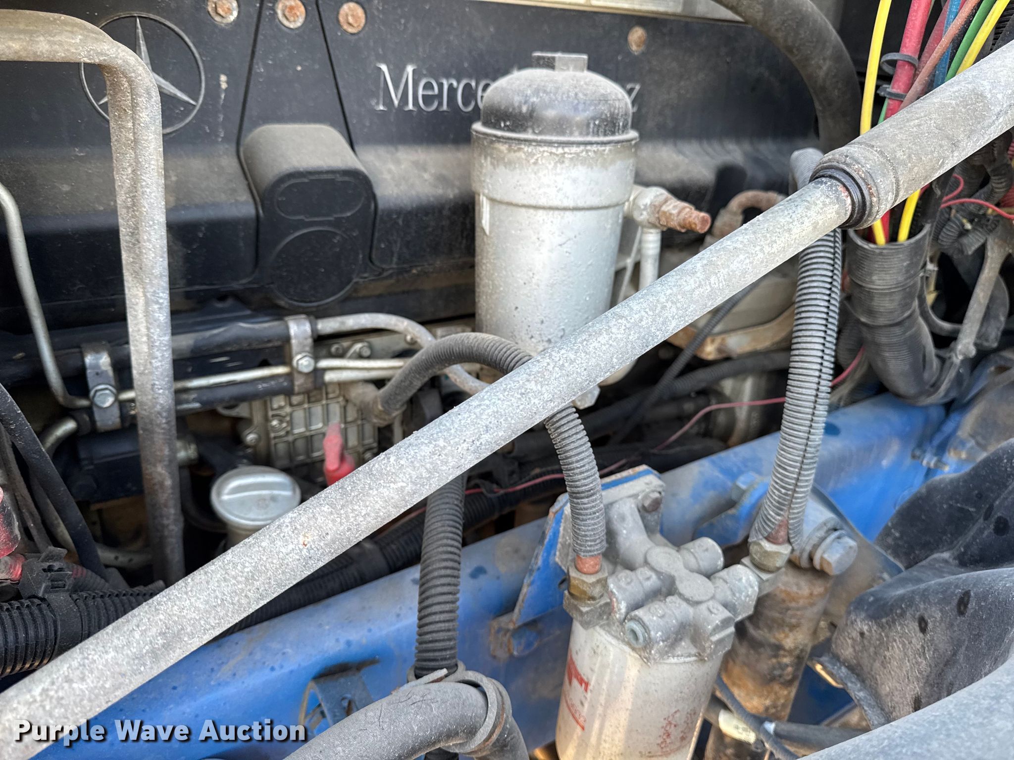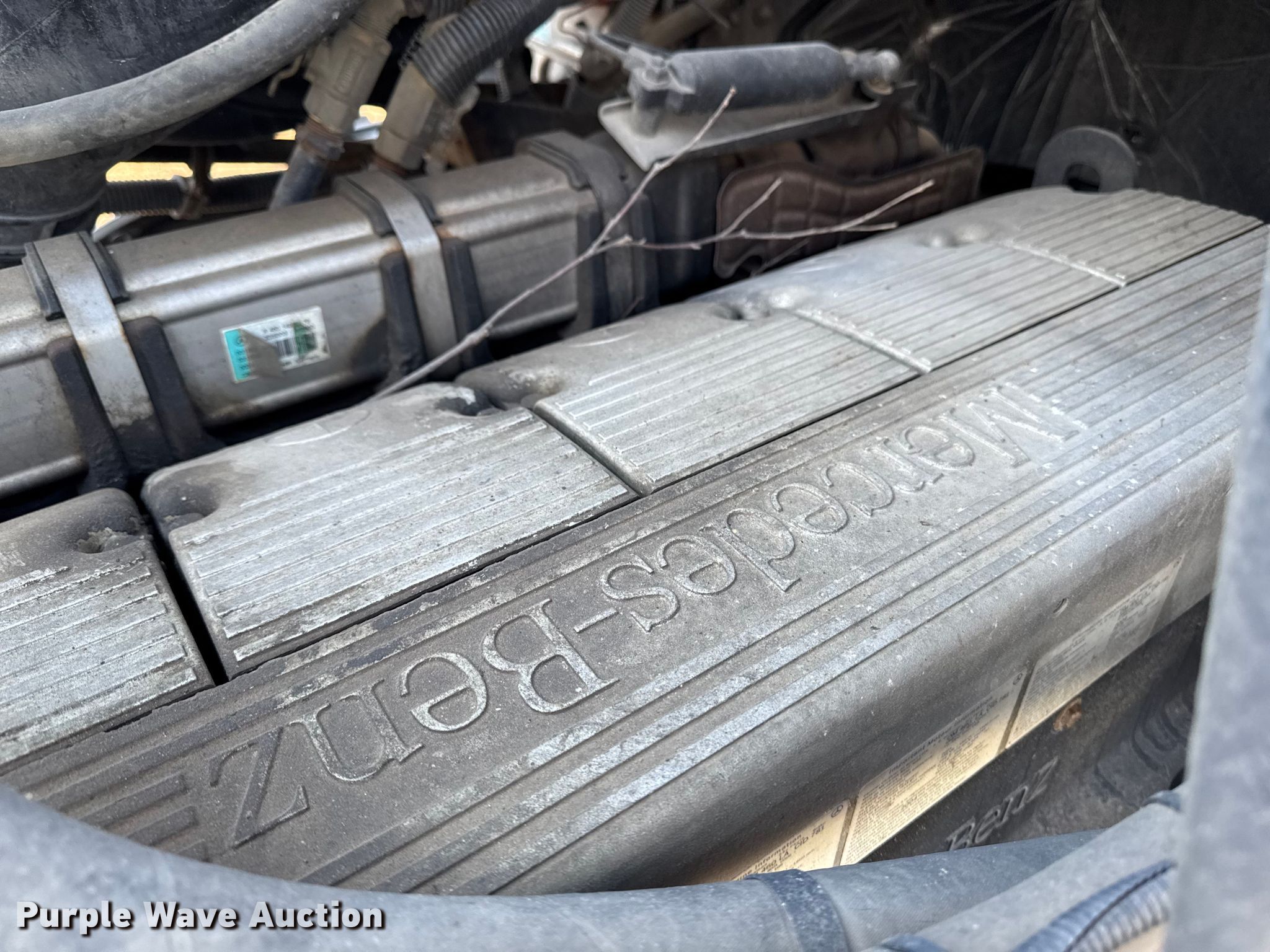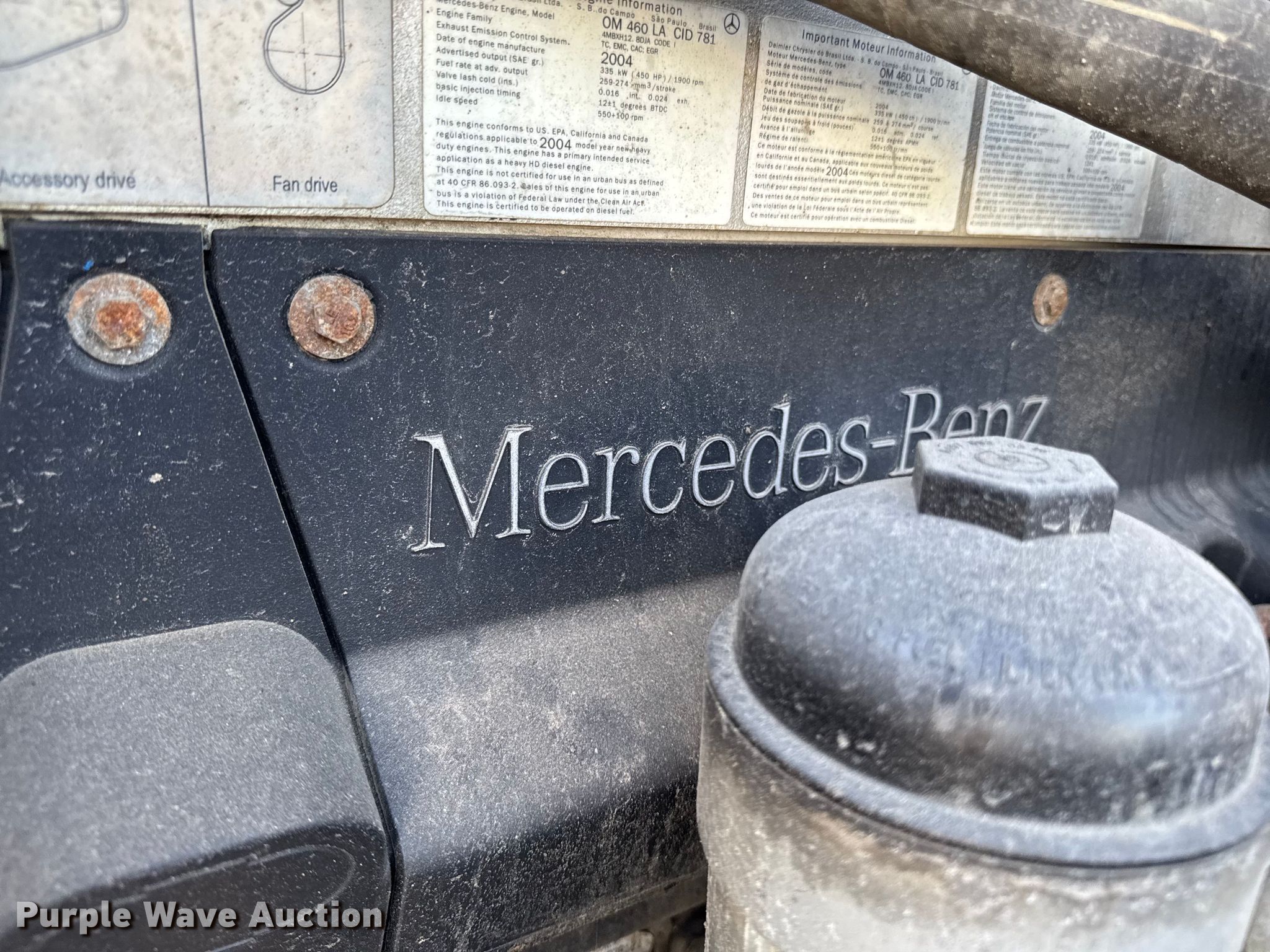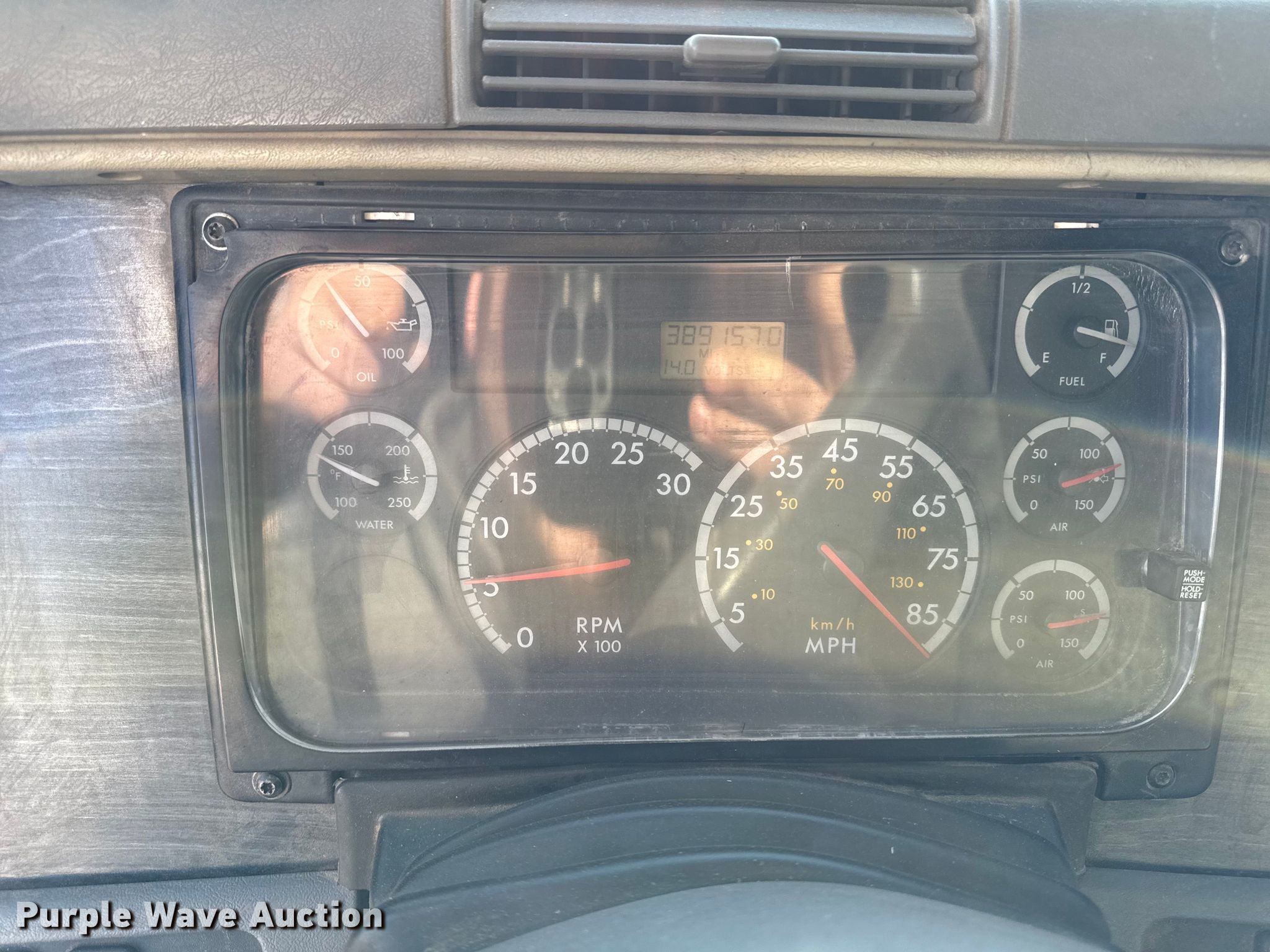 2005 Freightliner Columbia dump truck. Miles: 389,157 on odometer, Hours: 14,641 on meter, VIN: 1FUBA5CV05DN45957. Engine Mercedes Benz OM 460 LA, Displacement: 12.8L, Cylinders: 6, Fuel type: Diesel, HP: 450, Engine brake. Transmission Eaton fuller, Manual, Speed: 10. Chassis Double frame, Axles: 4, Pusher axle Steerable, Differential lock: Full, Suspension: Air, Spring over walking beam, Brakes: Air, PTO. Interior AC, Heat, Heated mirrors, Power windows, Cruise control. Features Dump bed 19' L x 96" W, Side height: 44", Side board height: 10", Bed type: Steel, Roll tarp, Ram: Single, End gate: Air operated. Tires Front: 425/65R22.5, Rear: 295/75R22.5, Lift axle: 255/70R22.5. Notes Dead battery, Unknown operating condition of roll tarp, Transmission issues, slips out of fourth and ninth gear. Illinois title. Mechanical Service Inc.. Galesburg, IL 61401