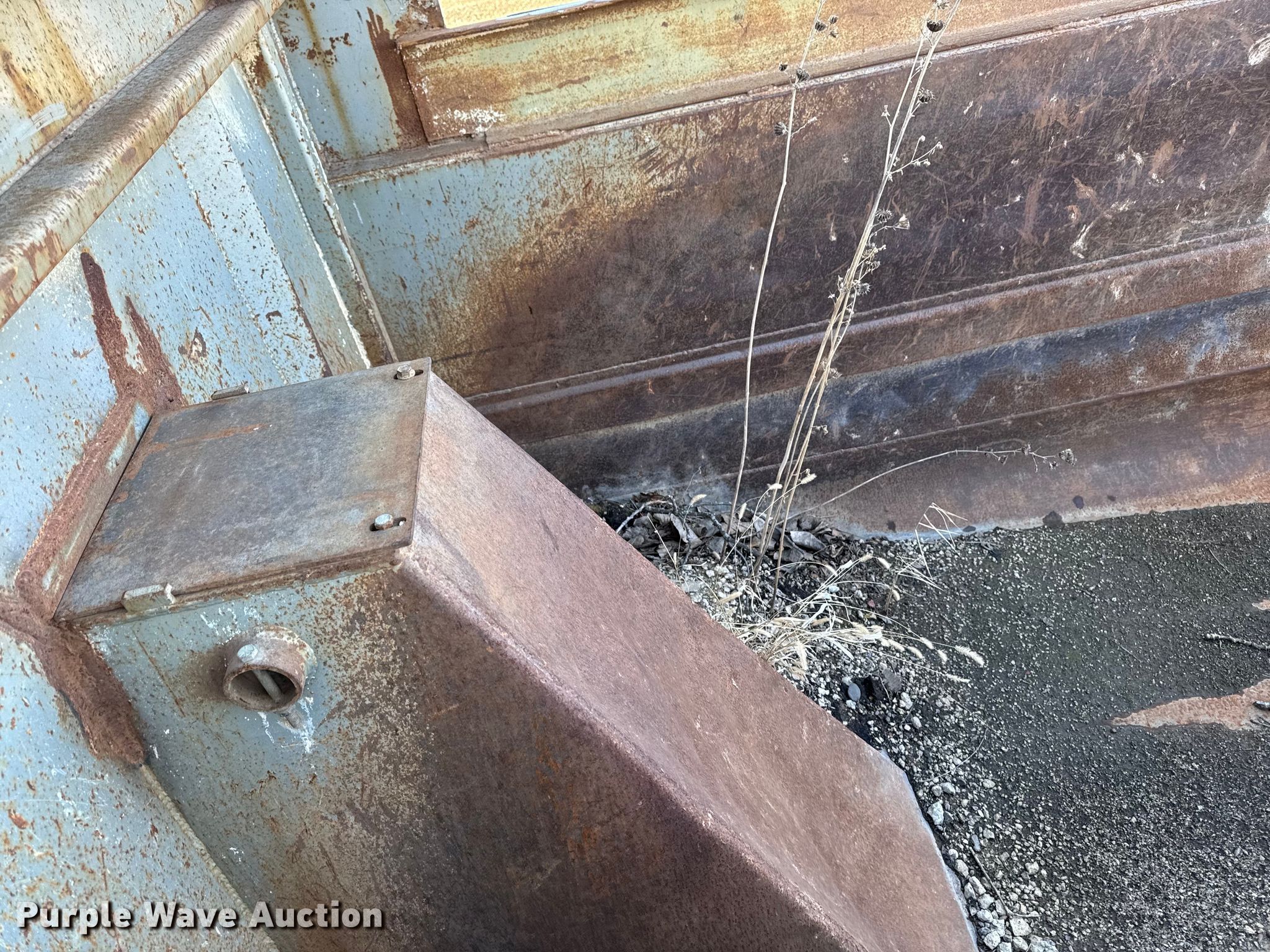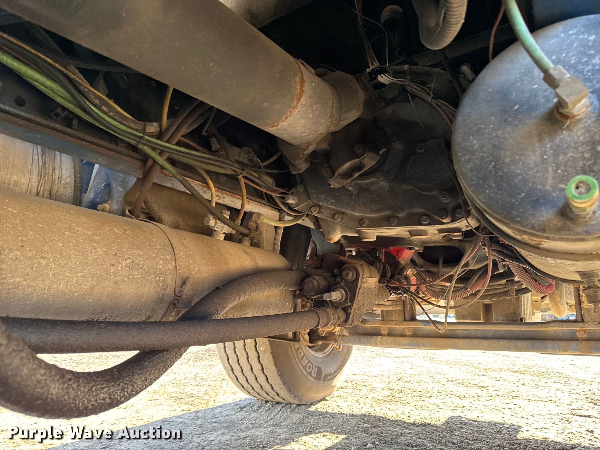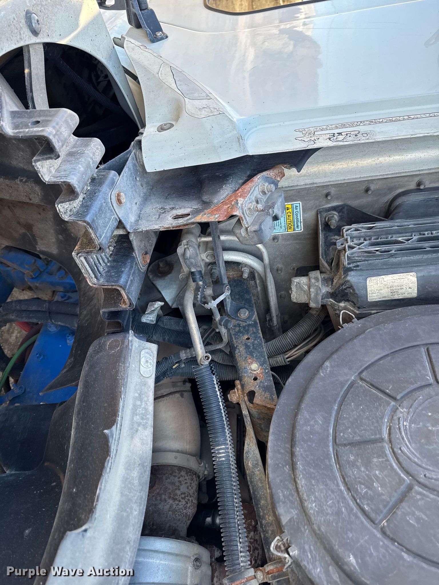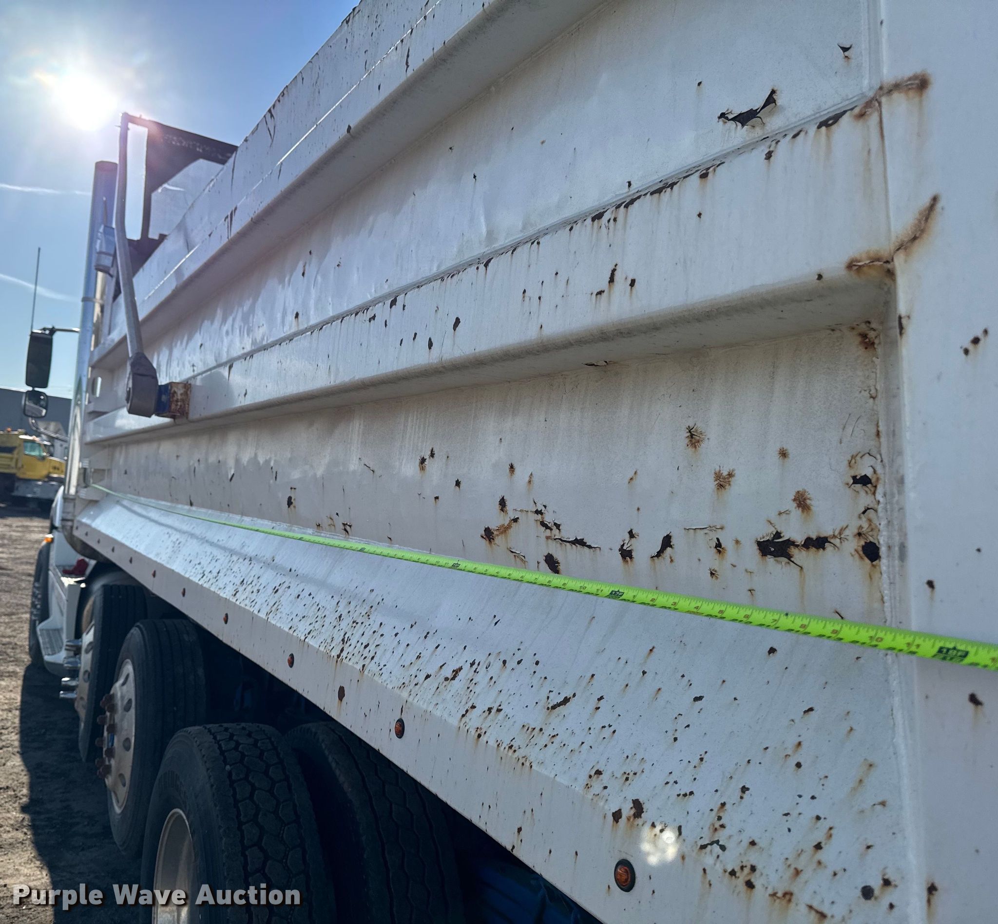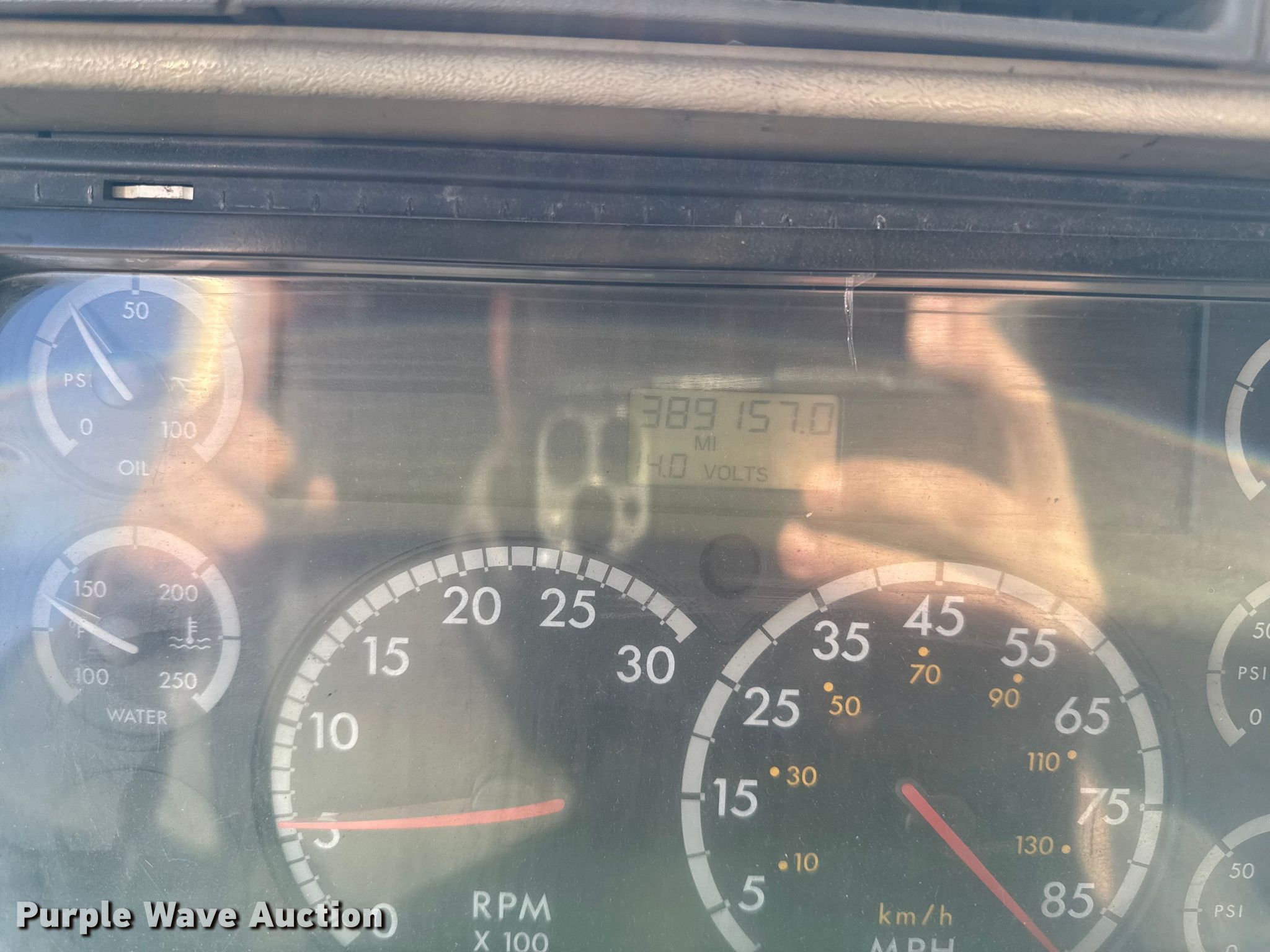 2005 Freightliner Columbia dump truck. Miles: 389,157 on odometer, Hours: 14,641 on meter, VIN: 1FUBA5CV05DN45957. Engine Mercedes Benz OM 460 LA, Displacement: 12.8L, Cylinders: 6, Fuel type: Diesel, HP: 450, Engine brake. Transmission Eaton fuller, Manual, Speed: 10. Chassis Double frame, Axles: 4, Pusher axle Steerable, Differential lock: Full, Suspension: Air, Spring over walking beam, Brakes: Air, PTO. Interior AC, Heat, Heated mirrors, Power windows, Cruise control. Features Dump bed 19' L x 96" W, Side height: 44", Side board height: 10", Bed type: Steel, Roll tarp, Ram: Single, End gate: Air operated. Tires Front: 425/65R22.5, Rear: 295/75R22.5, Lift axle: 255/70R22.5. Notes Dead battery, Unknown operating condition of roll tarp, Transmission issues, slips out of fourth and ninth gear. Illinois title. Mechanical Service Inc.. Galesburg, IL 61401