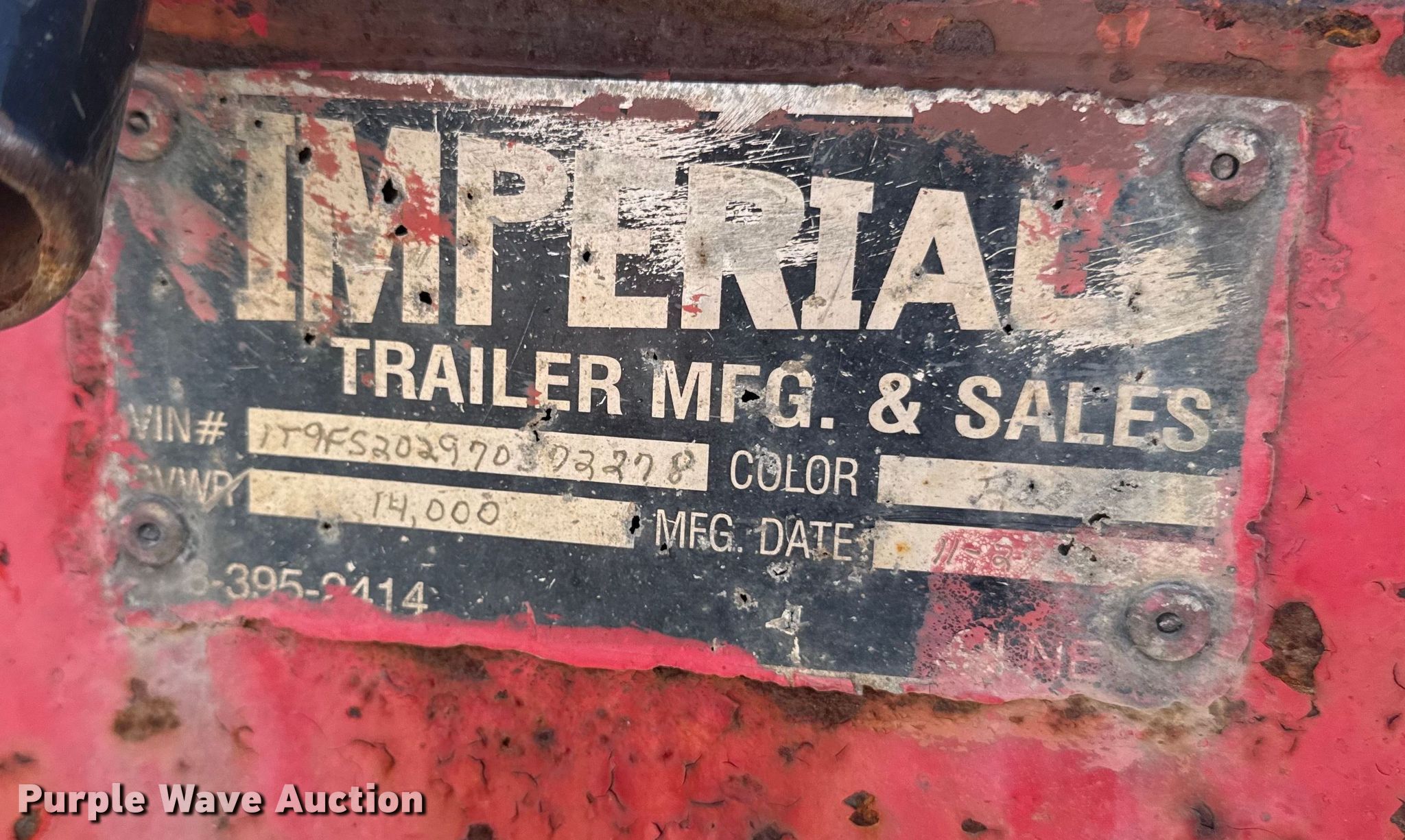 2007 Imperial tilt deck equipment trailer. VIN: 1T9F5202970372278. Dimensions Overall: 25' L x 84" W, Deck: 21' 8" L x 80" W. Features Deck type: Steel, Winch Capacity: 8,000 lbs, Hydraulic controls: Remote control. Chassis Ball hitch: 2 5/16", Landing gear: Single, Suspension: Walking beam, Brakes: Electric, Axles: Tandem, GVWR: 14,000 lbs. Tires Steel wheels, Size: 235/85R16. Notes Unknown operating condition. Illinois title. Mechanical Service Inc.. Galesburg, IL 61401