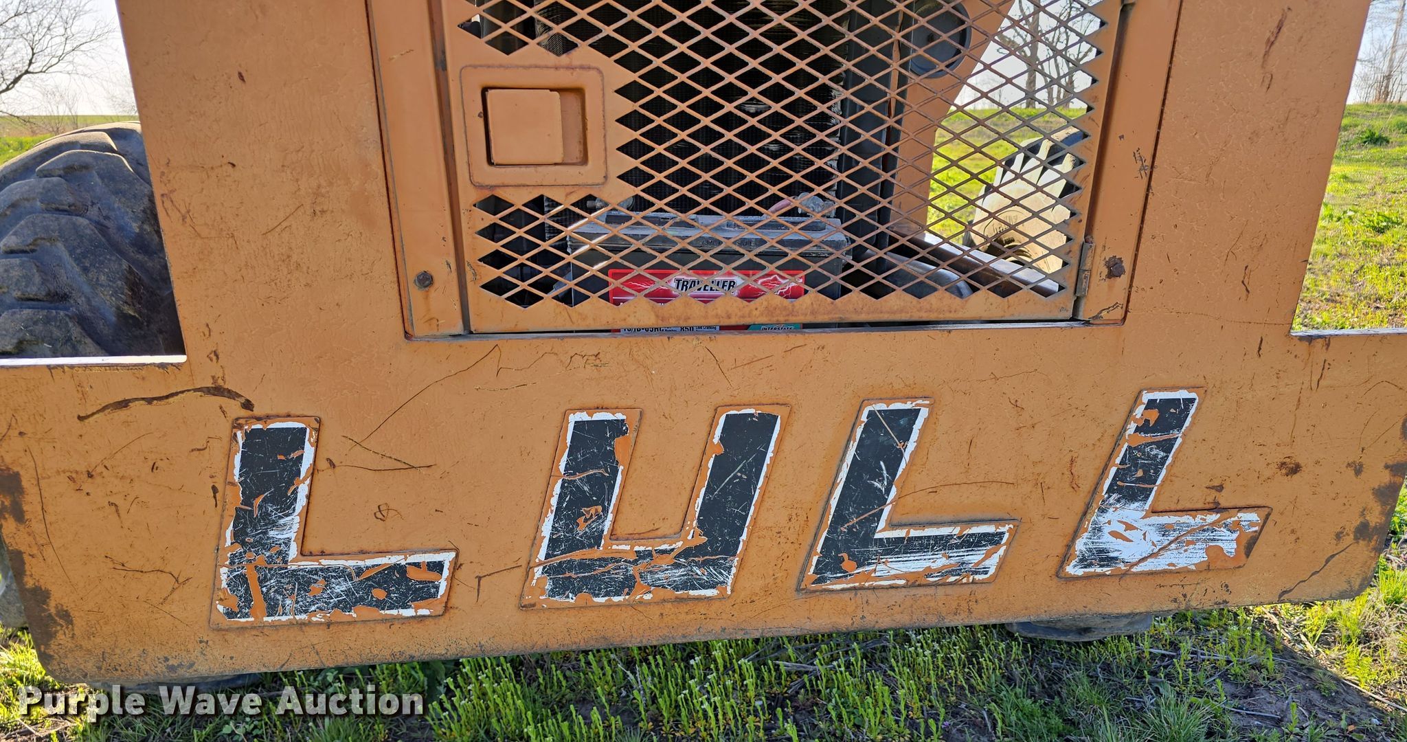 1996 Lull 6K-37 telehandler. Hours: 3,296 on meter Actual hours unknown, Serial: MAY96X12N21-242-BRB. Engine John Deere 4039DF001, Serial: T04039D543857, Cylinders: 4, Fuel type: Diesel. Transmission Powershift, 4F - 4R, Four wheel drive. Operators station Canopy, Steering: Crab, Four wheel. Features Fork length: 41.75", Hydraulic leveling. Tires Size: 13.00-24. Notes Non-operational hour meter, Non-operational instrument cluster, Hydraulic issues, hose leak. Sterup Constructon LLC.. Tecumseh, NE 68450