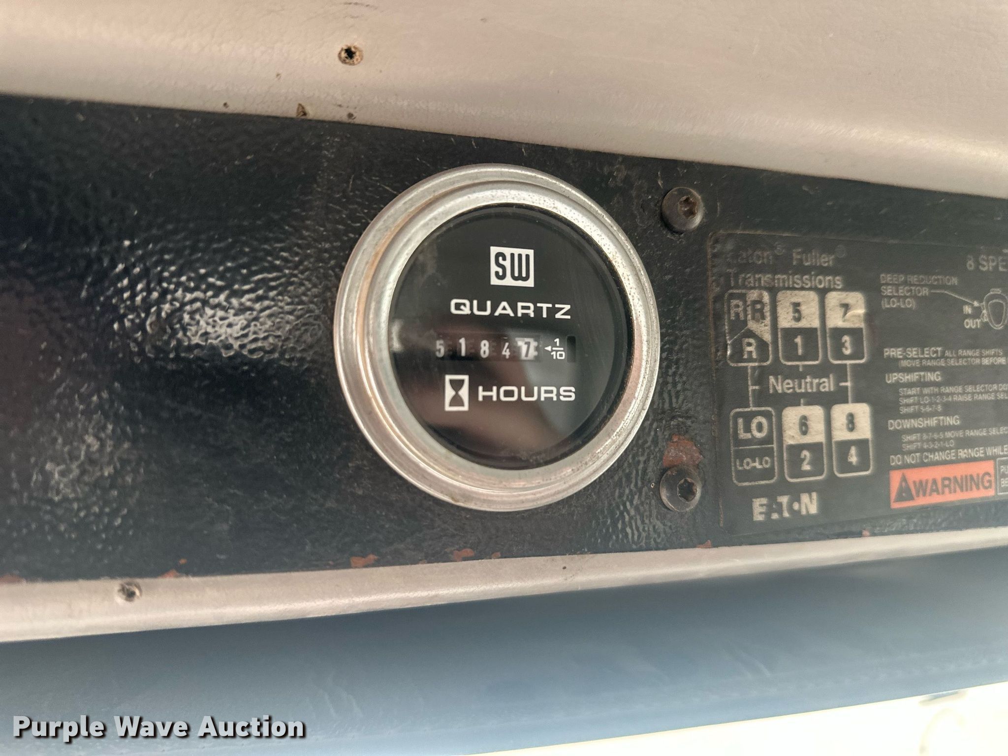 1999 Freightliner FL112 dump truck. Miles: 255,203 on odometer, Hours: 5,185 on meter, VIN: 1FVXTWEB2XHA34785. Engine Caterpillar C12, Displacement: 12L, Cylinders: 6, Fuel type: Diesel. Transmission Eaton fuller, Manual, Speed: 8. Chassis Axles: Triple, Pusher axle, Differential lock: Inter-axle, Suspension: Spring over walking beam, Brakes: Air, PTO, GVWR: 54,000 lbs. Interior AC, Heat, Power windows, Cruise control. Features Dump bed 17' L x 94" W, Side height: 50", Bed type: Steel, Ram: Single, End gate: Manual. Tires Front: 425/65R22.5, Rear: 11R24.5, Lift axle: 295/75R22.5. Notes Windshield chipped or cracked. South Dakota title. Title distribution may be delayed up to 14 days from verification of funds. Morris Inc.. Fort Pierre, SD 57532