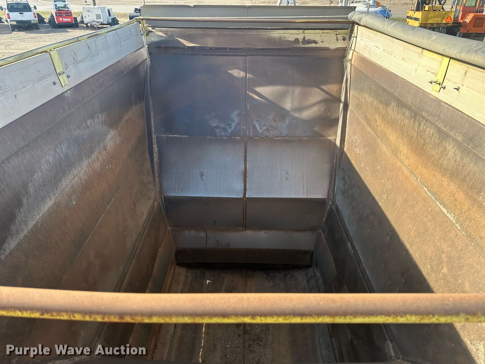 1997 Ranch Manufacturing Co bottom dump trailer. VIN: 1R9BS6205VL008213. Dimensions Overall: 32', Body: 18' 7" L x 102" W, Side height: 7' 8". Features Body type: Steel, Clamshell gate: Air operated, Trailer controls, Roll tarp. Chassis Hitch: Pintle, Landing gear: Single, Suspension: Spring, Brakes: Air, Axles: Quad, GVWR: 60,000 lbs. Tires Steel wheels. South Dakota title. Title distribution may be delayed up to 14 days from verification of funds. Morris Inc.. Fort Pierre, SD 57532