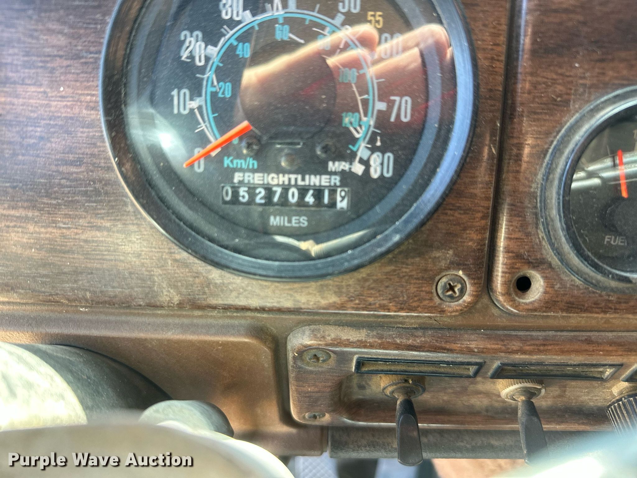 1986 Freightliner FLT semi truck. Miles: 527,042 on odometer, VIN: 1FUEYCYB1GP278339. Engine Cummins, Displacement: 14.0L, Cylinders: 6, Fuel type: Diesel. Transmission Eaton Fuller Roadranger, Manual, Speed: 13. Chassis Axles: Tandem, Differential lock: Inter-axle, Suspension: Air, Spring, Brakes: Air, PTO, Wet kit, GVWR: 50,000 lbs. Interior AC, Heat, Air ride cab, Sleeper Sleeper length: 2' 9", Beds: Single. Features Deck plate: Aluminum, Fifth wheel type: Air operated, Sliding, Fuel tank: Dual. Tires Size: 11R22.5. Notes Trailer not included, Windshield chipped or cracked. South Dakota title. Title distribution may be delayed up to 14 days from verification of funds. Venner Farm. Fort Pierre, SD 57532