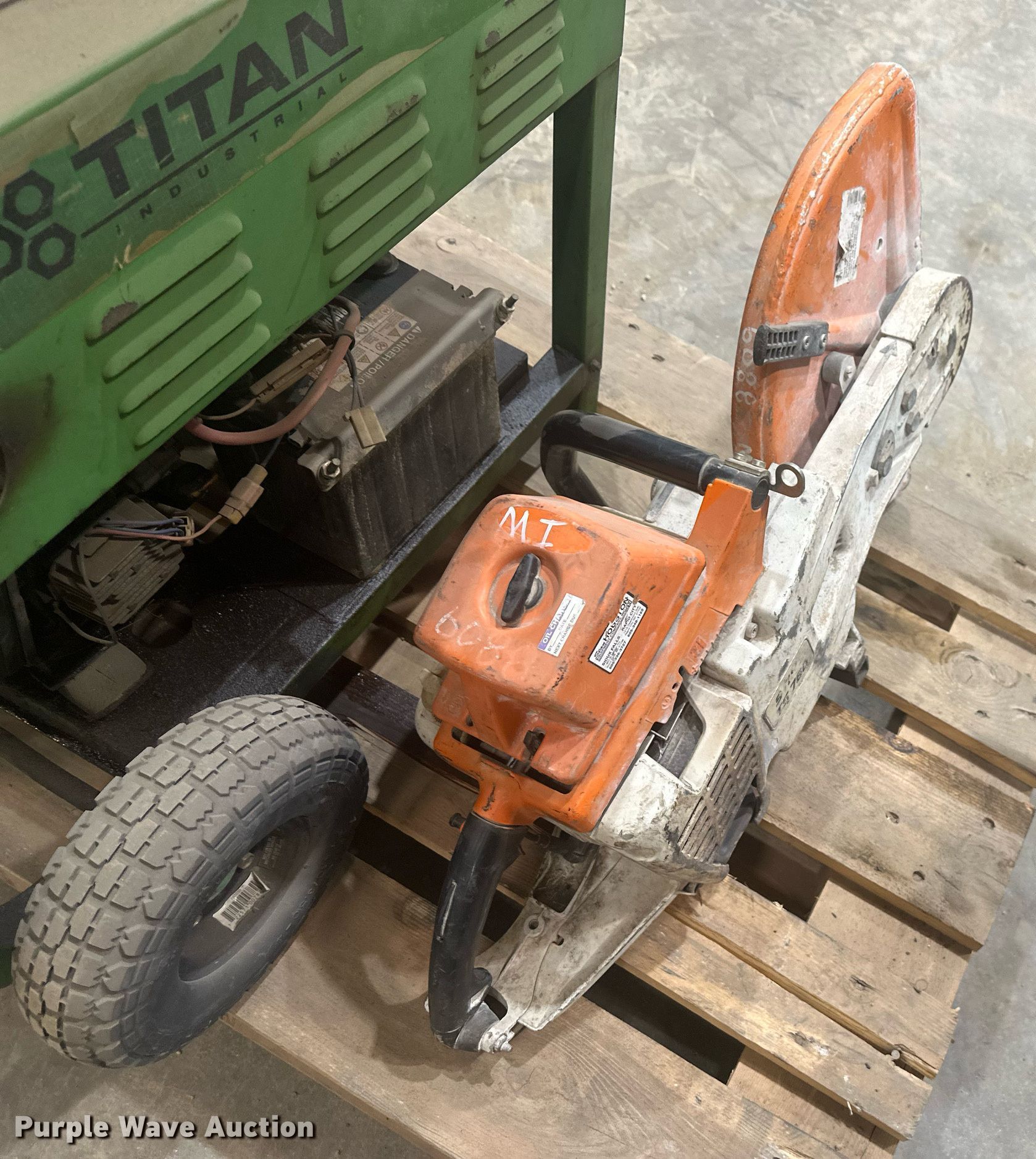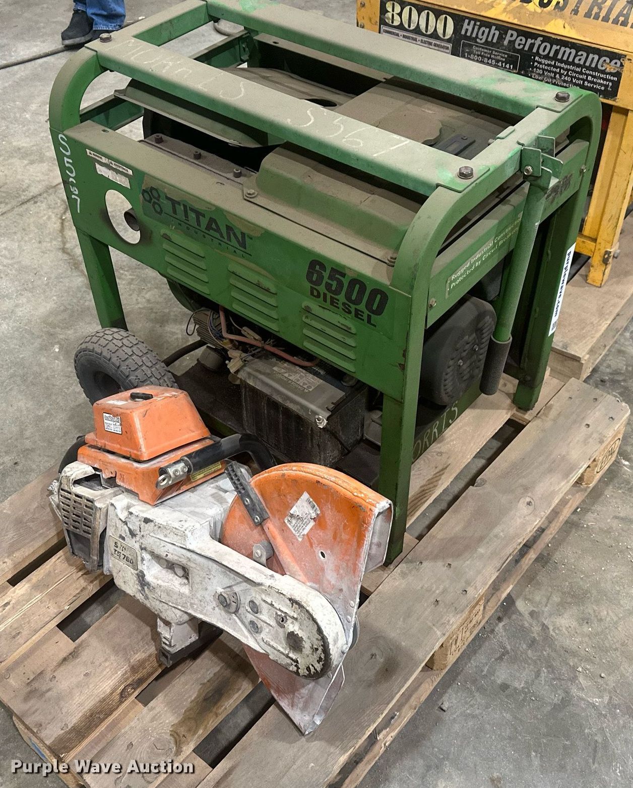 Titan Industrial 6500 generator. Fuel type: Diesel, Cylinders: 1. Stihl TS 760 concrete saw Blade missing, Unknown operating condition. Morris Inc.. Fort Pierre, SD 57532