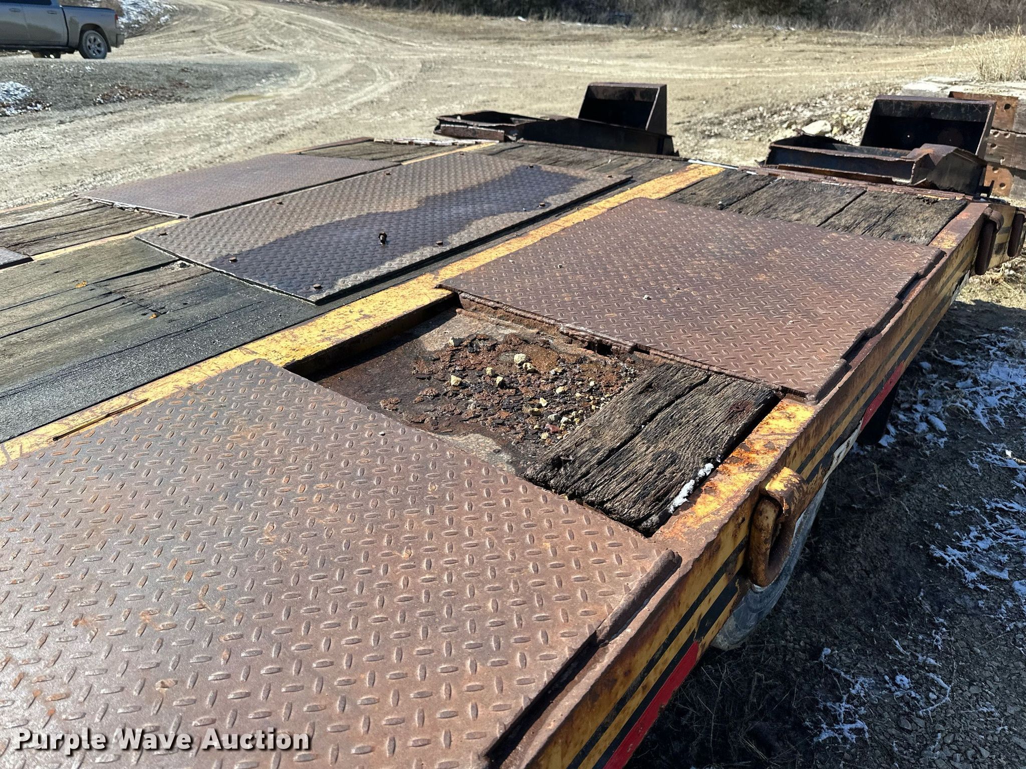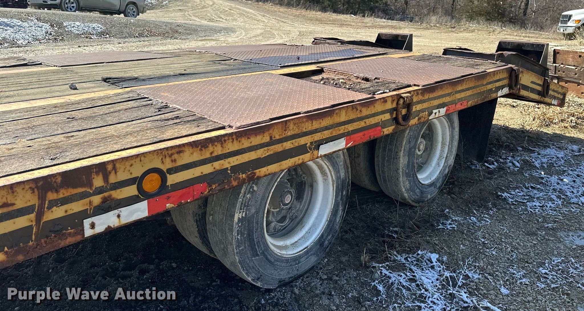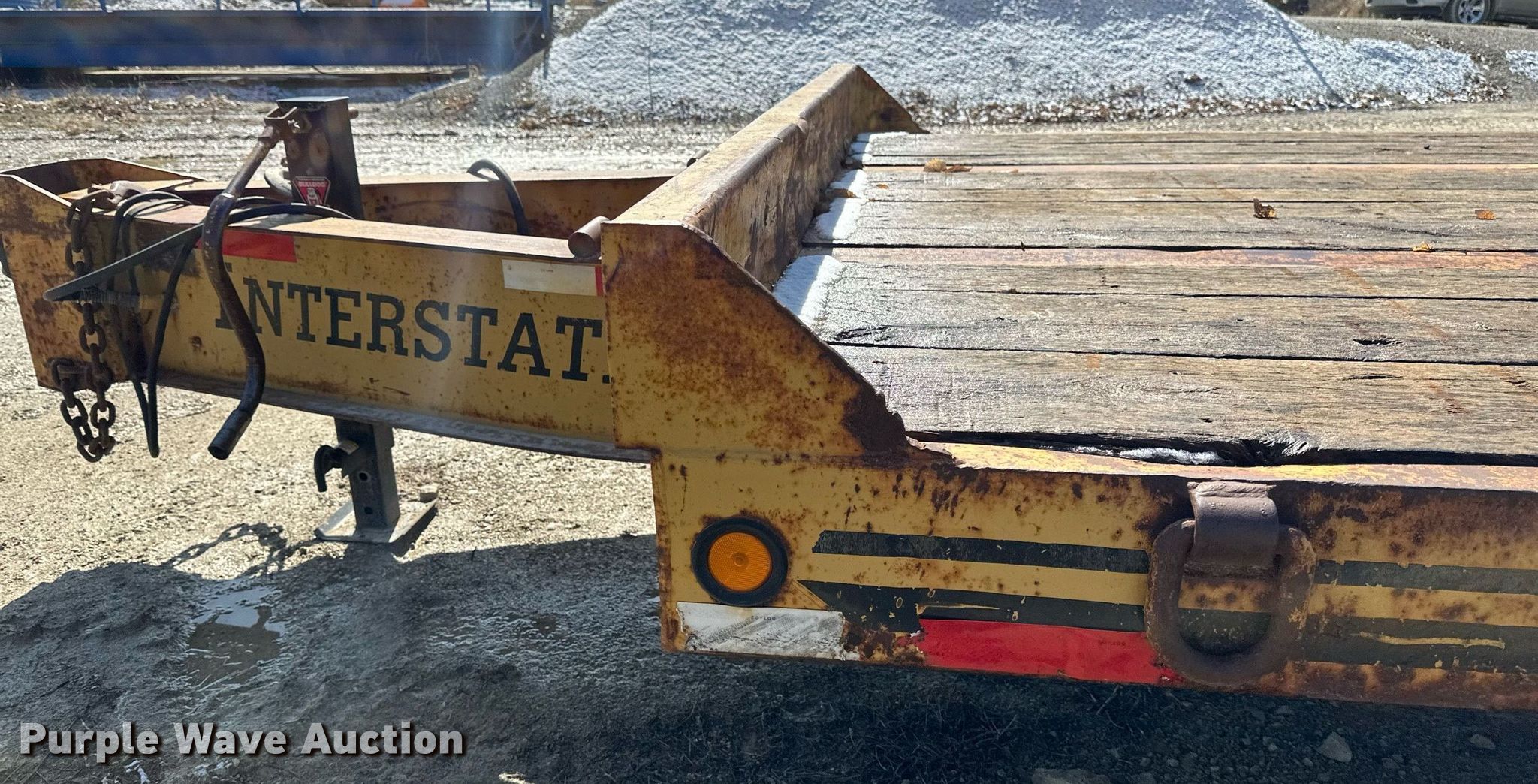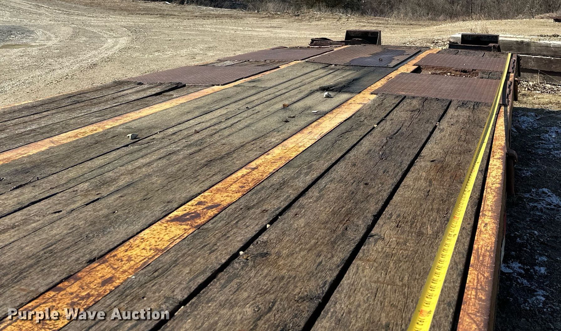 1991 Interstate equipment trailer. VIN: 1JKDLV307MA602558. Dimensions Overall: 30' 1" L x 102" W, Deck: 19' 1" L x 102" W, Deck height: 3', Tail length: 5' 1", Ramps: Manual Length: 4' 7". Features Deck type: Steel, Wood. Chassis Hitch: Pintle, Landing gear: Single, Suspension: Spring, Brakes: Air, Axles: Tandem. Tires Steel wheels, Size: 215/75R17.5. Minnesota title. Title distribution may be delayed up to 14 days from verification of funds. Orval Sorum & Sons. Lanesboro, MN 55949