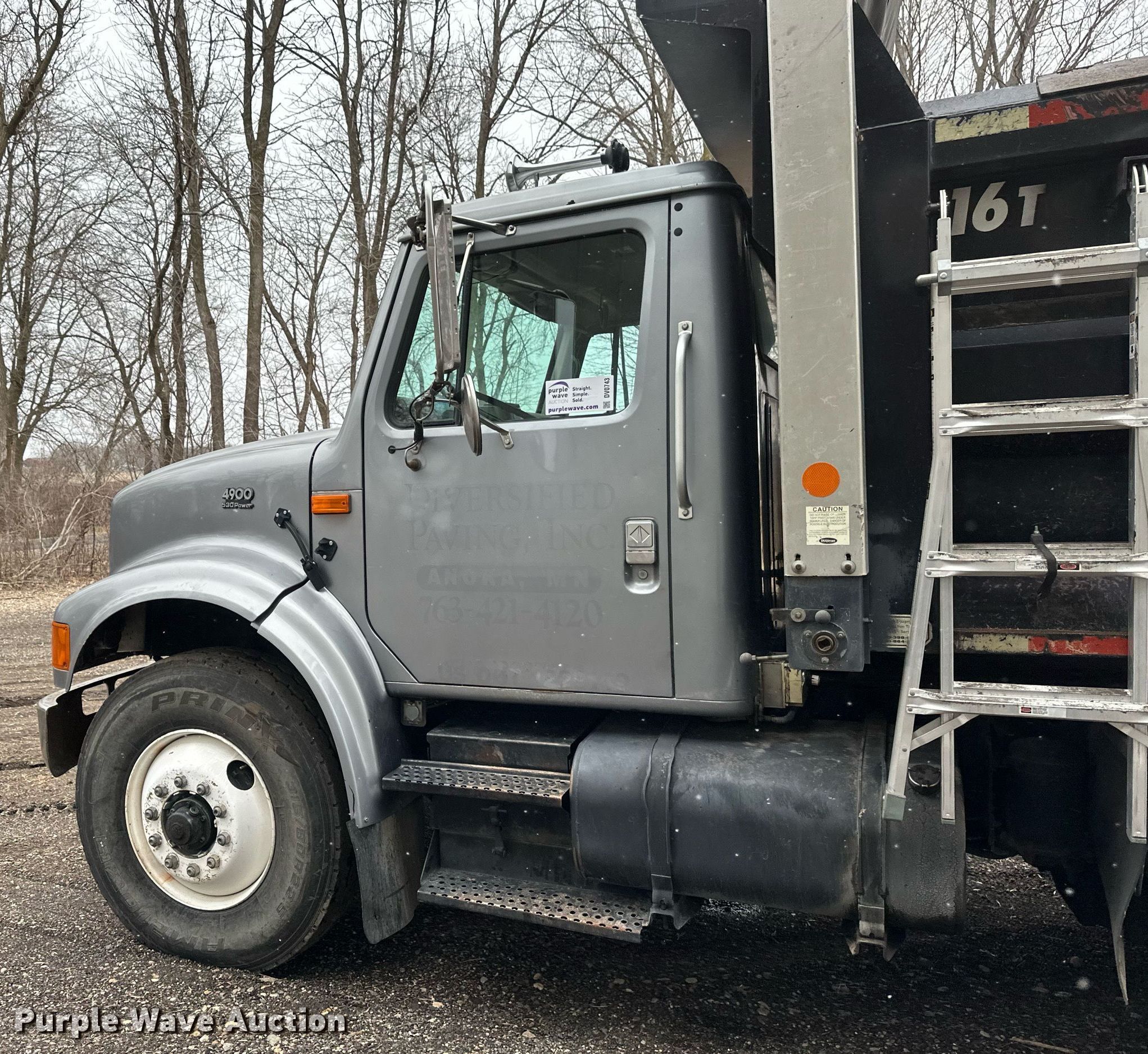 Purple Wave is selling a used Construction Dump Truck in Minnesota. This item is a 2001 International F-4900 dump truck with the following: Miles: 265,196 on odometer, Hours: 14,956 on meter, VIN: 1HTSHADTX1H378408