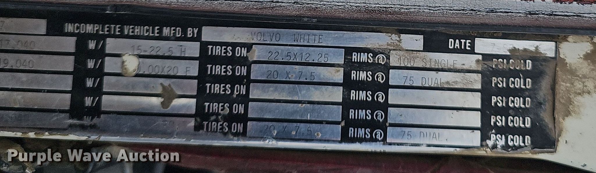 1987 Autocar ready mix truck. Miles: 295,719 on odometer, Hours: 19,588 on meter, VIN: 1WBPCCMD2HU304635. Engine Displacement: 8.9L, Cylinders: 6, Fuel type: Diesel. Transmission Eaton Fuller RTOF14909MLL, Manual. Chassis Double frame, Axles: Triple, Tag axle, Differential lock: Inter-axle, Suspension: Spring over walking beam, Brakes: Air, Front mount PTO, GVWR: 68,120 lbs FAWR: 17,040 lbs, IAWR: 19,040 lbs, RAWR: 19,040 lbs, Wheelbase: 248". Interior Heat. Features Mixer McNeilus, Capacity: 10 cu.yd., Discharge: Rear, Rear drum controls, Water tank capacity: 150 gallons, Chute Extensions: 3, Chute type: Steel.. Tires Front: 425/65R22.5, Rear: 11R22.5, Lift axle: 11R22.5. Notes Windshield chipped or cracked, Unknown operating condition of tag axle, Possible engine issues, fuel leak. Nebraska title. Title distribution may be delayed up to 14 days from verification of funds. Lottman Conveying, LLC. Diller, NE 68342