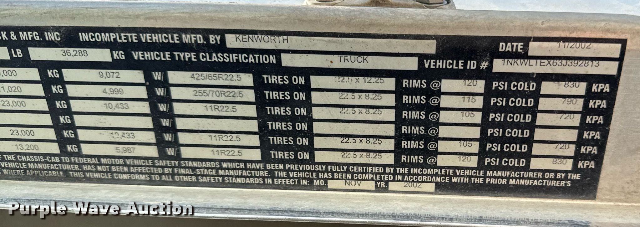 Purple Wave is selling a used Ready Mix or Pump Truck in Kansas. This item is a 2003 Kenworth W900 ready mix truck with the following: Miles: 192,927 on odometer, Hours: 927 on meter, VIN: 1NKWLTEX63J392813
