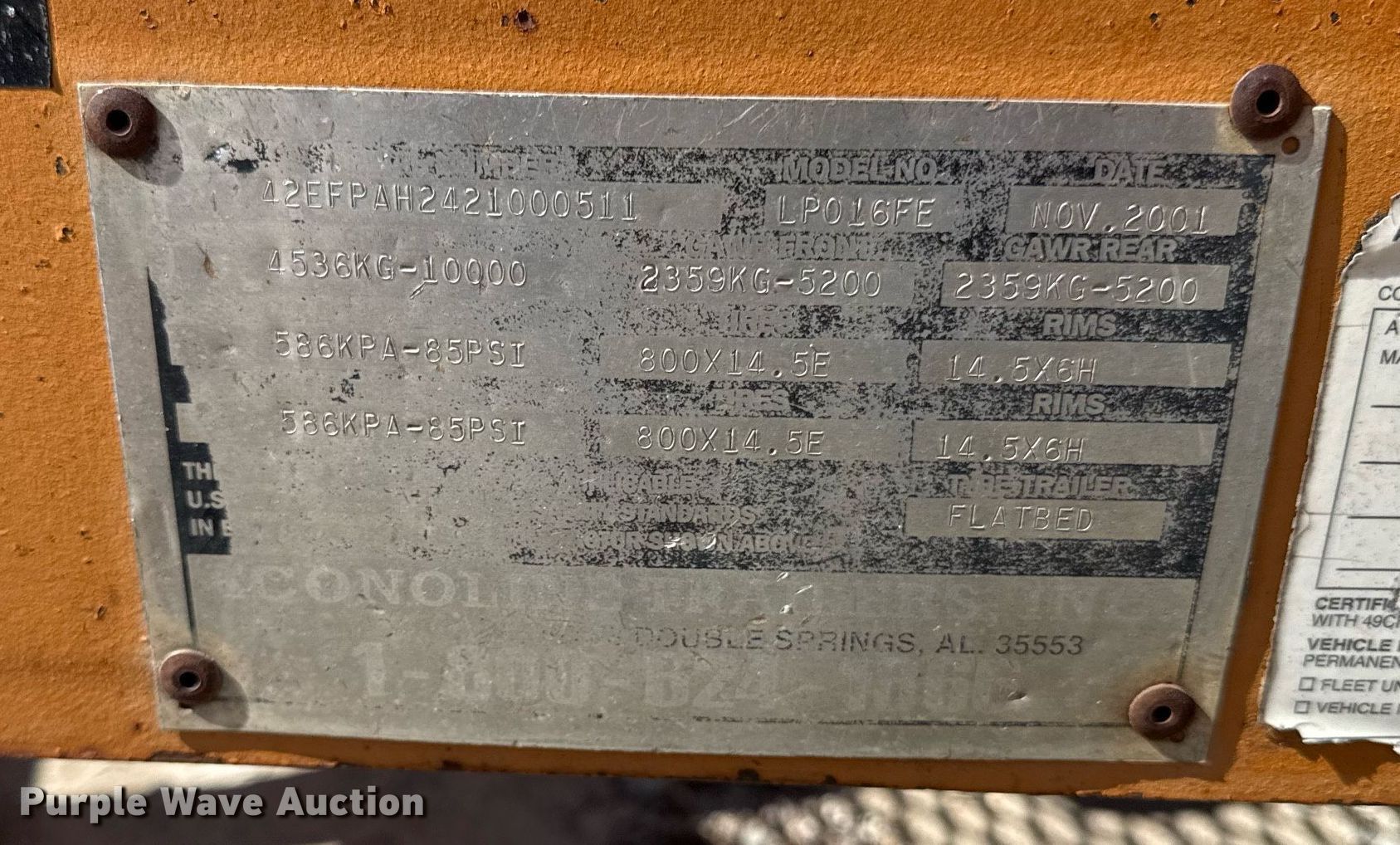Purple Wave is selling a used Equip. Trailer in Kansas. This item is a 2002 Econoline LP016FE equipment trailer with the following: VIN: 42EFPAH2421000511