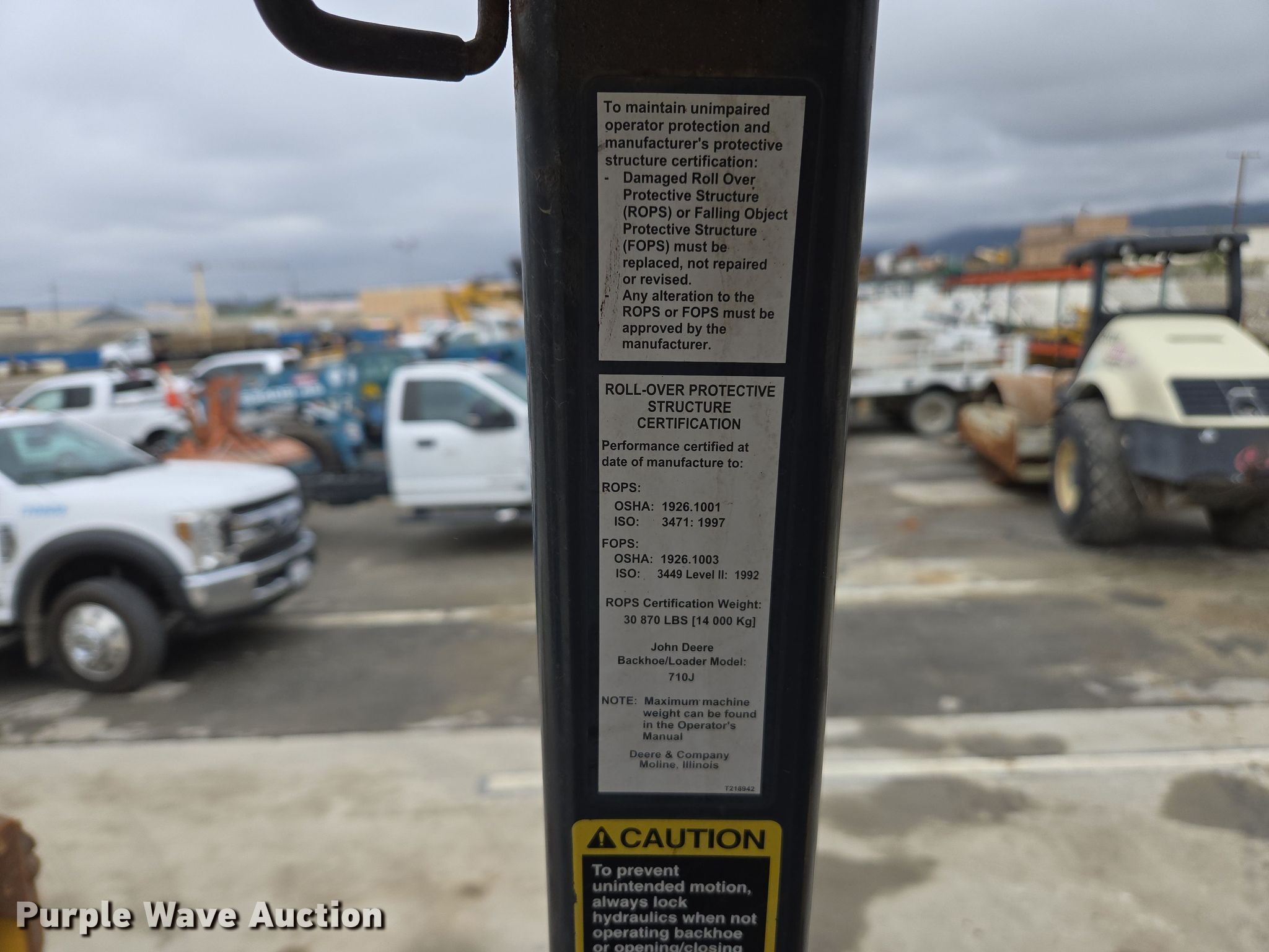 Purple Wave is selling a used Tractor Loader Backhoe in California. This item is a 2011 John Deere 710J backhoe with the following: Hours: 9,792 on meter, Serial: 1T0710JXKBD210597