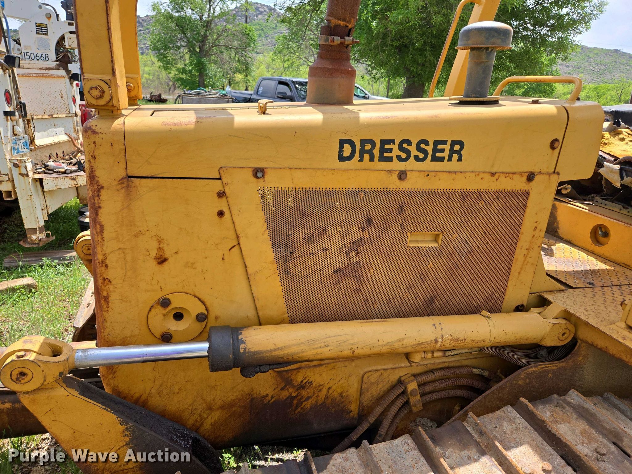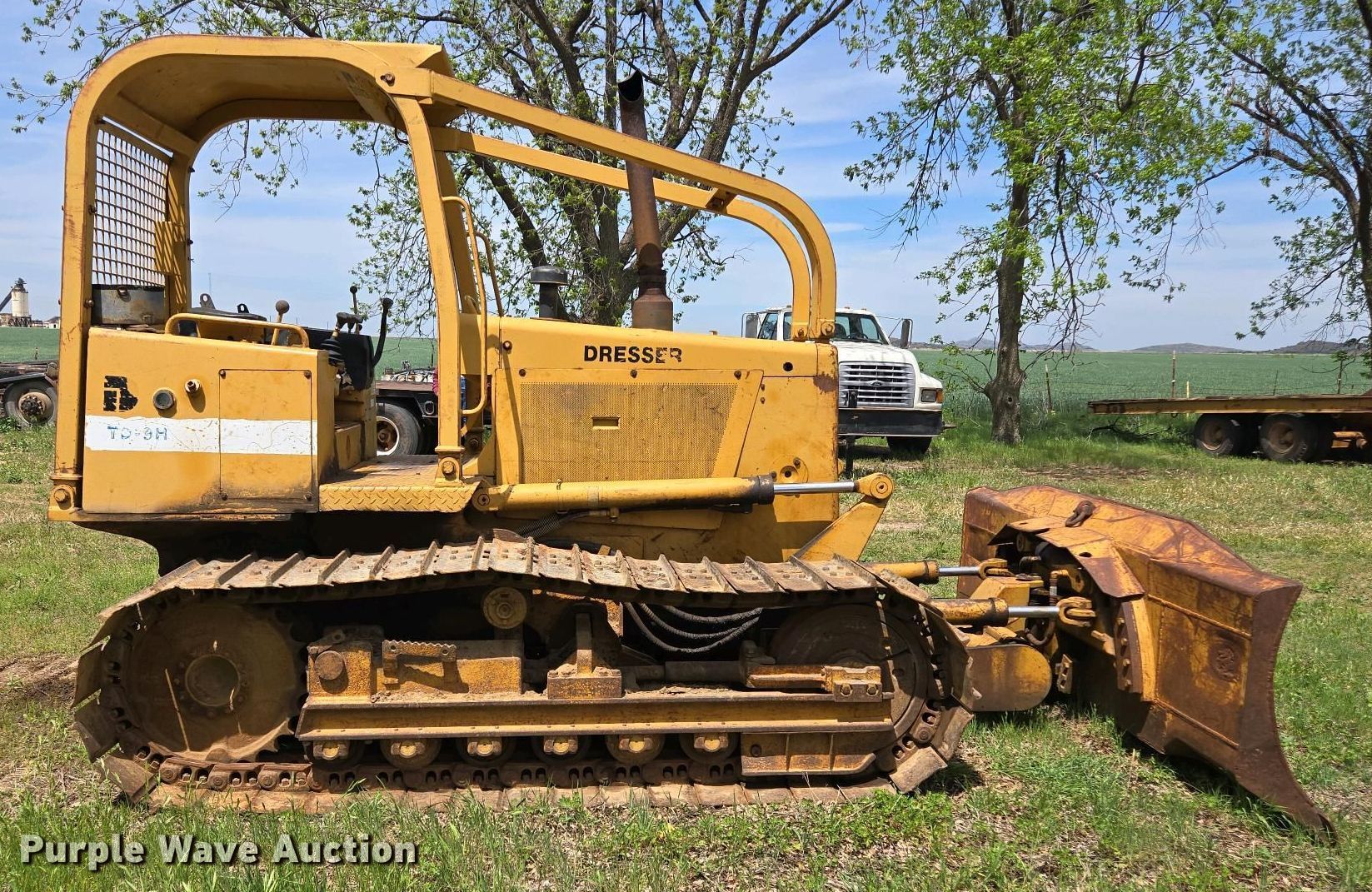1994 Dresser TD9H dozer. Hours: 8,814 on meter, Serial: 4720001P045645. Engine Cummins, Cylinders: 3, Fuel type: Diesel. Transmission Powershift, 3F - 3R. Operators station Canopy, Steering: Clutch brake. Features Screen guards, Sweeps, Dozer blade Blade type: 6-way, Blade shape: Straight, Width: 9'. Tracks Width: 20", Grouser pads: Single, Bottom rollers: 6. Notes Engine cover issues, bolted down, Transmission issues, may need replaced Non-operational first and second gears. Snyder, OK 73566