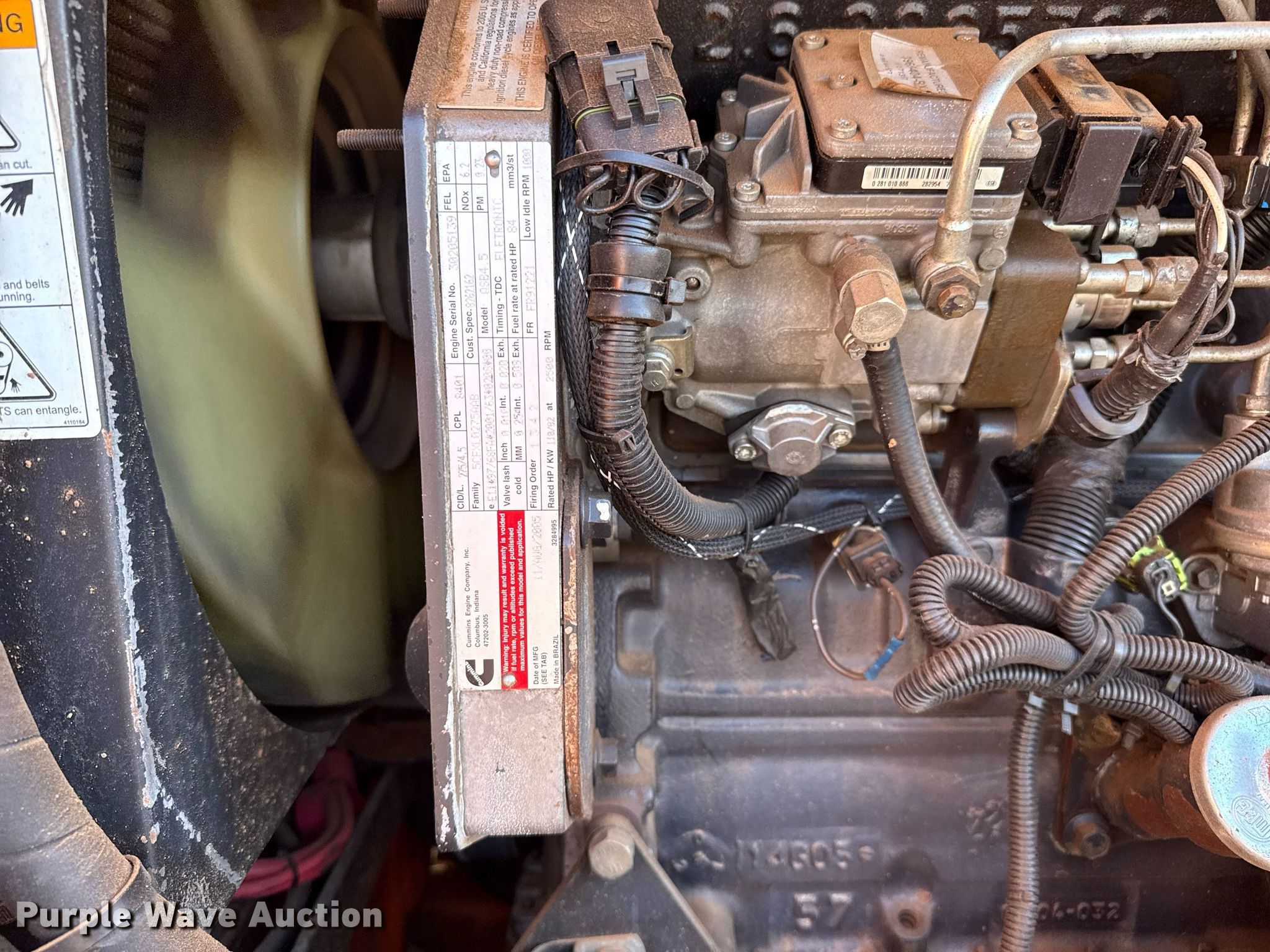 2006 JLG 10054 telehandler. Hours: 4,745 on meter, Serial: 0160015115. Engine Cummins QSB4.5, Serial: 30205139, Displacement: 4.5L, Cylinders: 4, Fuel type: Diesel, HP: 110, kW: 82. Transmission Powershift, Four wheel drive. Operators station Canopy, Steering: Crab, Four wheel. Features Maximum lift capacity: 10,000 lbs, Maximum lift height: 54', Boom stages: 4, Fork length: 72", Auxiliary hydraulics, Tilt carriage, Hydraulic outriggers, Hydraulic leveling, Quick attach: Manual. Tires Front: 17.5-25. Caliper Energy Services. Snyder, TX 79549
