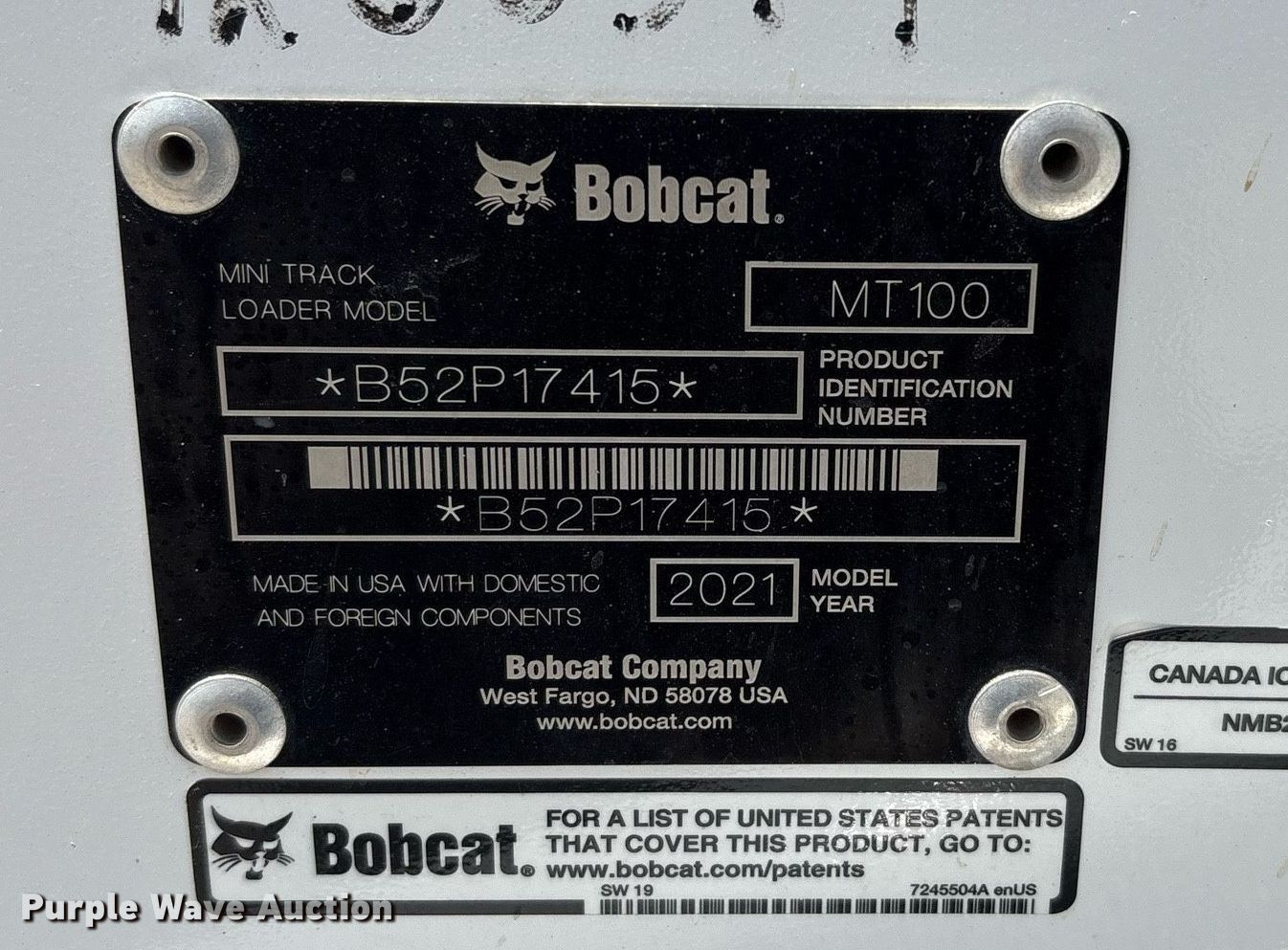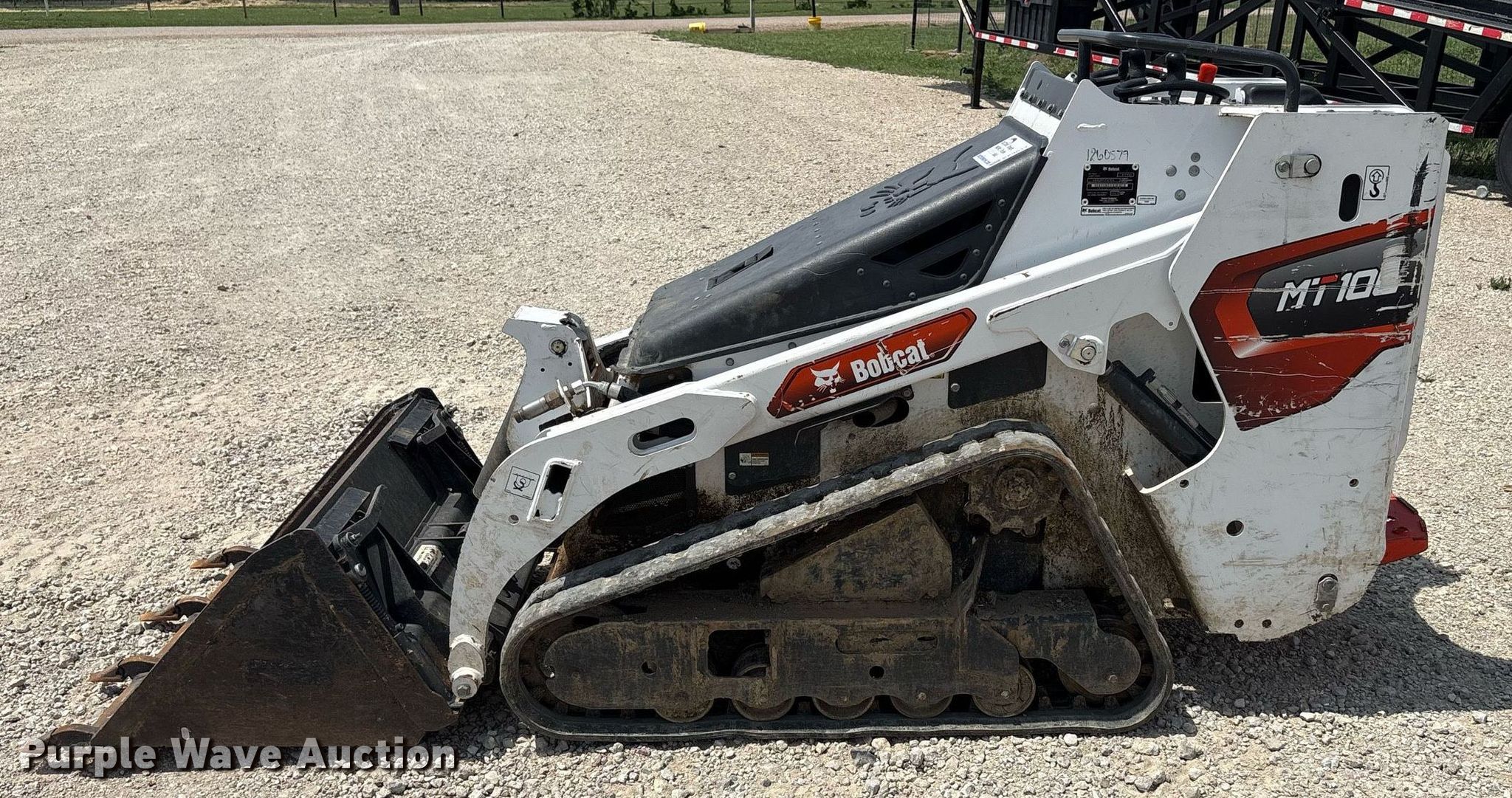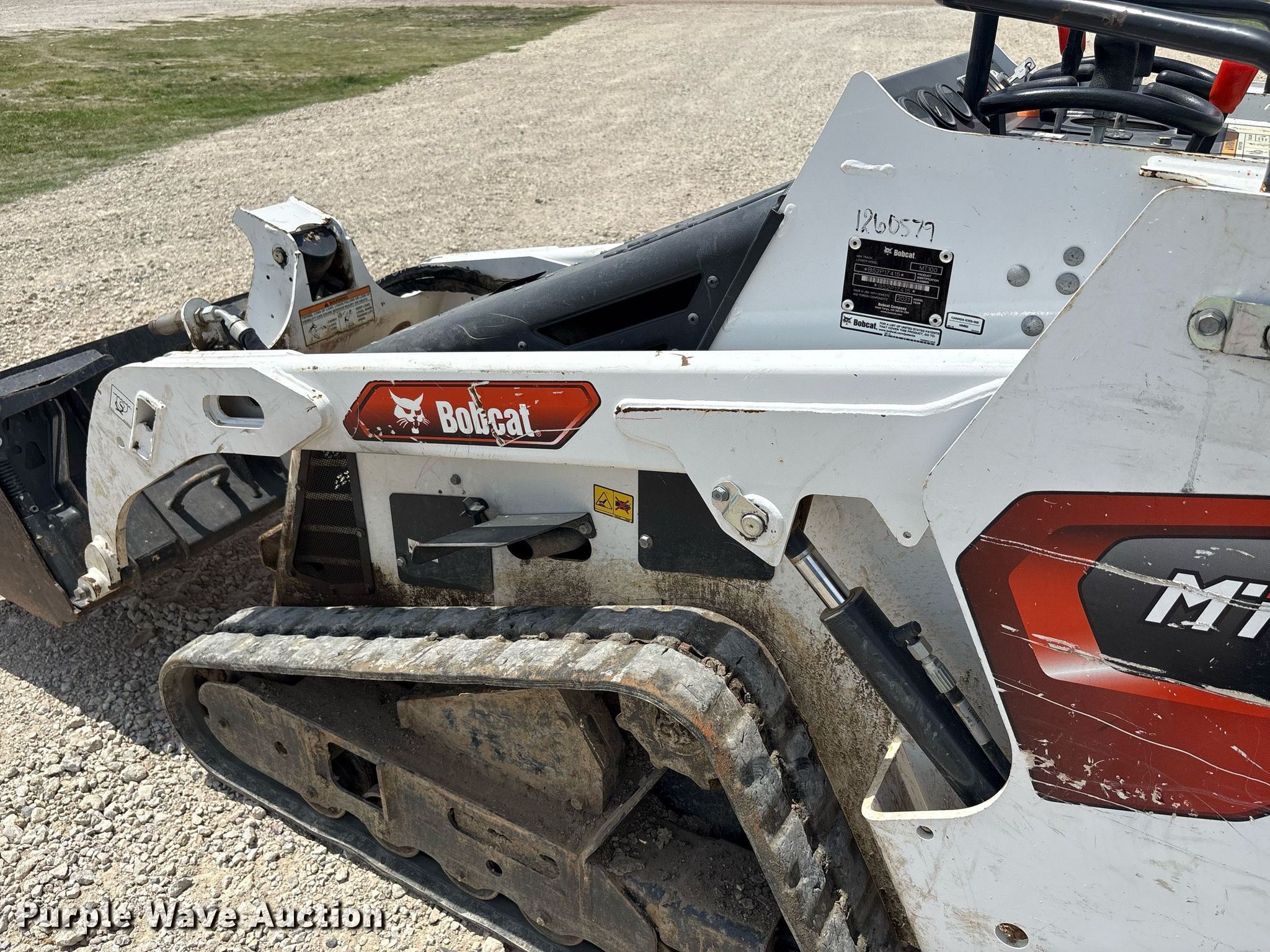 Purple Wave is selling a used Compact Utility Loader in Texas. This item is a 2021 Bobcat MT100 compact utility loader with the following: Hours: 599 on meter, Serial: B52P17415