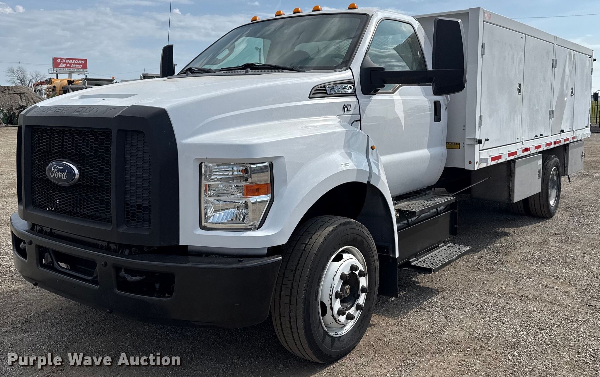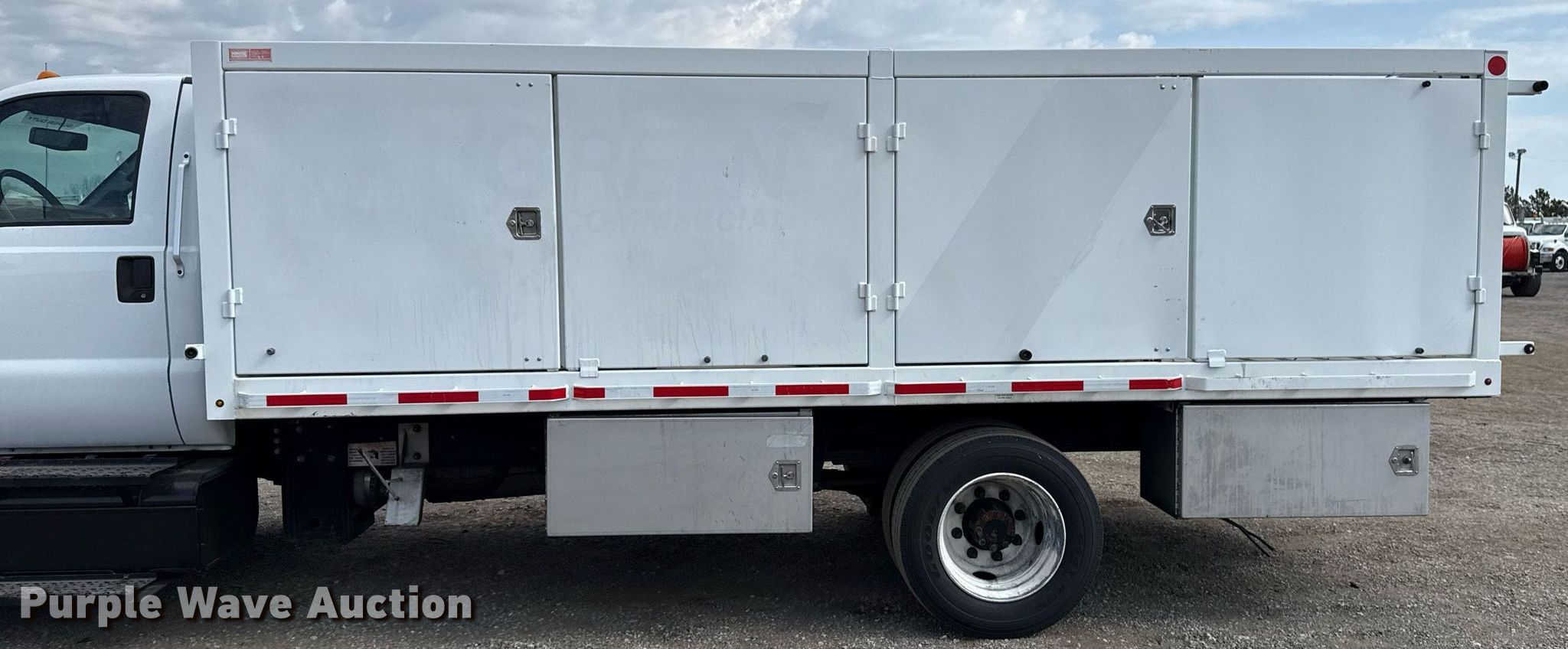 2016 Ford F650 Super Duty flatbed truck. Miles: 76,693 on odometer, VIN: 1FDNF6AY3GDA04358. Engine Displacement: 6.8L, Cylinders: 10, Fuel type: Gas. Transmission Automatic. Interior AC, Heat, Cruise control, Brake Controller, PTO. Features Flatbed 16' 4" L x 96" W, Removable sides, Side height: 54", (2) poly tanks Capacity: 600 gallons, Capacity: 150 gallons, Hose reel. Oklahoma title. Seller is an Oklahoma licensed motor vehicle dealer. Title will be assigned and distributed by the dealer. Please contact the seller for distribution questions. Title distribution may be delayed up to 30 days from verification of funds. 15107 North 137th East Avenue. Collinsville, OK 74021
