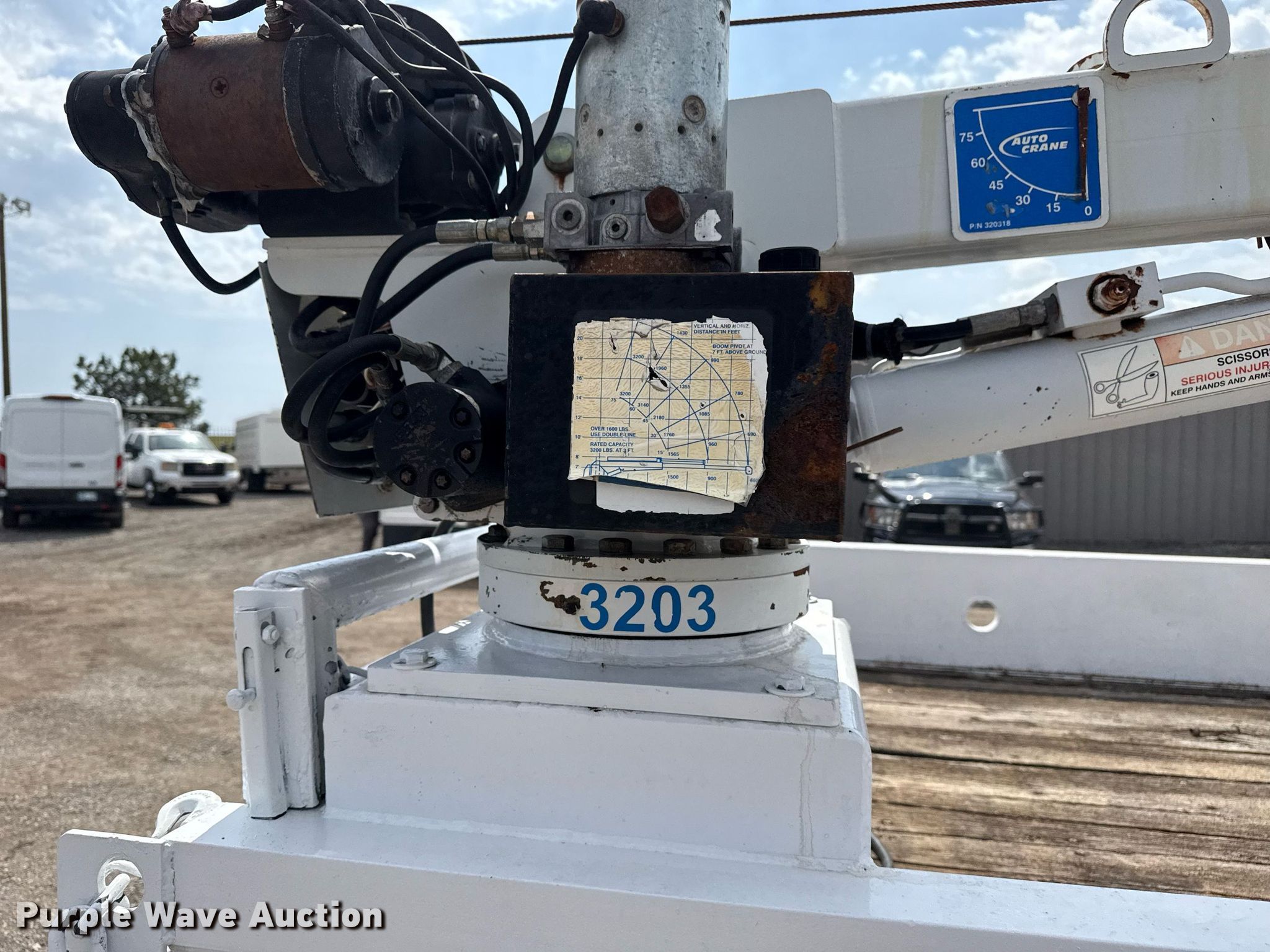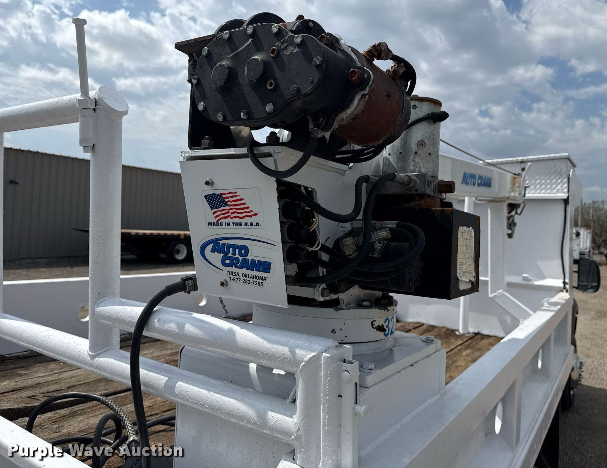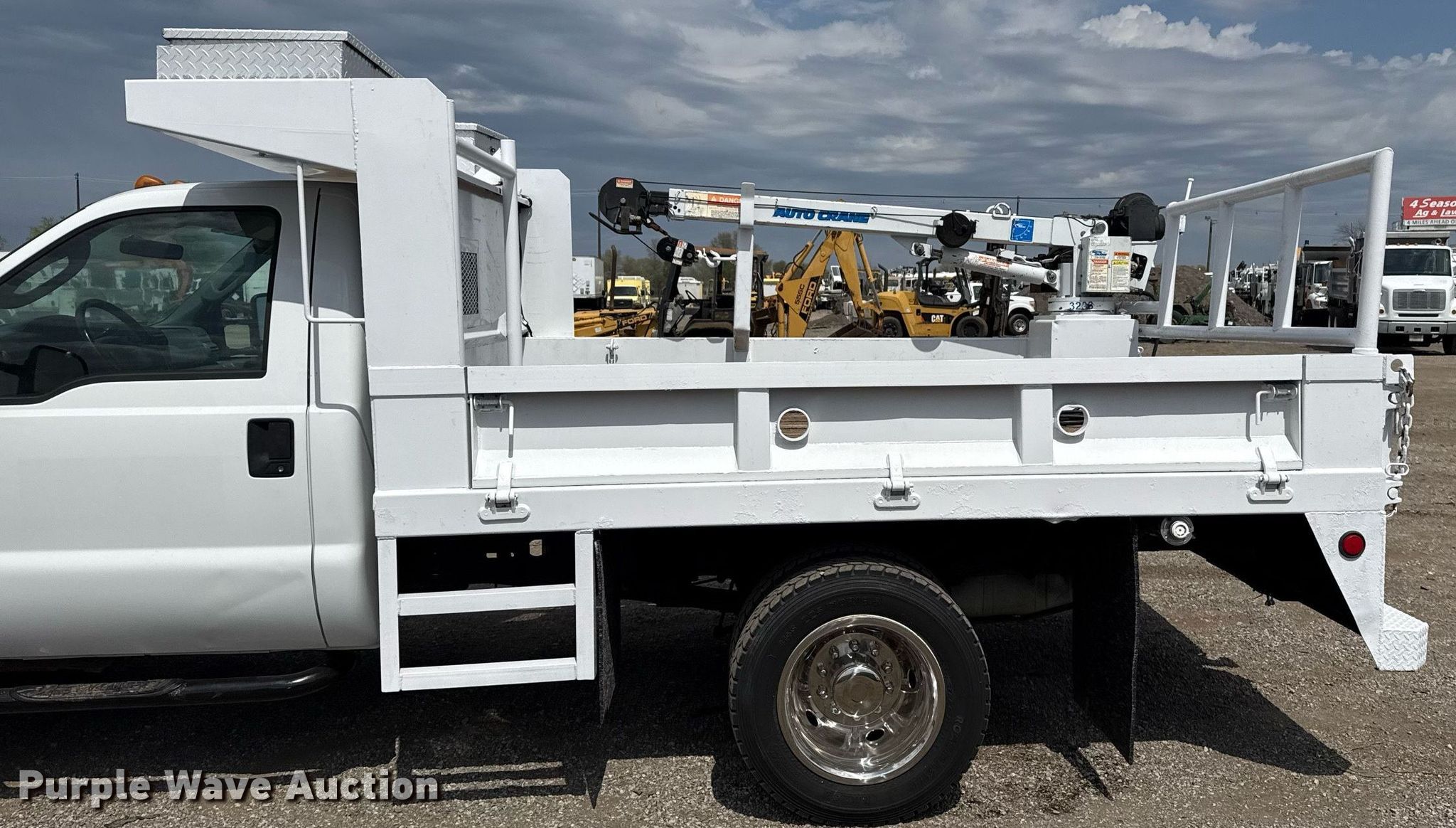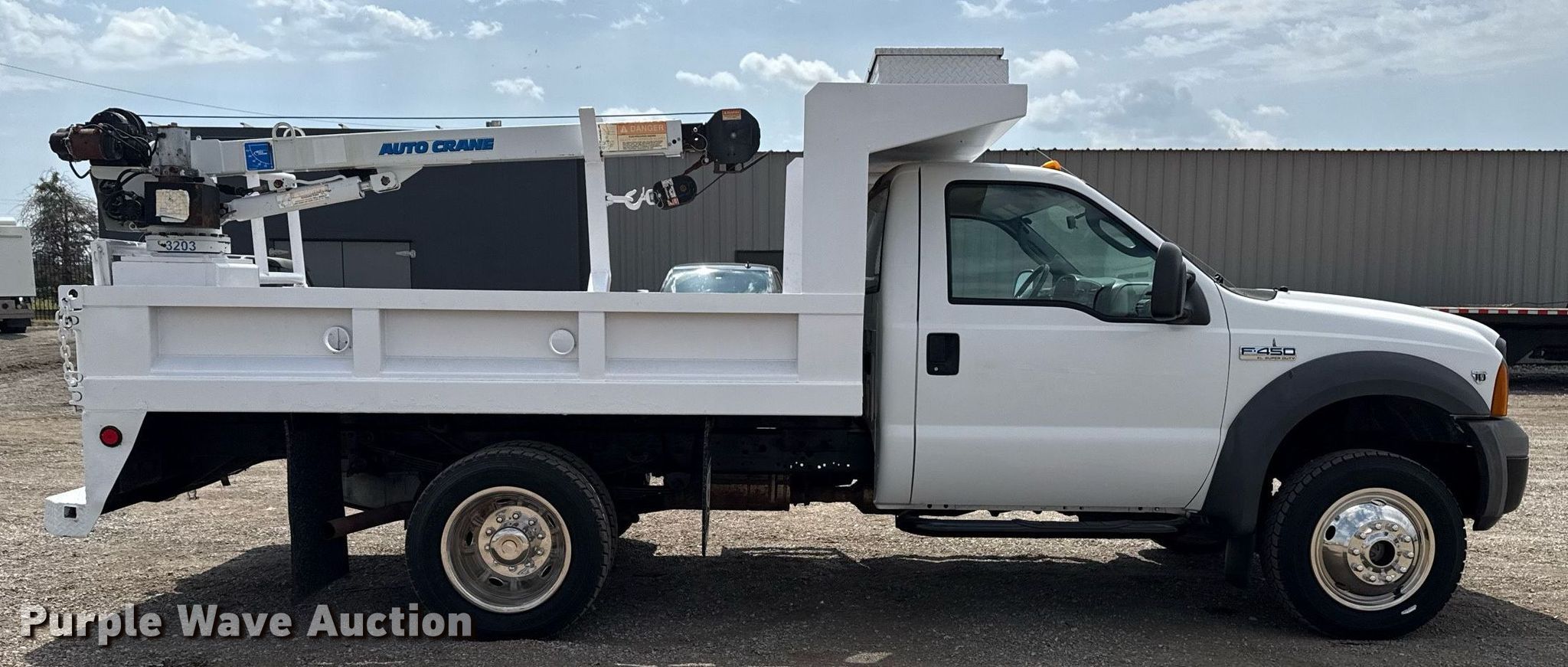2005 Ford F450 Super Duty flatbed truck. Miles: 53,645 on odometer, VIN: 1FDXF47Y35EB79351. Engine Displacement: 6.8L, Cylinders: 10, Fuel type: Gas. Transmission Automatic. Chassis Four wheel drive, Axles: Single, Suspension: Spring, Brakes: Hydraulic, GVWR: 16,000 lbs, Wheelbase: 141". Interior AC, Heat, Cruise control. Features Flatbed 10' L x 93" W, Crane Auto Crane 3203, Maximum boom length: 25' Maximum lift capacity: 3,200 lbs.. Tires Size: 225/70R19.5. Oklahoma title. Seller is an Oklahoma licensed motor vehicle dealer. Title will be assigned and distributed by the dealer. Please contact the seller for distribution questions. Title distribution may be delayed up to 30 days from verification of funds. 15107 North 137th East Avenue. Collinsville, OK 74021