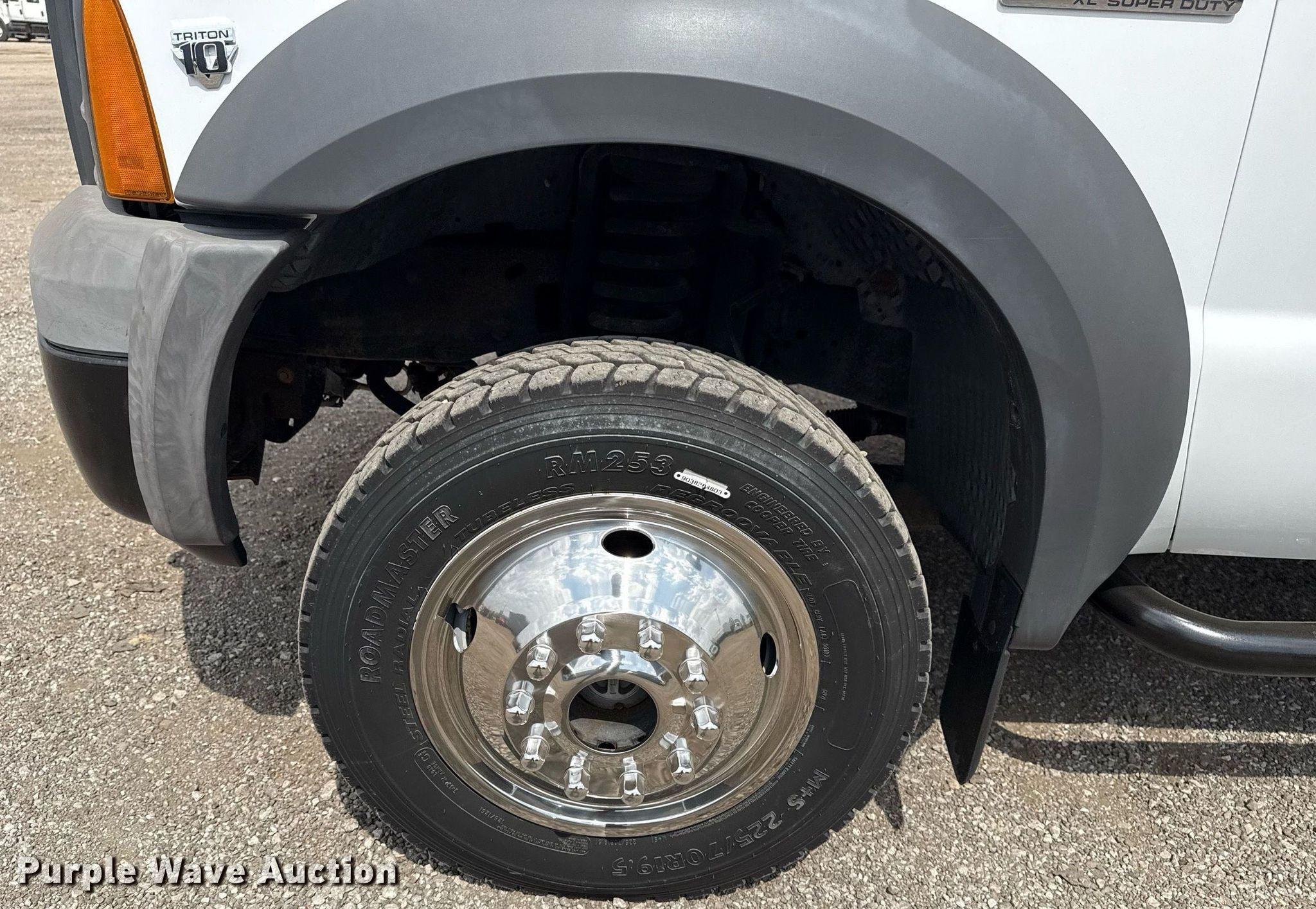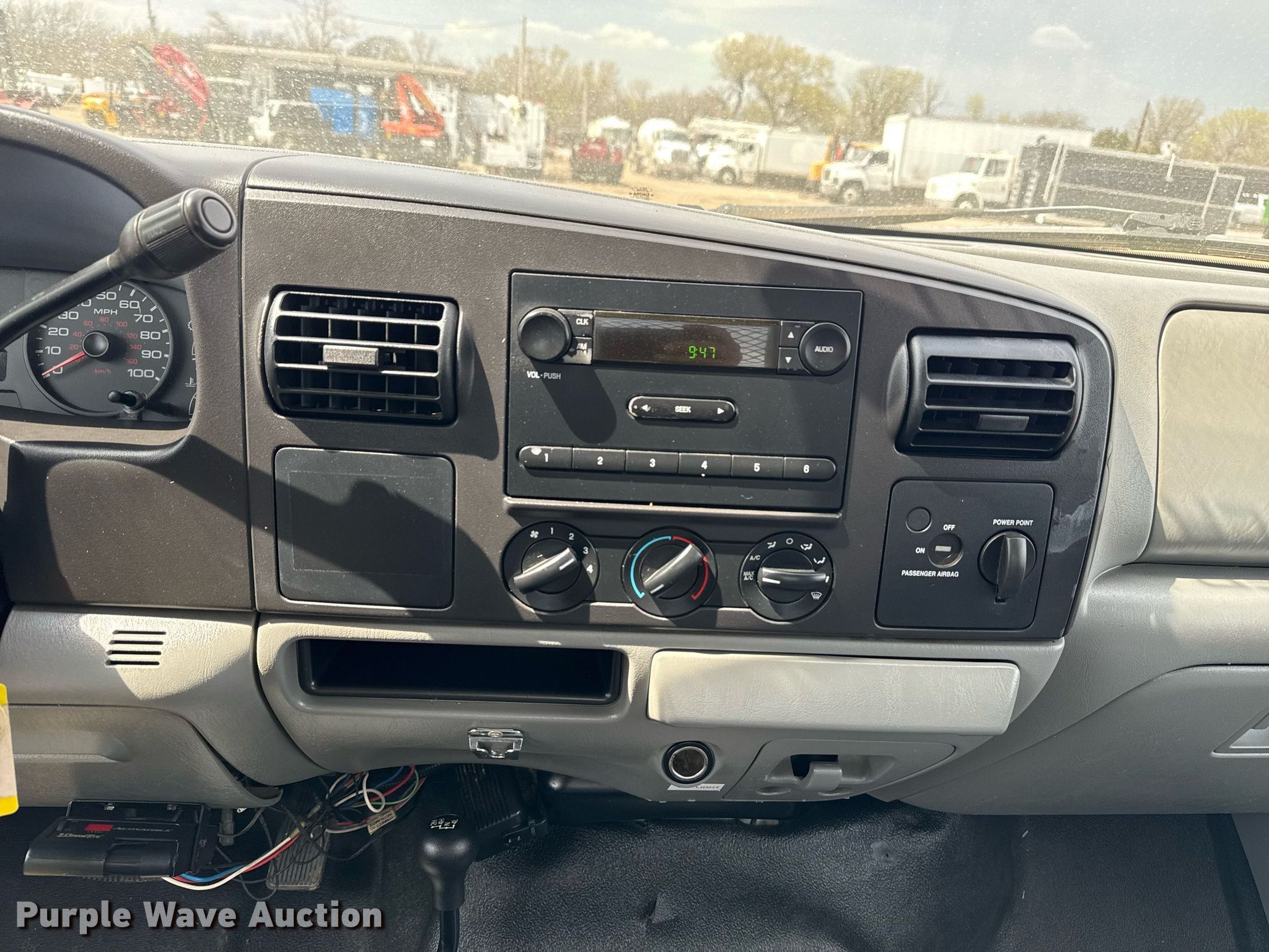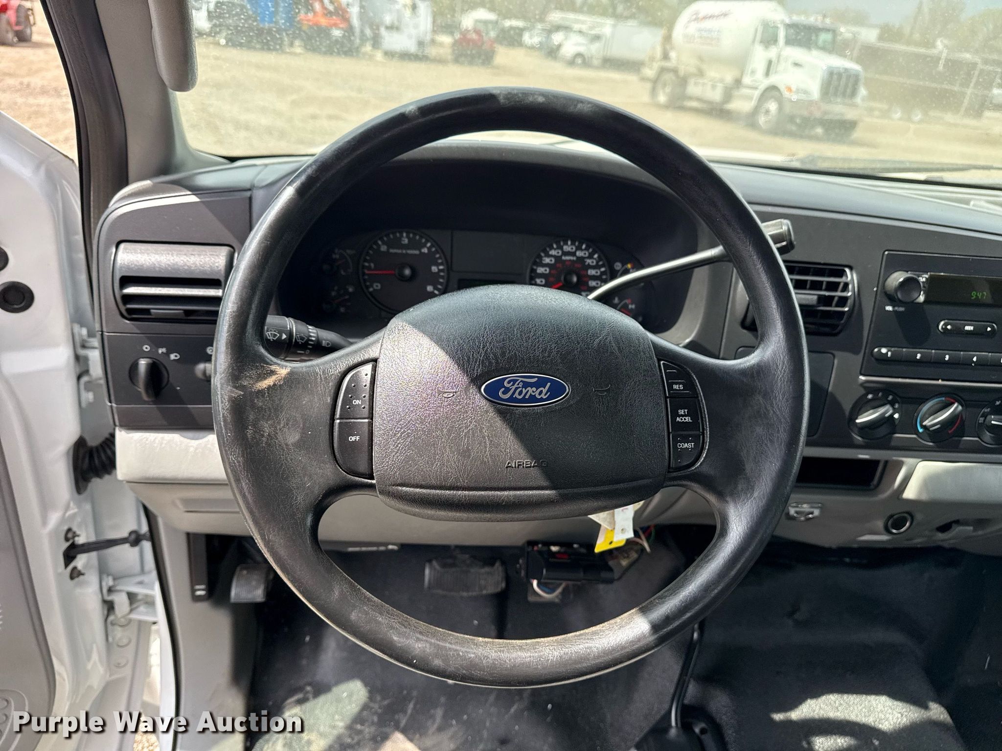 2005 Ford F450 Super Duty flatbed truck. Miles: 53,645 on odometer, VIN: 1FDXF47Y35EB79351. Engine Displacement: 6.8L, Cylinders: 10, Fuel type: Gas. Transmission Automatic. Chassis Four wheel drive, Axles: Single, Suspension: Spring, Brakes: Hydraulic, GVWR: 16,000 lbs, Wheelbase: 141". Interior AC, Heat, Cruise control. Features Flatbed 10' L x 93" W, Crane Auto Crane 3203, Maximum boom length: 25' Maximum lift capacity: 3,200 lbs.. Tires Size: 225/70R19.5. Oklahoma title. Seller is an Oklahoma licensed motor vehicle dealer. Title will be assigned and distributed by the dealer. Please contact the seller for distribution questions. Title distribution may be delayed up to 30 days from verification of funds. 15107 North 137th East Avenue. Collinsville, OK 74021