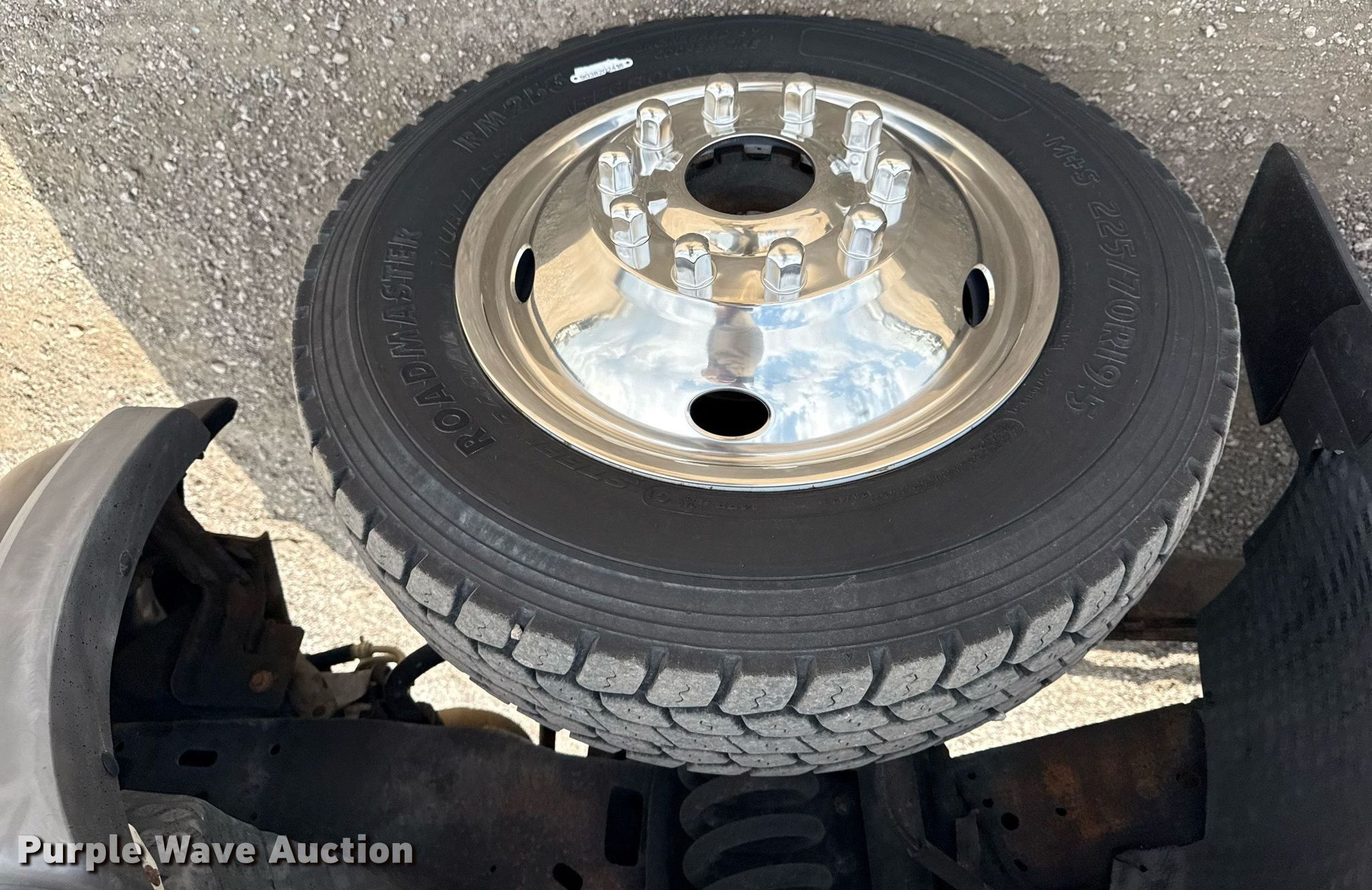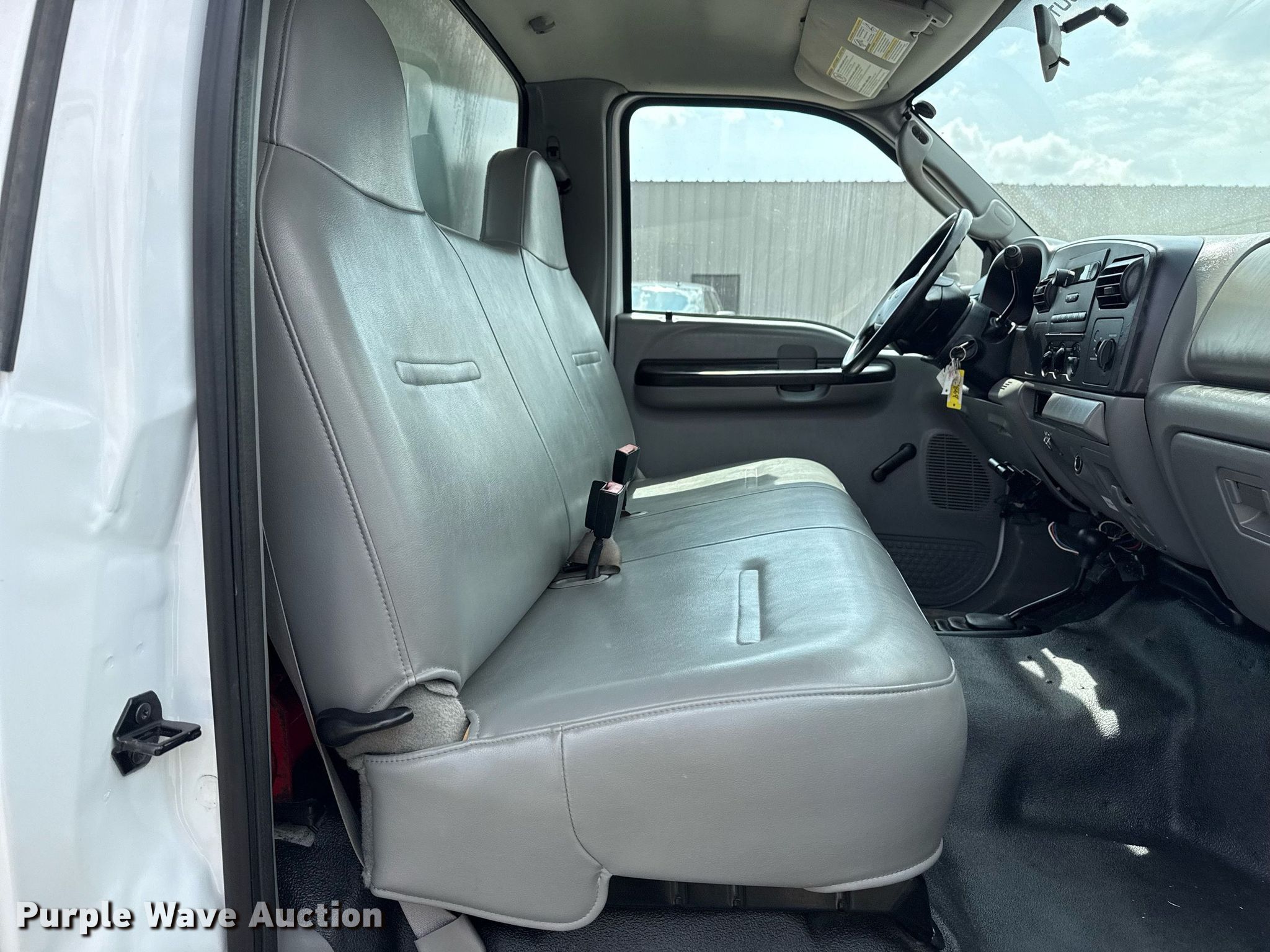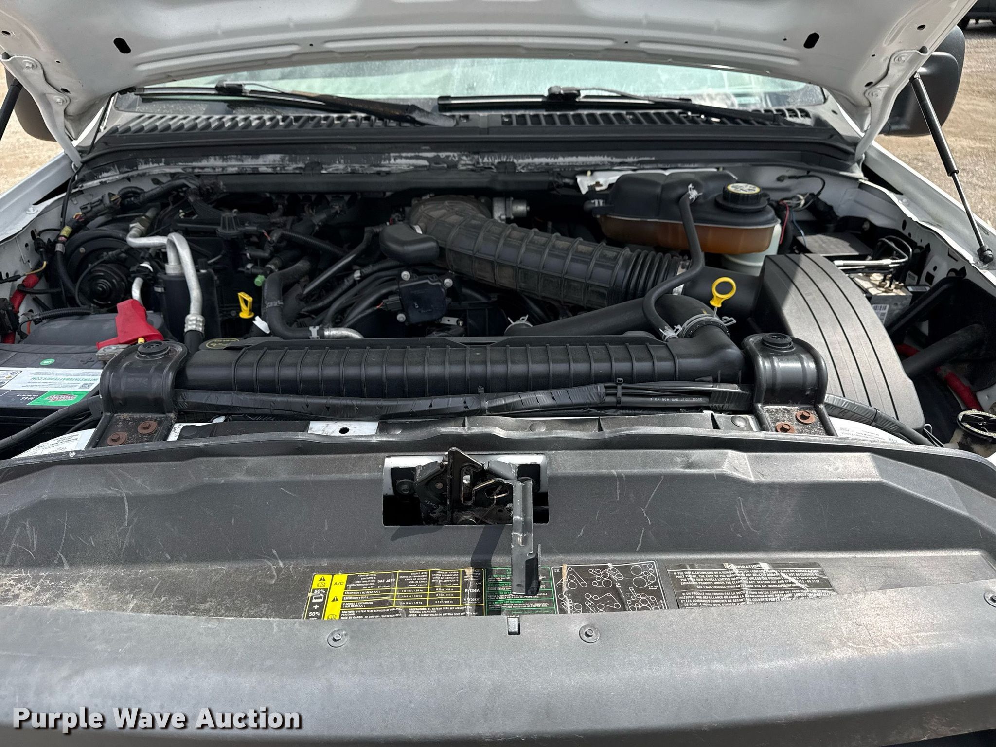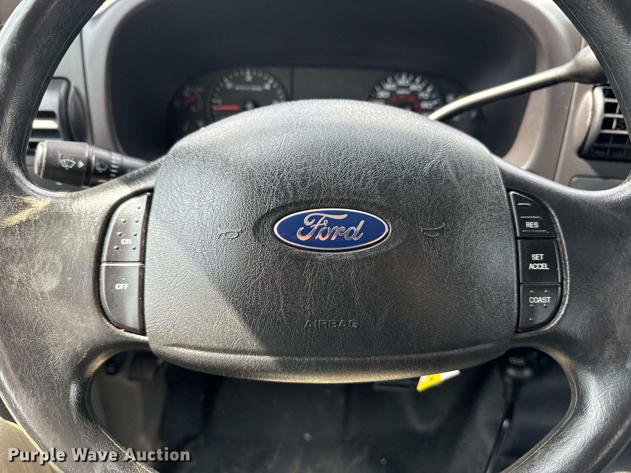 2005 Ford F450 Super Duty flatbed truck. Miles: 53,645 on odometer, VIN: 1FDXF47Y35EB79351. Engine Displacement: 6.8L, Cylinders: 10, Fuel type: Gas. Transmission Automatic. Chassis Four wheel drive, Axles: Single, Suspension: Spring, Brakes: Hydraulic, GVWR: 16,000 lbs, Wheelbase: 141". Interior AC, Heat, Cruise control. Features Flatbed 10' L x 93" W, Crane Auto Crane 3203, Maximum boom length: 25' Maximum lift capacity: 3,200 lbs.. Tires Size: 225/70R19.5. Oklahoma title. Seller is an Oklahoma licensed motor vehicle dealer. Title will be assigned and distributed by the dealer. Please contact the seller for distribution questions. Title distribution may be delayed up to 30 days from verification of funds. 15107 North 137th East Avenue. Collinsville, OK 74021