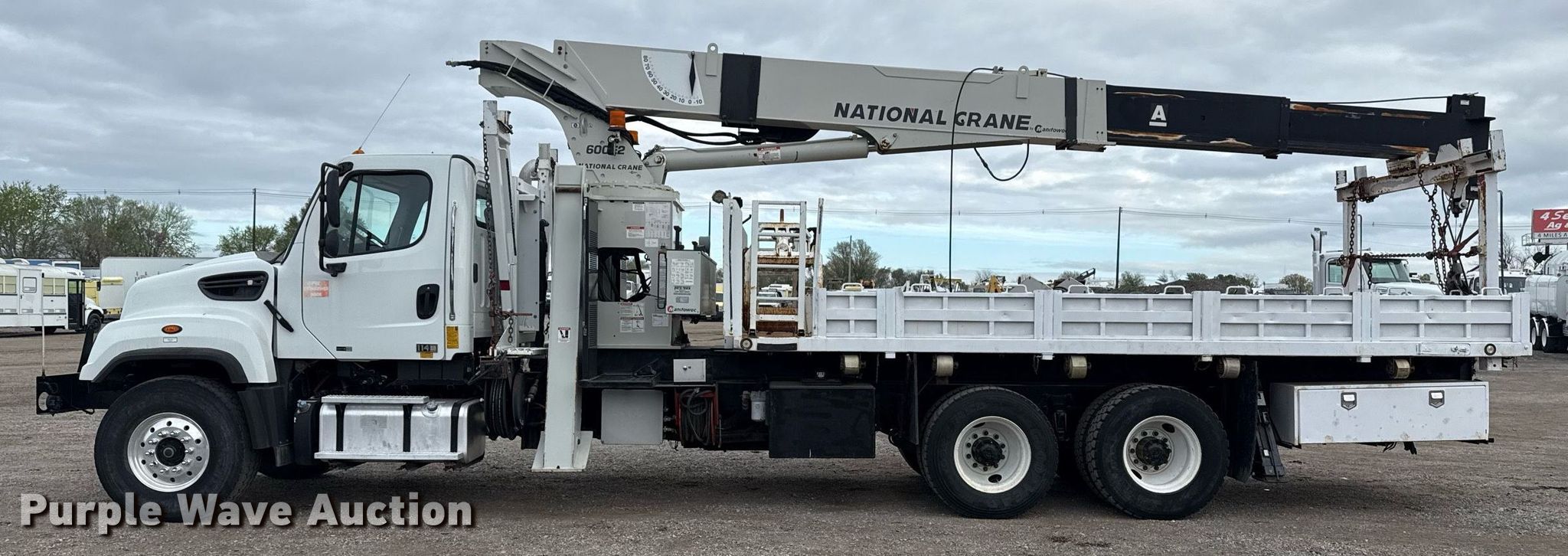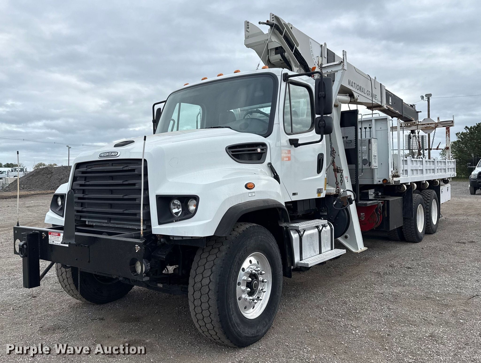 Purple Wave is selling a used Crane Truck in Oklahoma. This item is a 2013 Freightliner 114SD crane truck with the following: Miles: 68,524 on odometer, Engine hours: 4,888 on meter, VIN: 1FVHG3DV2DHFA5053