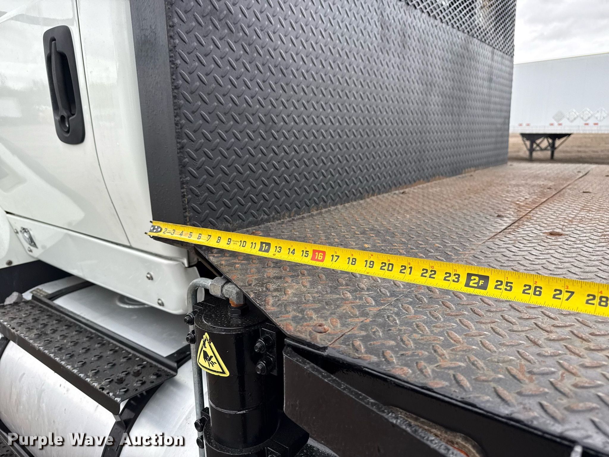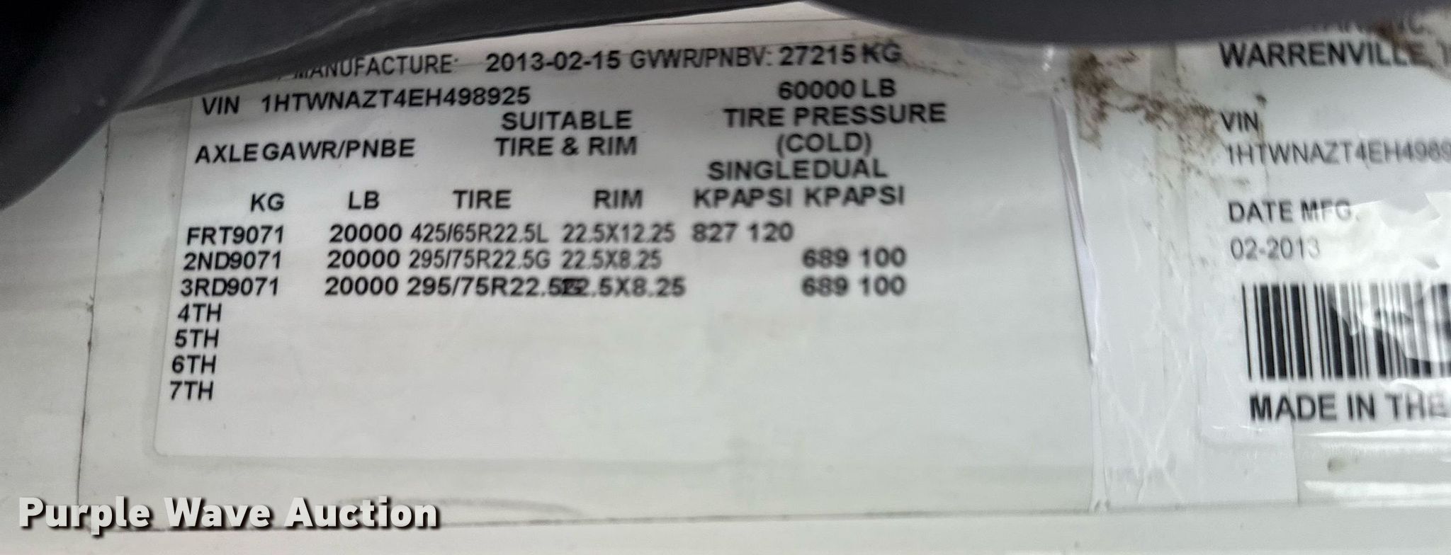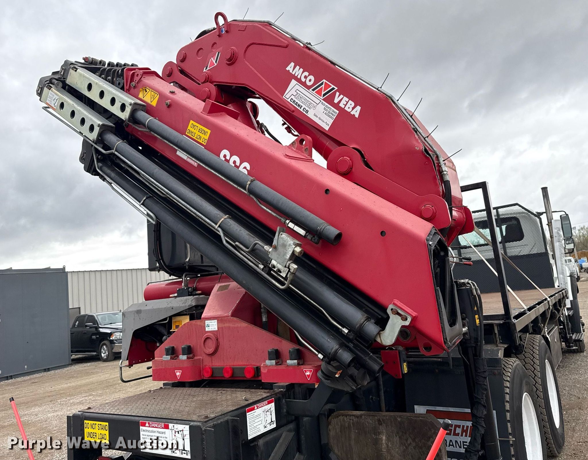 2014 International 7500 crane truck. Miles: 34,482 on odometer, Hours: 2,397 on meter, VIN: 1HTWNAZT4EH498925. Engine Displacement: 9.3L, Cylinders: 6, Fuel type: Diesel. Transmission Eaton Fuller, Manual, Speed: 10. Chassis Axles: Tandem, Differential lock: Inter-axle, Suspension: Air, Brakes: Air, PTO, GVWR: 60,000 lbs FAWR: 20,000 lbs, RAWR: 20,000 lbs. Interior AC, Heat, Power windows, Power locks, Cruise control. Features Flatbed 19' L x 96" W, Crane Amco Veba 933/8S, Telescopic, Knuckle, Maximum boom length: 69' Sections: 8, Maximum lift capacity: 5,107 lbs, Boom controls Ground, Lift chart. Tires Front: 315/80R22.5, Rear: 11R22.5. Notes Oklahoma title. Seller is an Oklahoma licensed motor vehicle dealer. Title will be assigned and distributed by the dealer. Please contact the seller for distribution questions. Title distribution may be delayed up to 30 days from verification of funds. 15107 North 137th East Avenue. Collinsville, OK 74021