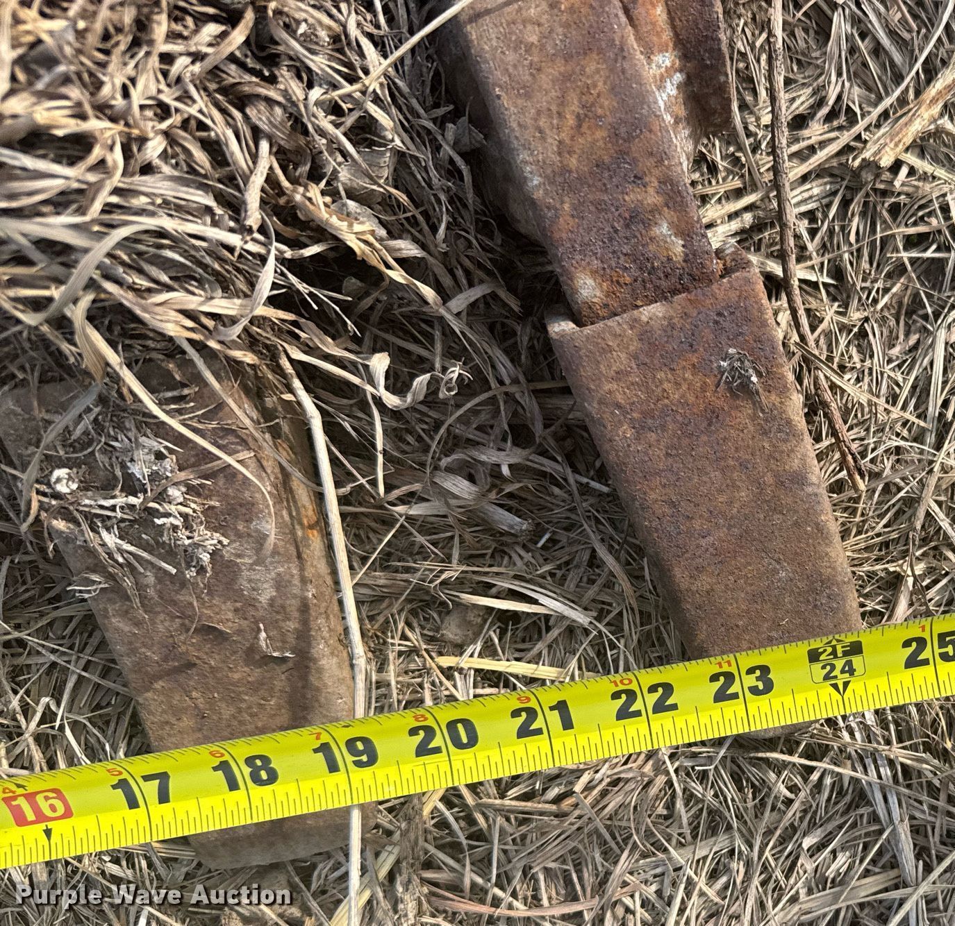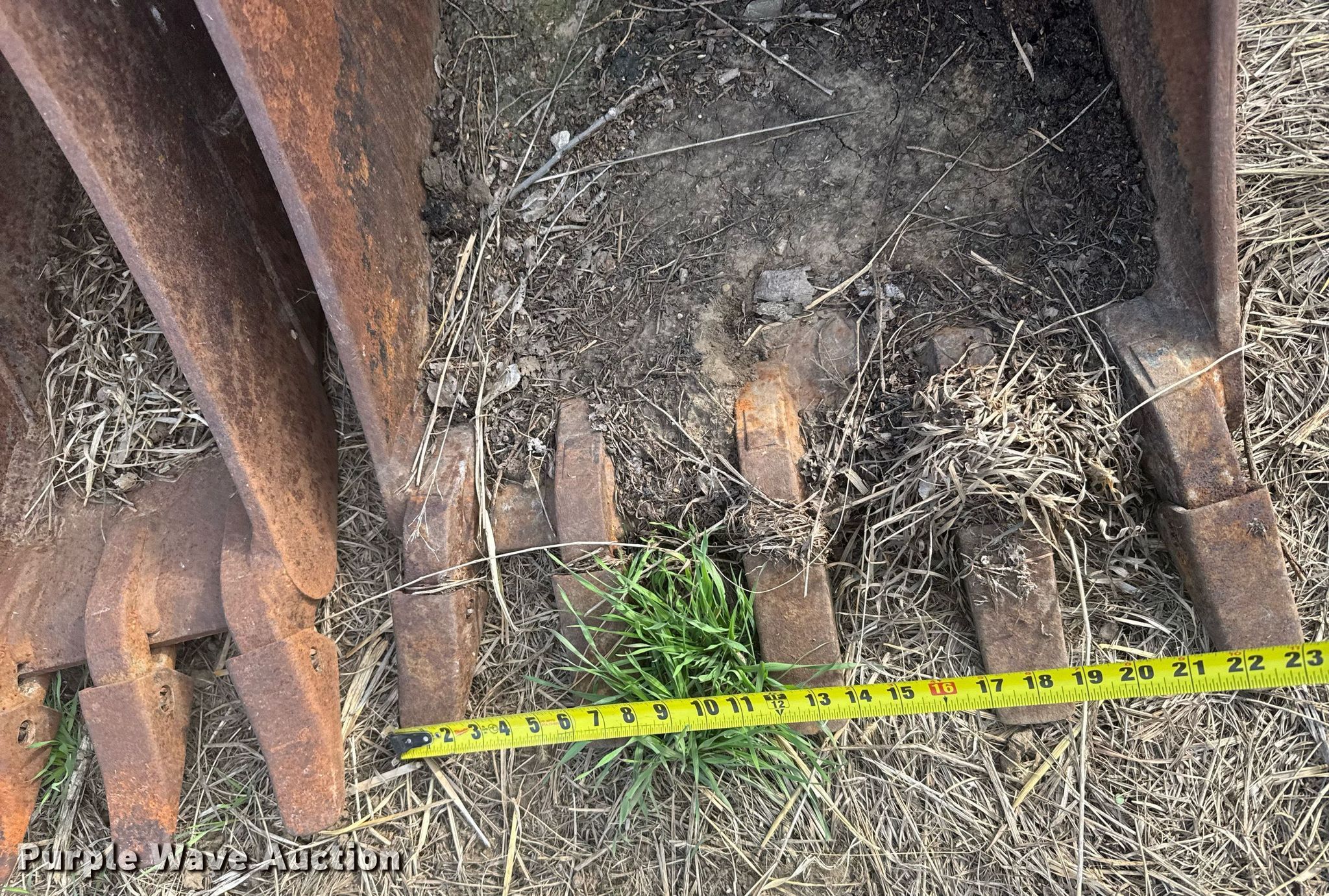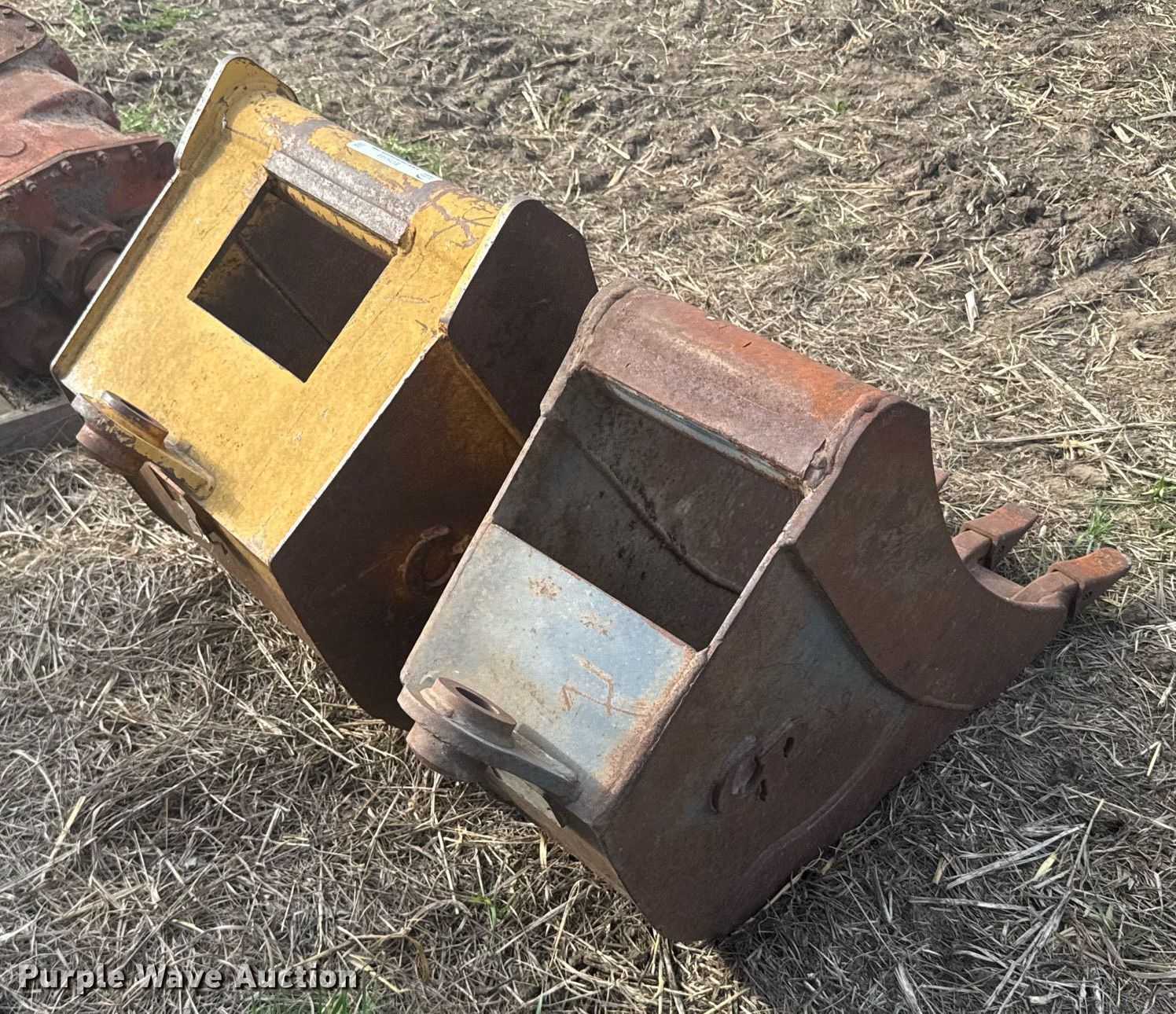 (2) CP backhoe buckets. Width: 24" Teeth: 5, Width: 14" Teeth: 3. Notes Removed from 410J backhoe. Shelby Farms. Bavaria, KS 67401