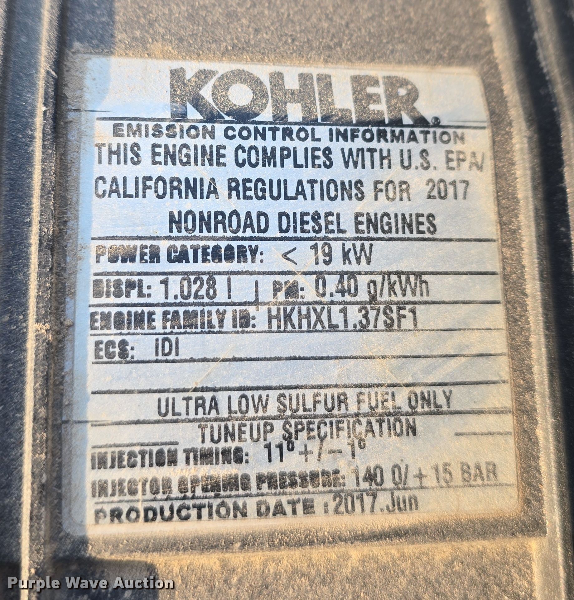 2018 Wacker Neuson RTSC3 trench compactor. Hours: 288 on meter, Serial: 24433261. Engine Kohler Diesel KDW1003, Serial: 4716502310, Cylinders: 3, Fuel type: Diesel, HP: 19.8. Transmission Hydrostatic, Two speed travel. Features Vibratory system Two speed, Drum: Padfoot Width: 33", Diameter: 20", Drum scrapers: Front, Rear, Remote control. Notes Owners manual included. Ceresco, NE 68017