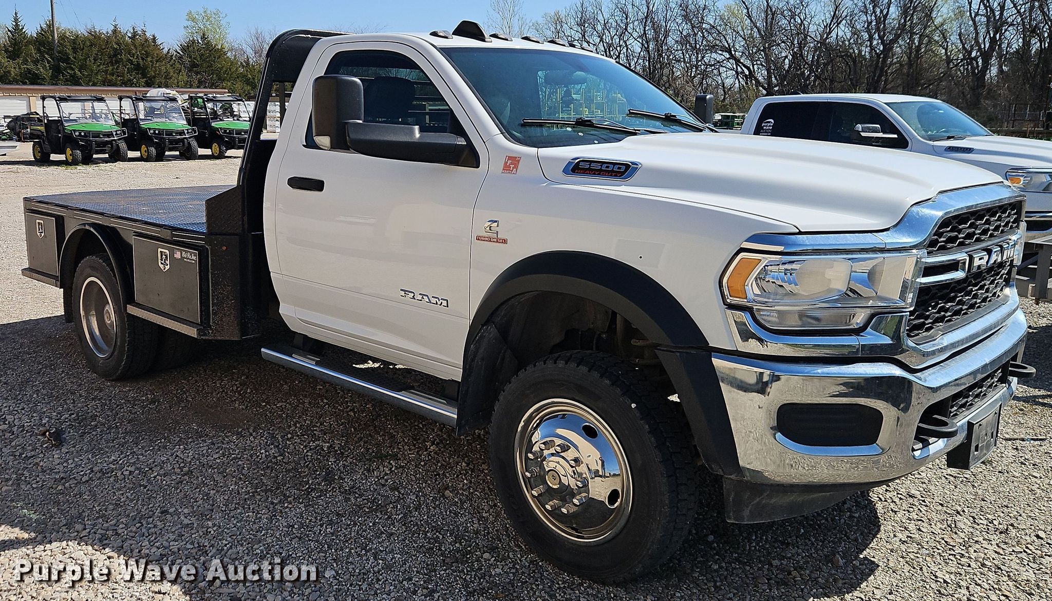 This 2022 Dodge Ram 5500 flatbed truck will sell to the highest bidder regardless of price.